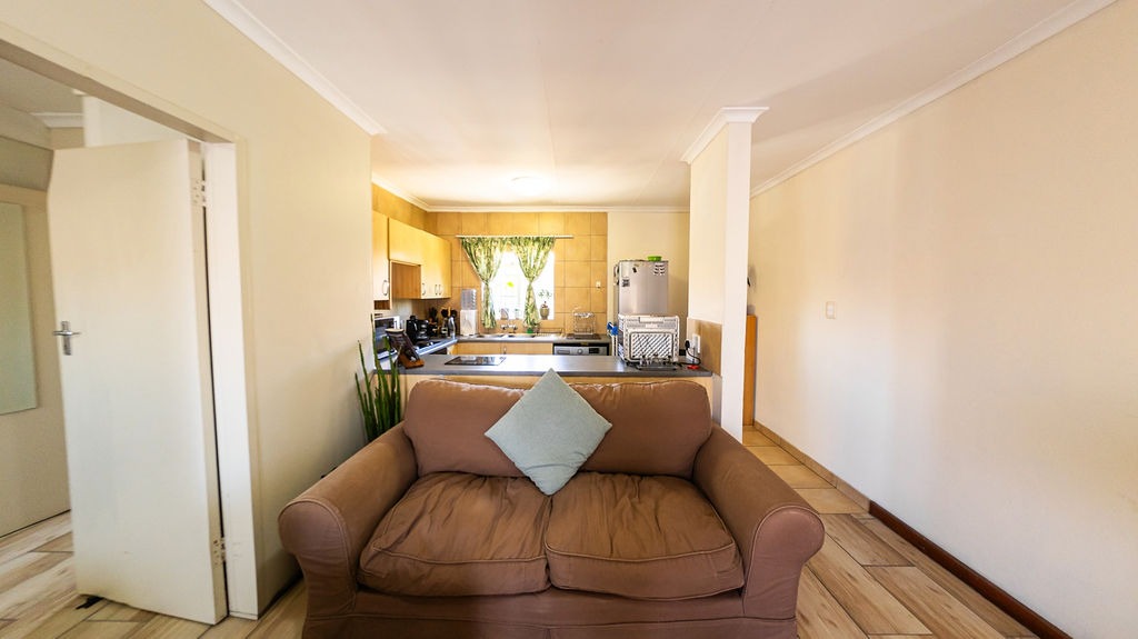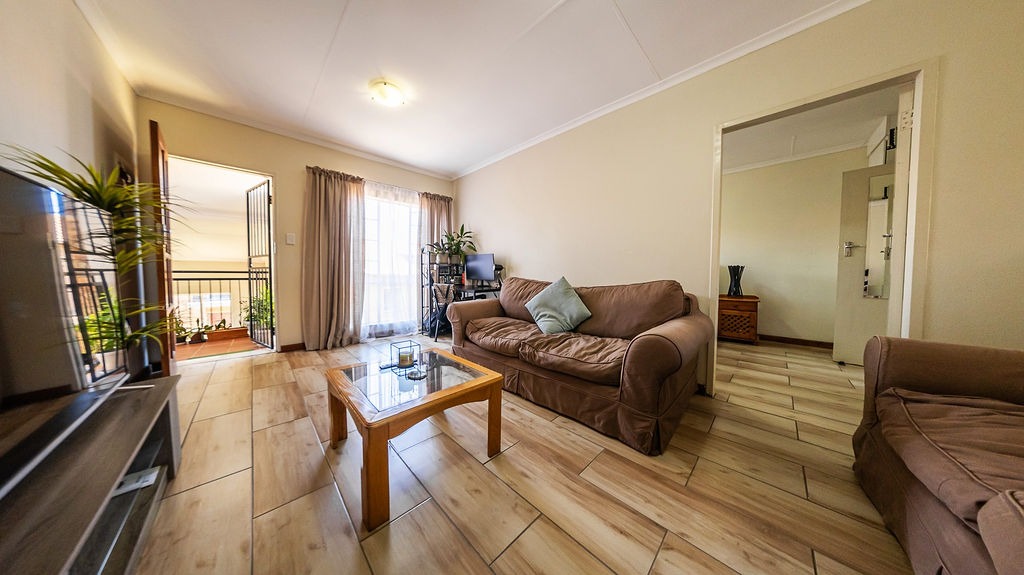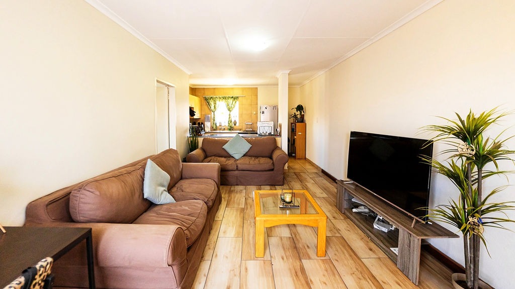 Discover modern living in this inviting 72 sqm apartment located in the desirable Silver Lakes area of Pretoria. This residential sale property offers a well-designed open-plan layout, seamlessly connecting the living room and kitchen, creating a spacious and airy atmosphere. The interior boasts contemporary wood-look tiled flooring throughout, complemented by neutral wall colours that provide a versatile canvas for personal style.