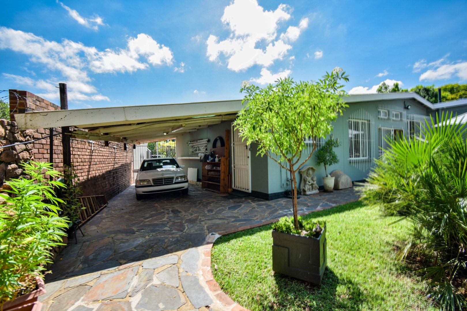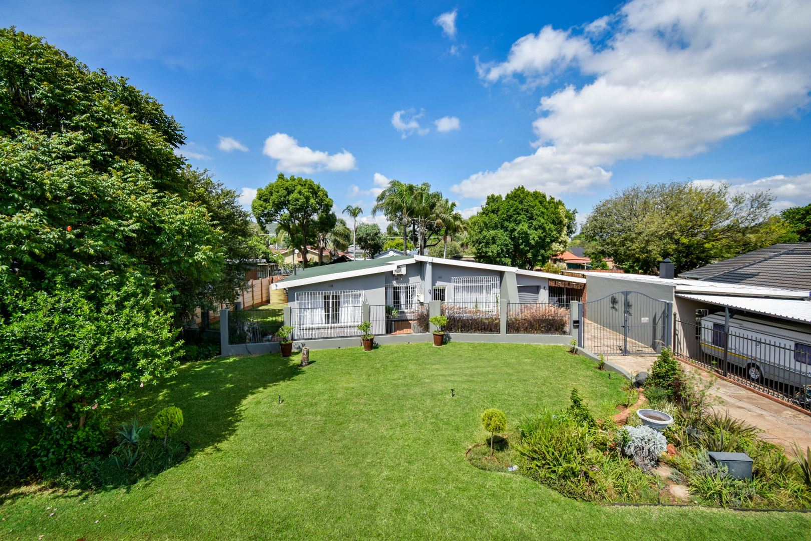 Discover this inviting 3-bedroom, 2-bathroom family home situated on a generous 991m2 erf in the peaceful neighbourhood of Sinoville, Pretoria. The property immediately impresses with its well-maintained garden, lush lawn, and mature trees, offering a welcoming kerb appeal. Ample parking is provided with a single garage and additional space for three vehicles, complemented by a driveway and a secure access gate.