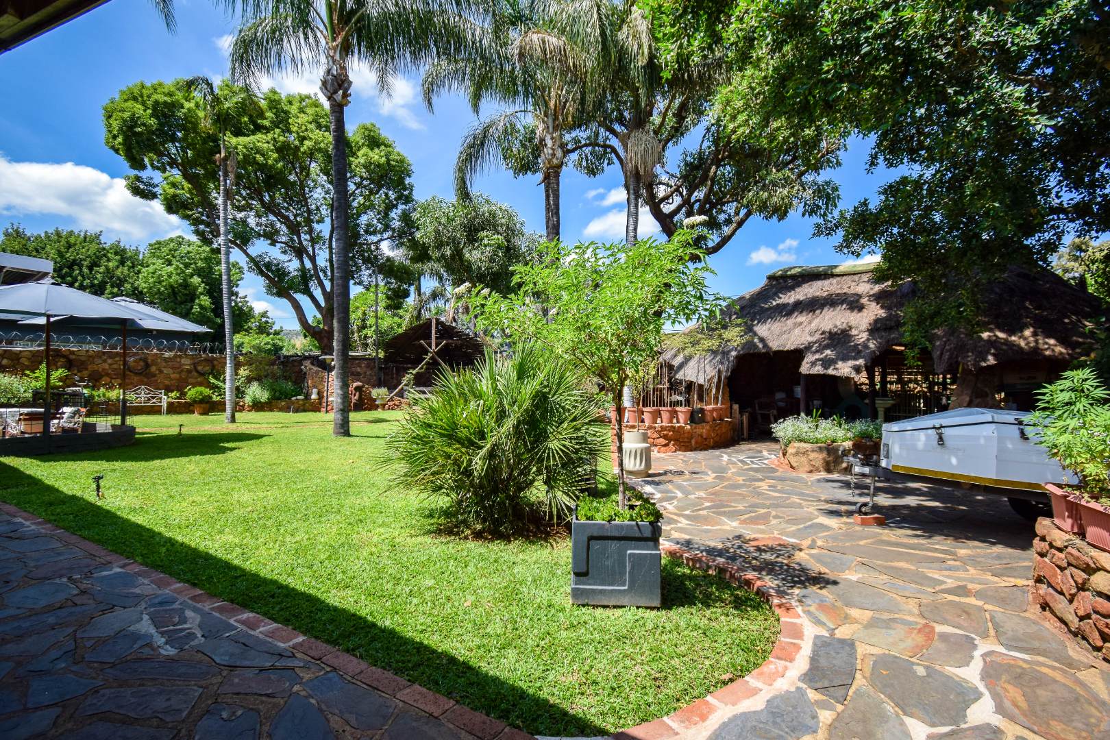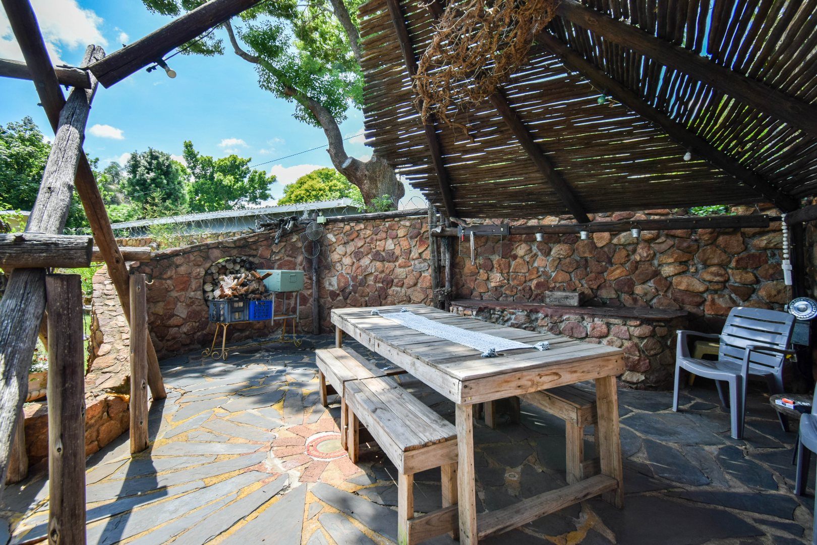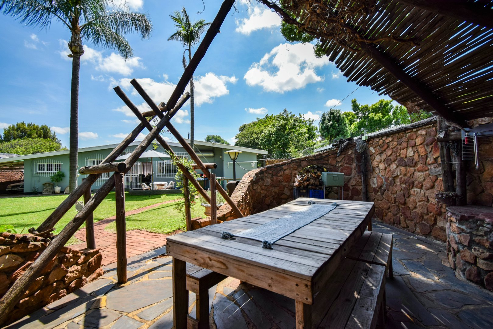 Outdoors, residents can enjoy a lapa as well as another entertainment area, both perfect for entertaining, and a well-kept garden supported by an irrigation system and sprinklers. The property is pet-friendly and features essential amenities such as a borehole and water tanks, enhancing self-sufficiency. Security is well-addressed with burglar bars and a security gates, ensuring peace of mind.
