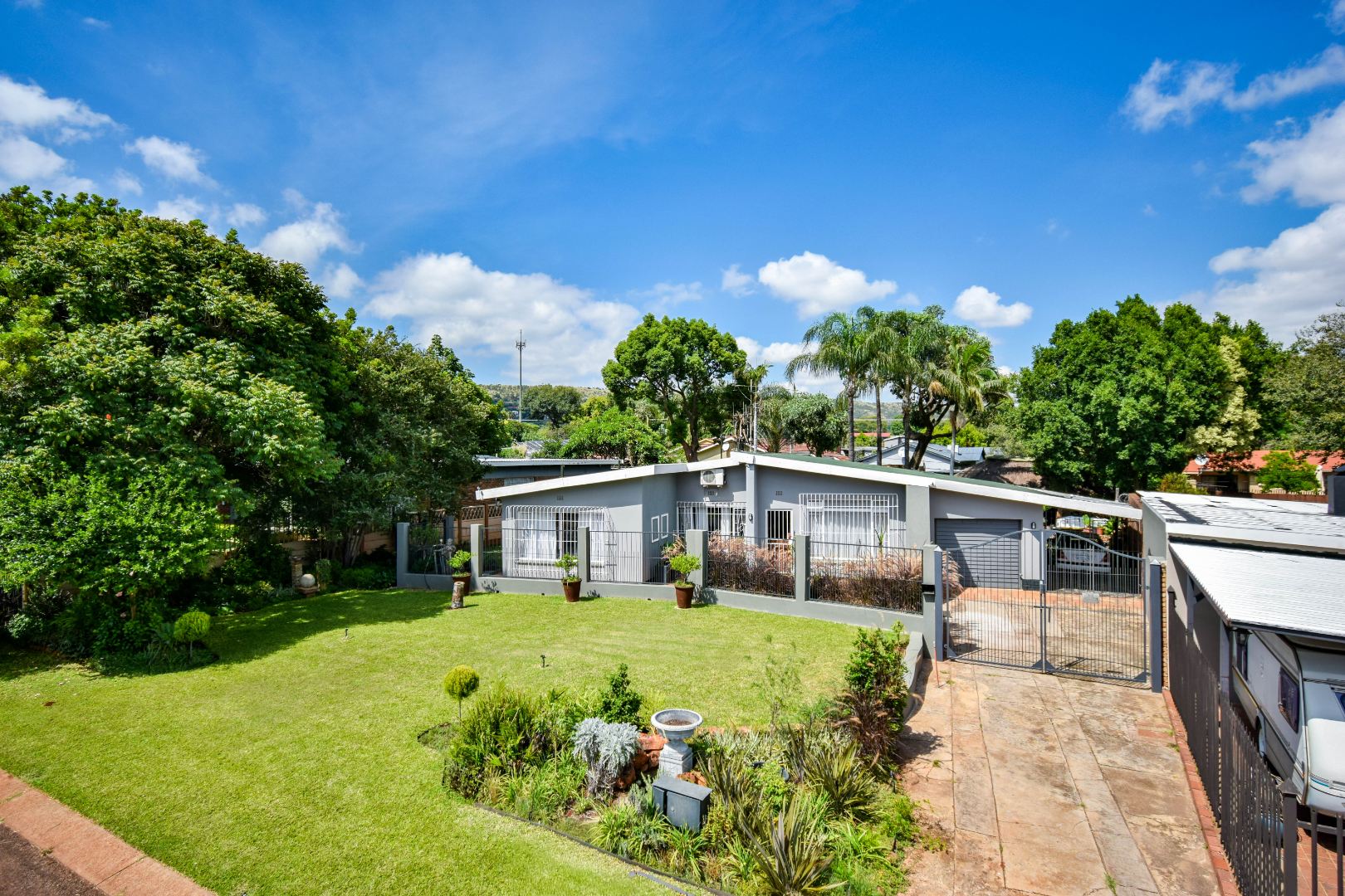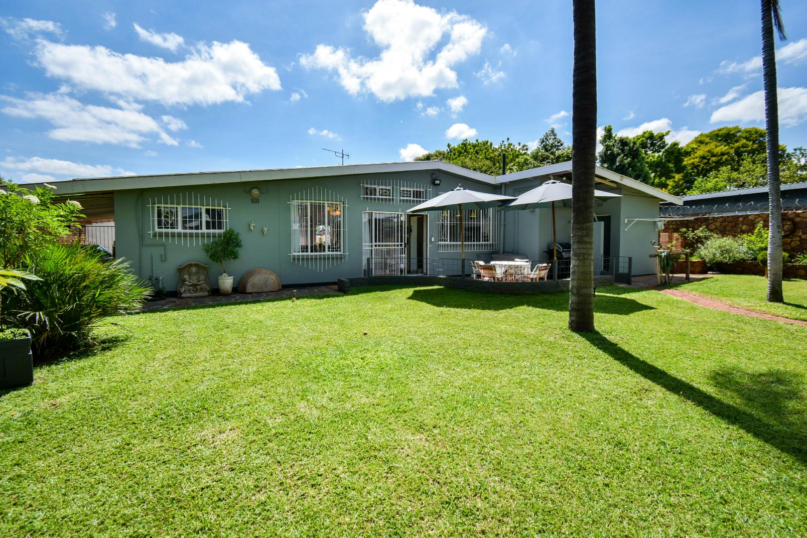 Discover this inviting 3-bedroom, 2-bathroom family home situated on a generous 991m2 erf in the peaceful neighbourhood of Sinoville, Pretoria. The property immediately impresses with its well-maintained garden, lush lawn, and mature trees, offering a welcoming kerb appeal. Ample parking is provided with a single garage and additional space for three vehicles, complemented by a driveway and a secure access gate.