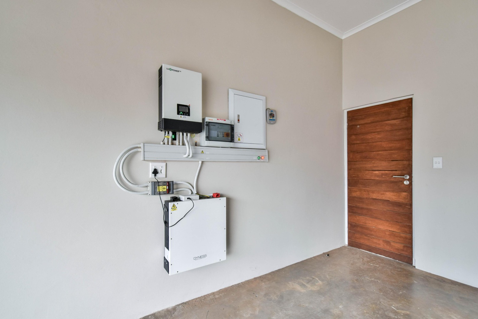 The property features a fully integrated solar power system, a backup electricity solution, and a backup water tank, ensuring uninterrupted comfort and lower monthly costs.