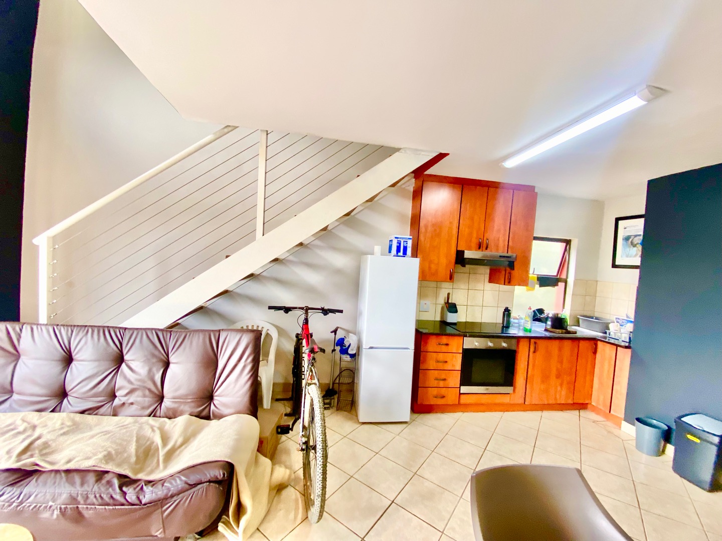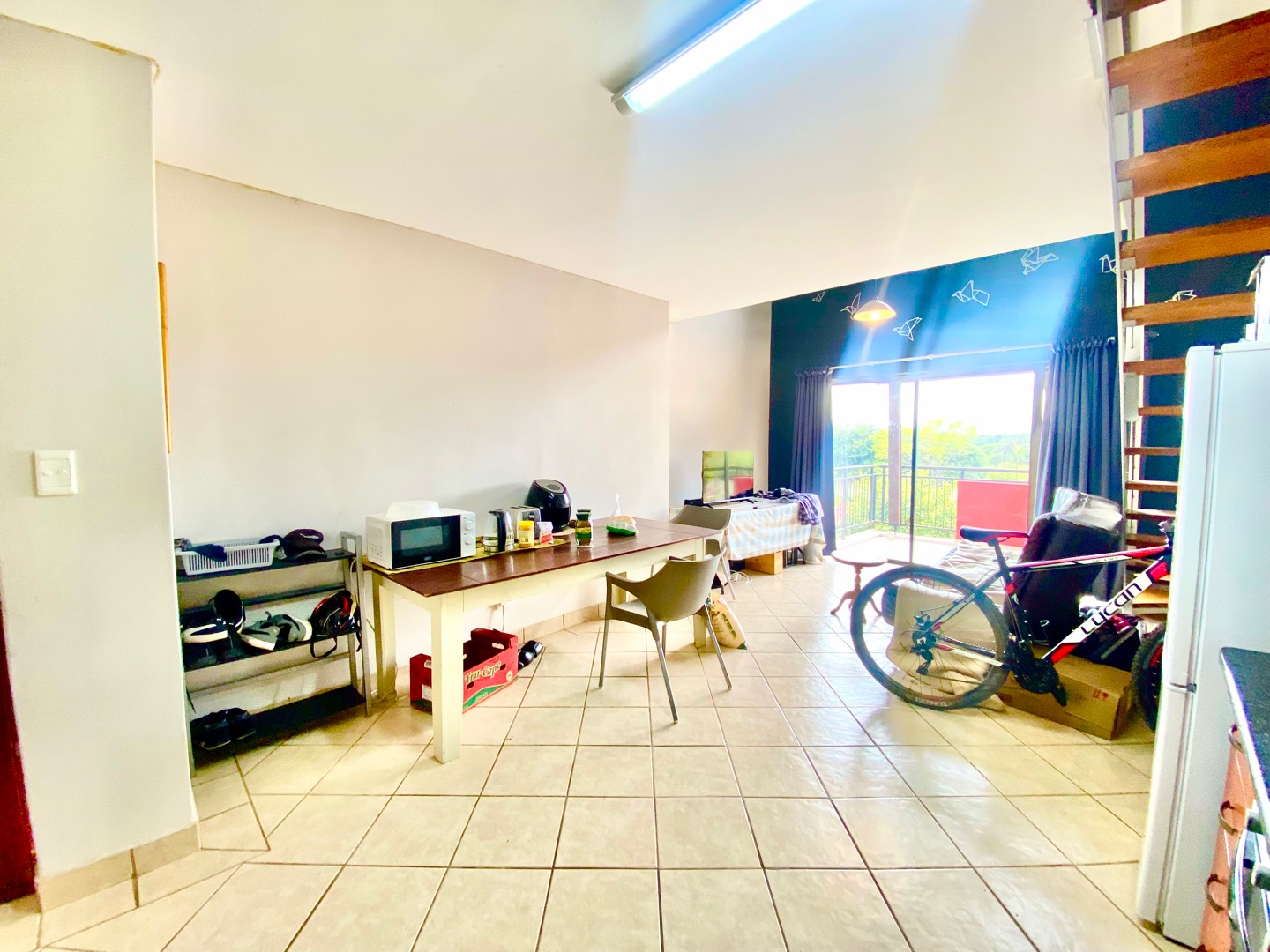 This contemporary loft unit offers a light-filled, open-plan living space that seamlessly flows onto two private balconies, both providing beautiful views—perfect for relaxing, entertaining, or enjoying your morning coffee. The modern kitchen is finished with warm wooden cabinetry and features a sleek touch-plate stove, along with a dedicated outlet for one washing appliance, ensuring everyday practicality without compromising on design.