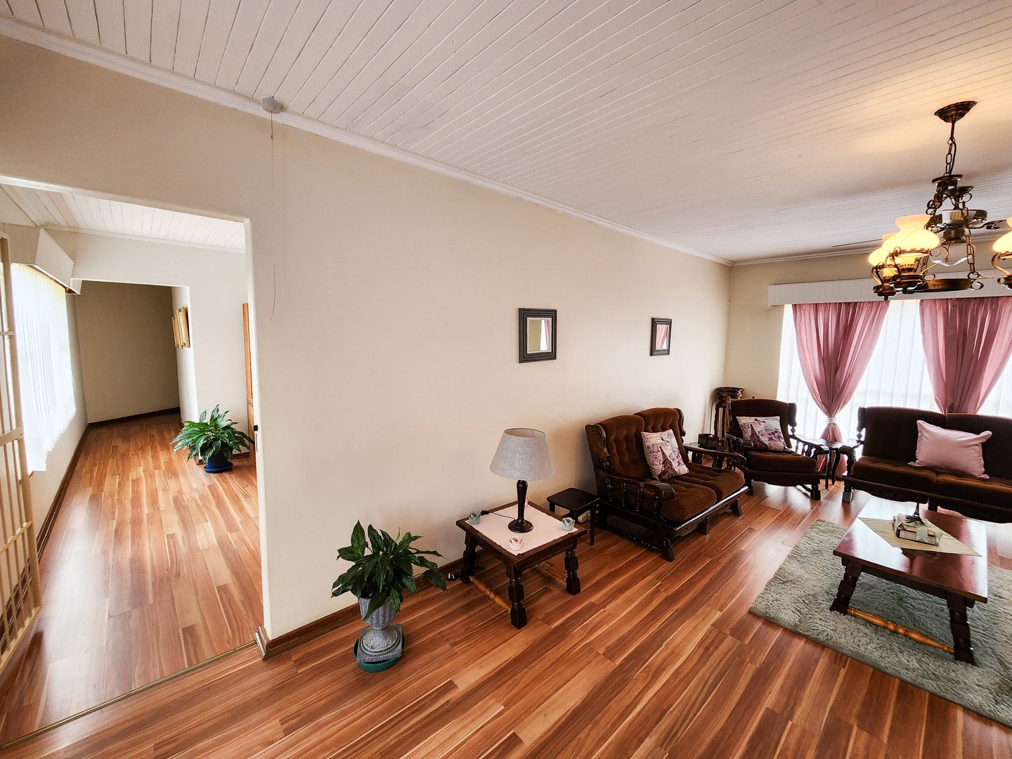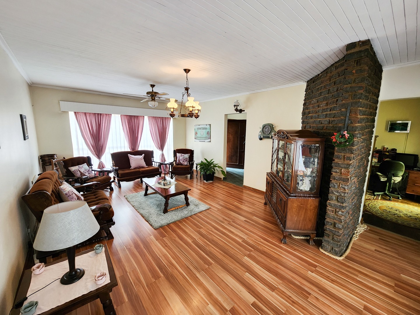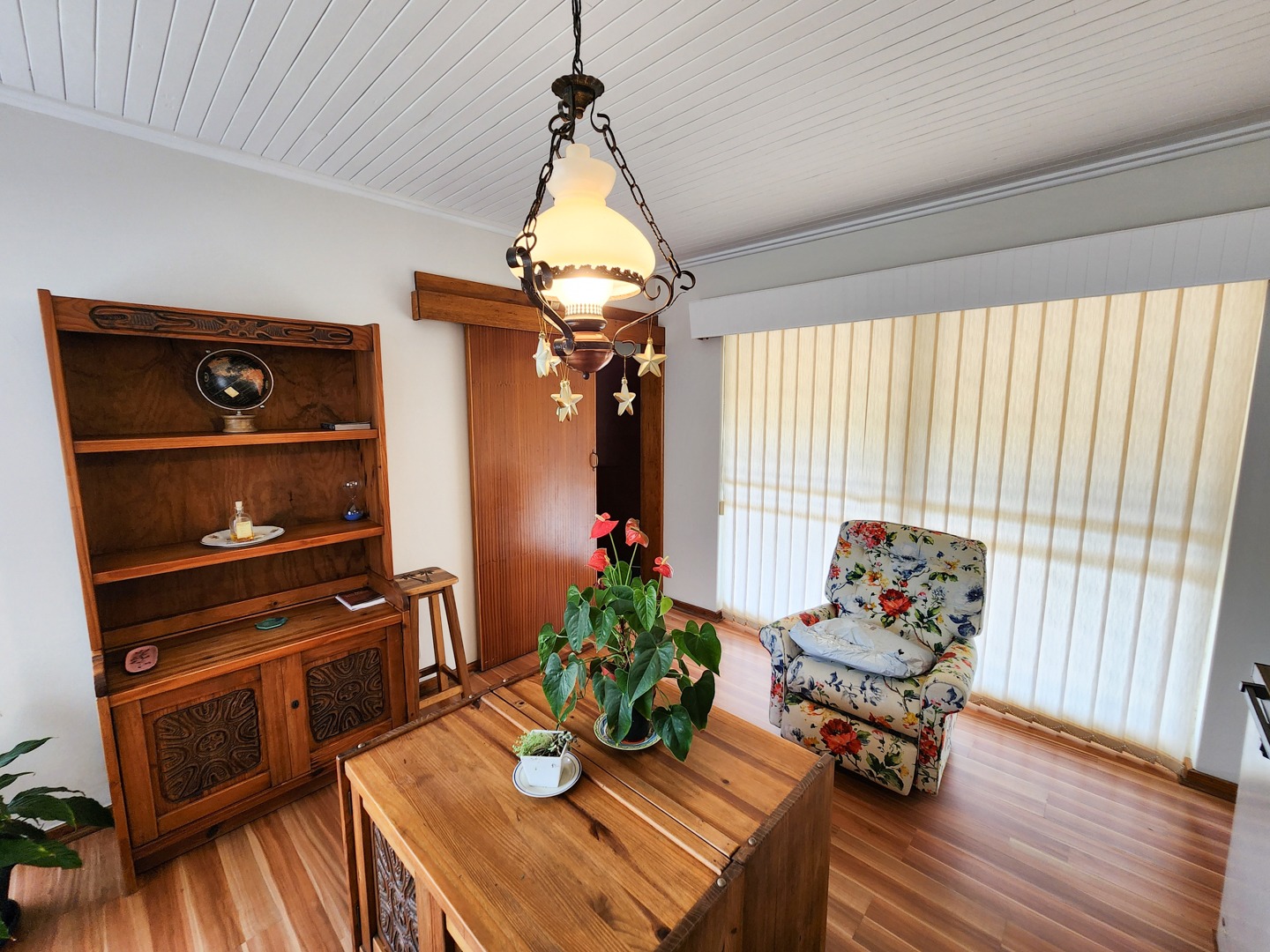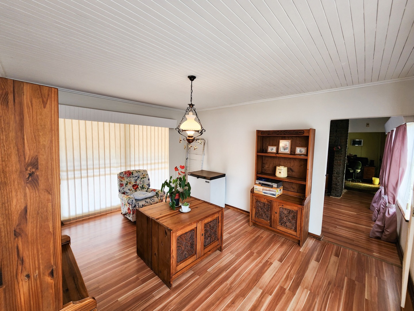 Upon entering, you are welcomed into a spacious entrance hall that flows naturally into the main lounge. A second entrance hall on the side of the home adds further flexibility and comfortably doubles as a small study or work-from-home nook. The main lounge, finished with laminated flooring and complemented by a charming vintage fireplace, exudes warmth and character. Sliding doors lead out to a patio area, allowing natural light to stream in and creating a seamless indoor-outdoor connection.
