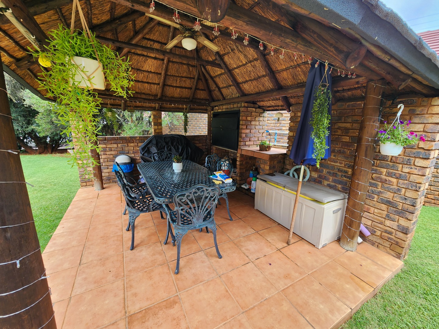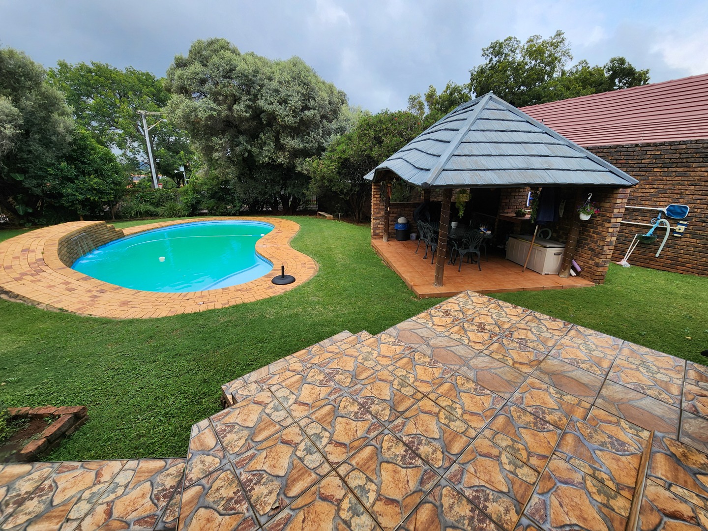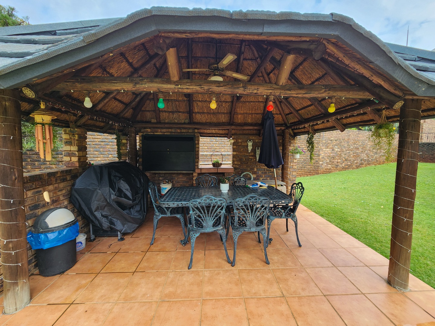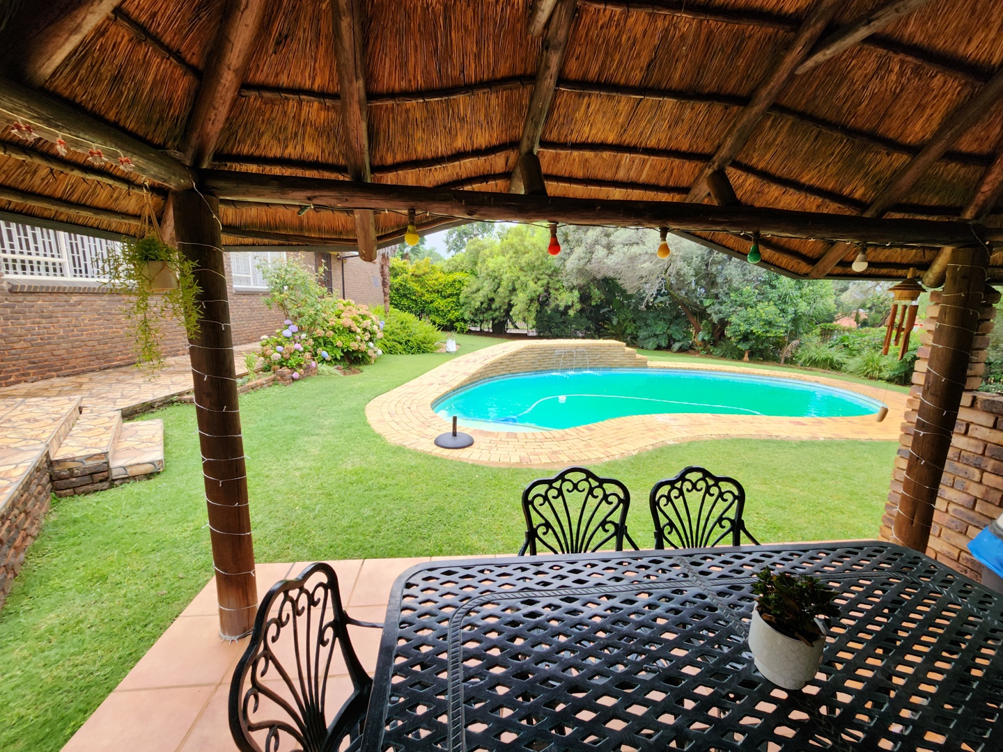 A second lounge further enhances the living space and connects effortlessly to the outdoor entertainment area, reinforcing the home’s easy-flow layout. Outside, a sparkling swimming pool and a charming thatch lapa with built-in braai - protected with durable Harvey thatch tiles - provide the perfect setting for relaxed family gatherings and weekend entertaining. The expansive yet manageable garden offers ample space for children and pets to play while remaining easy to maintain.