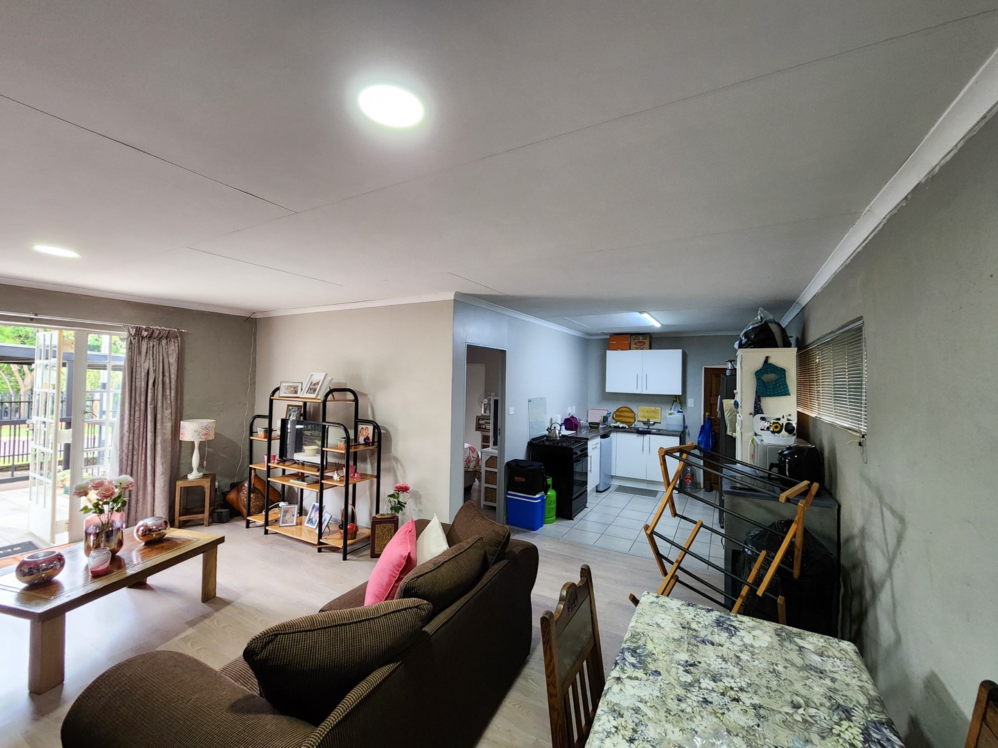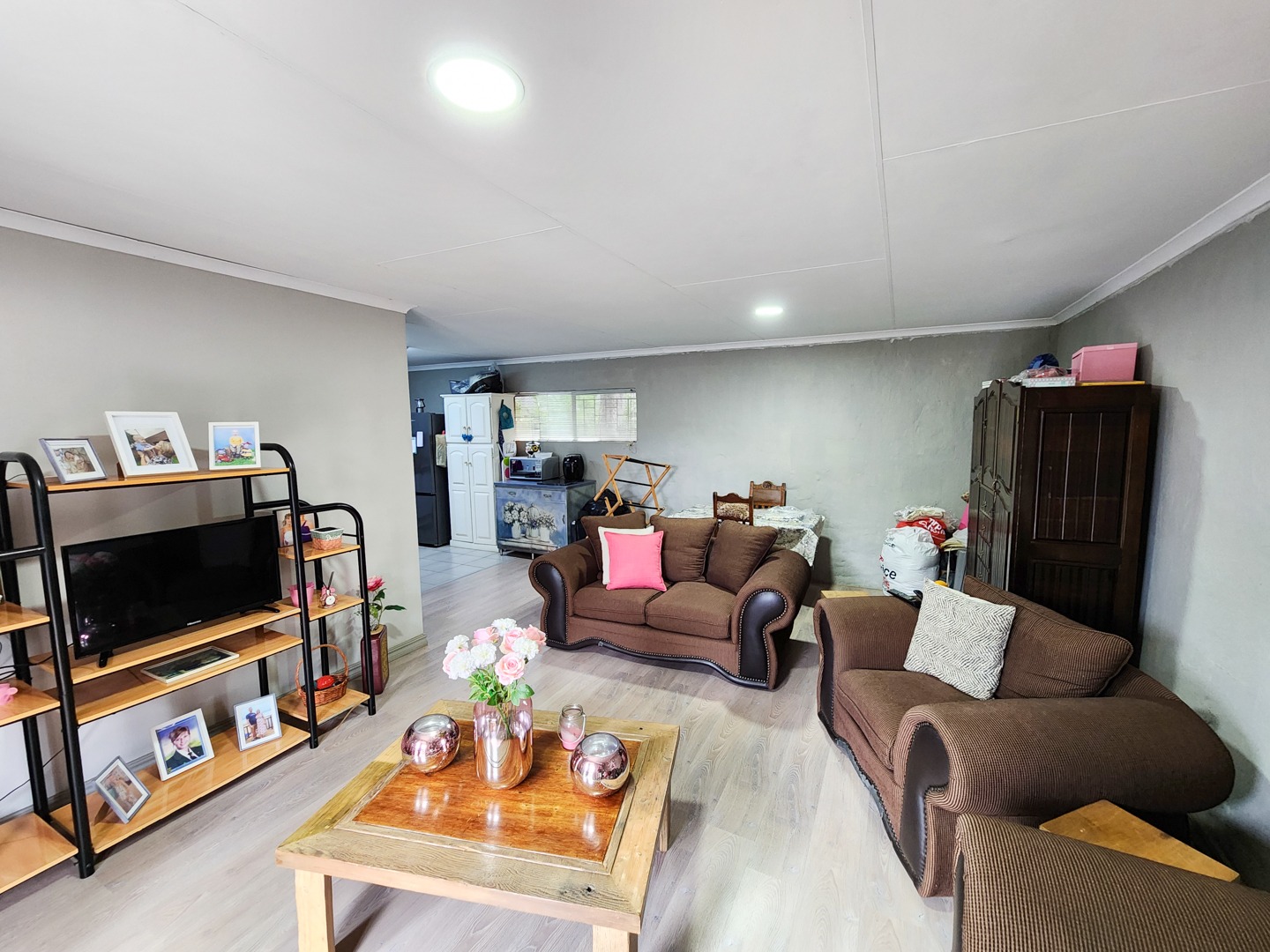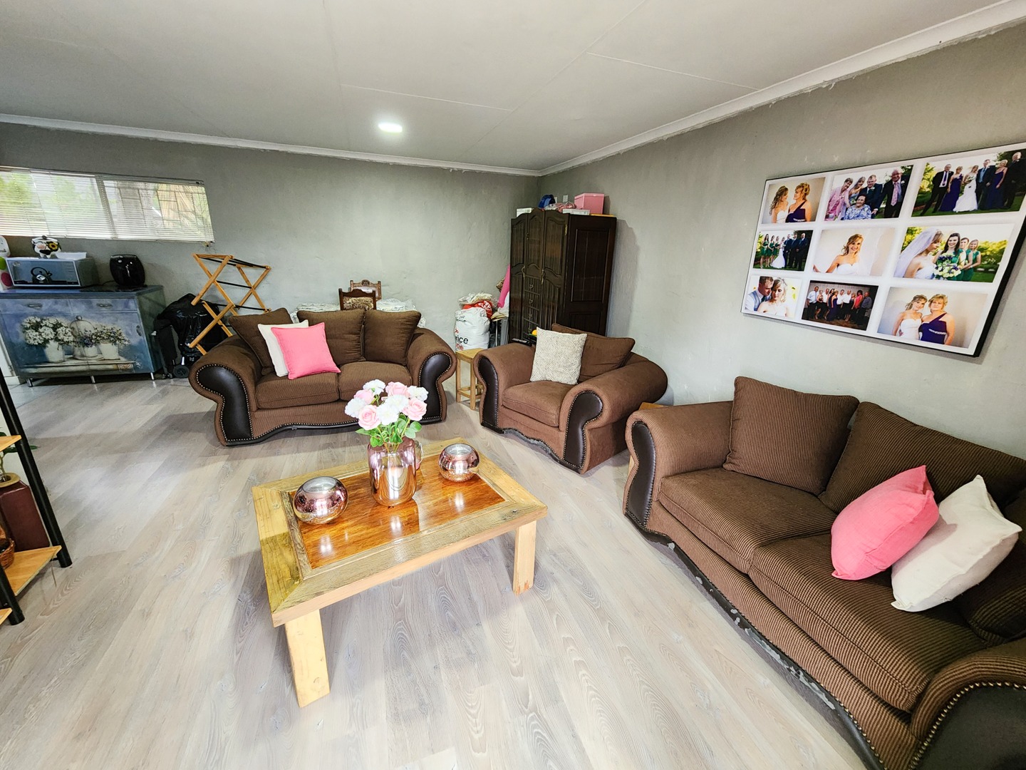 Additional features include an alarm system with beams, prepaid electricity for both the main residence and the flat, fibre connectivity, blinds fitted to most windows, laminated flooring in the passage and dining room, and a large safe included in the sale.