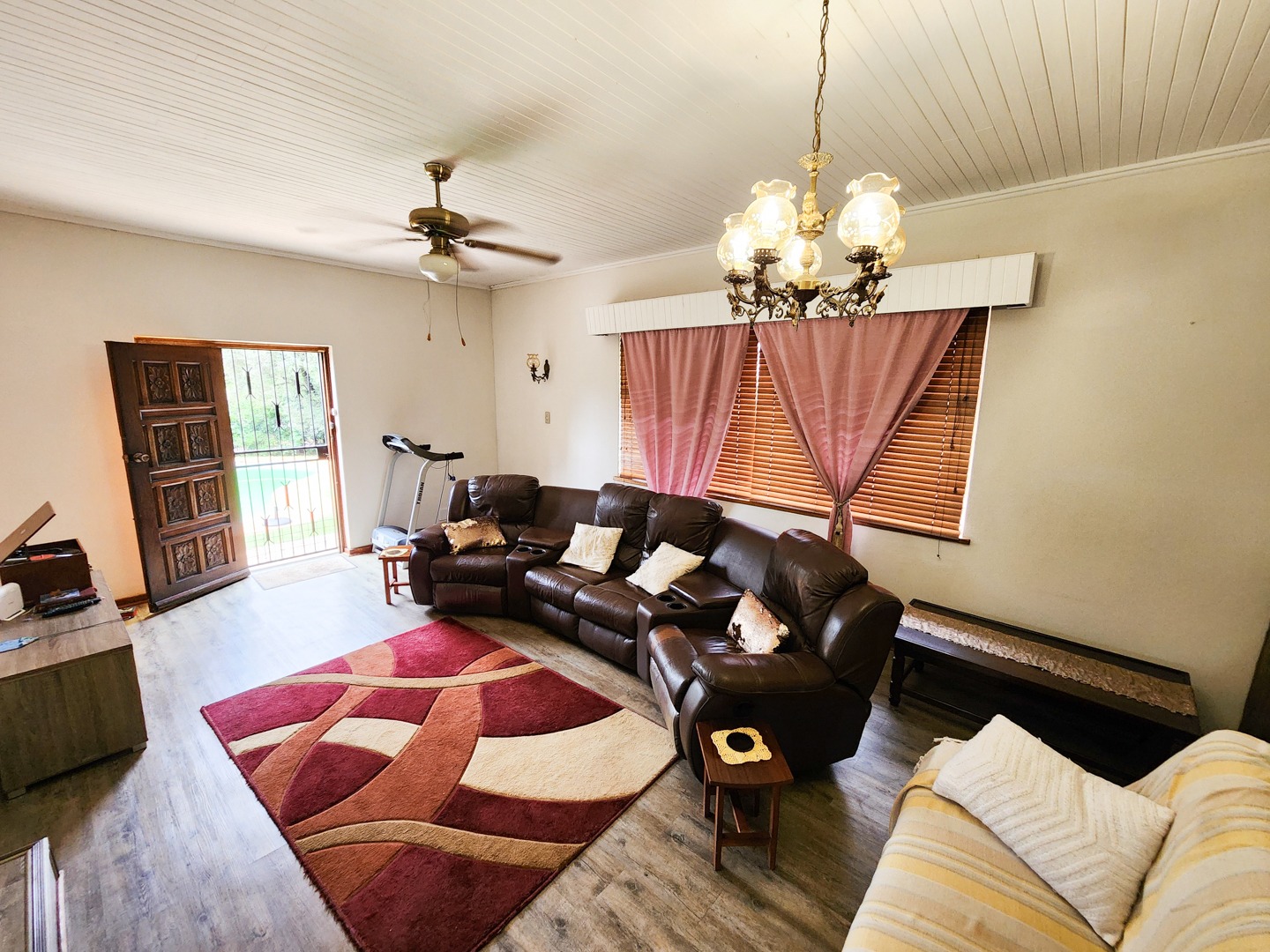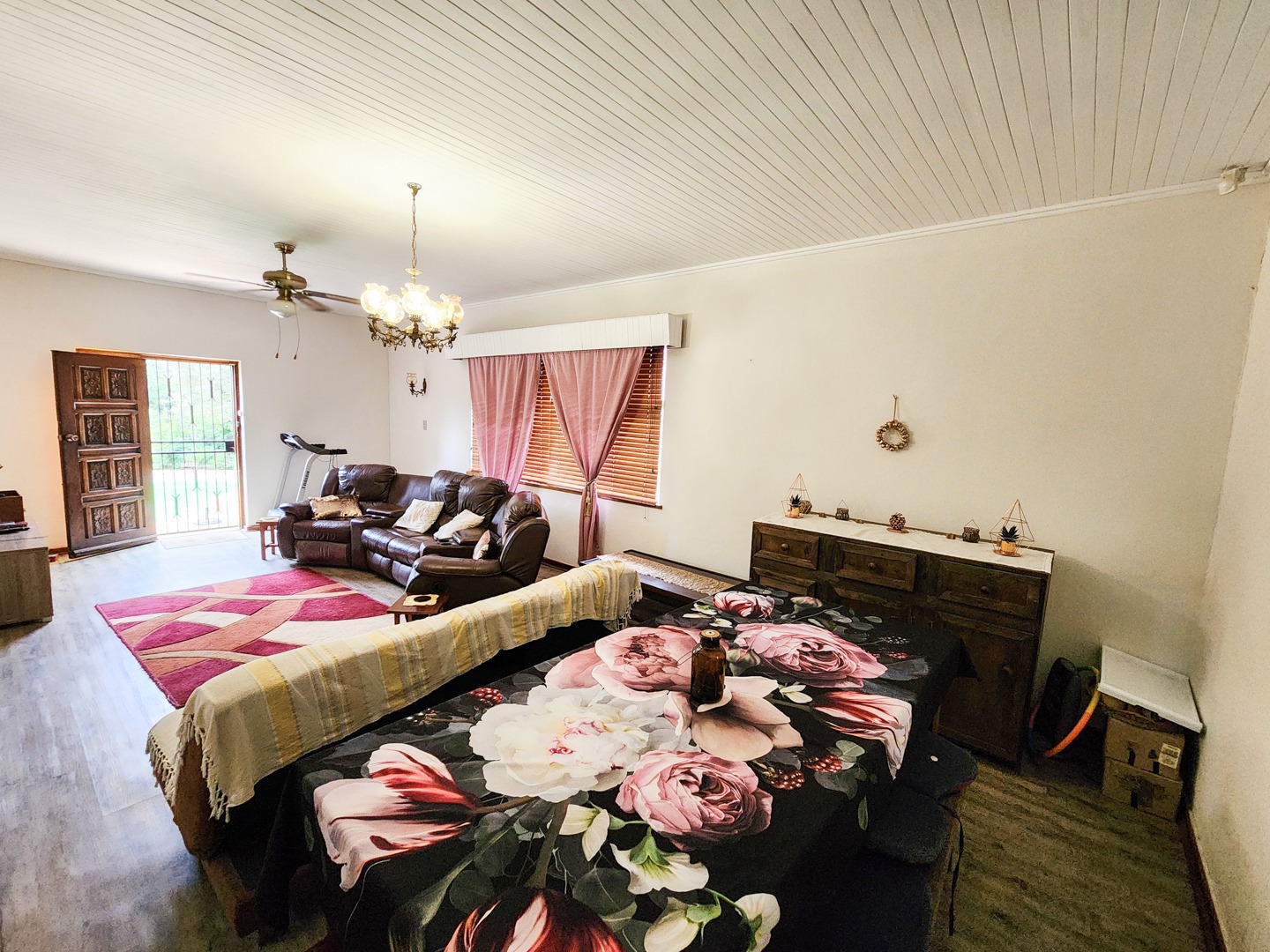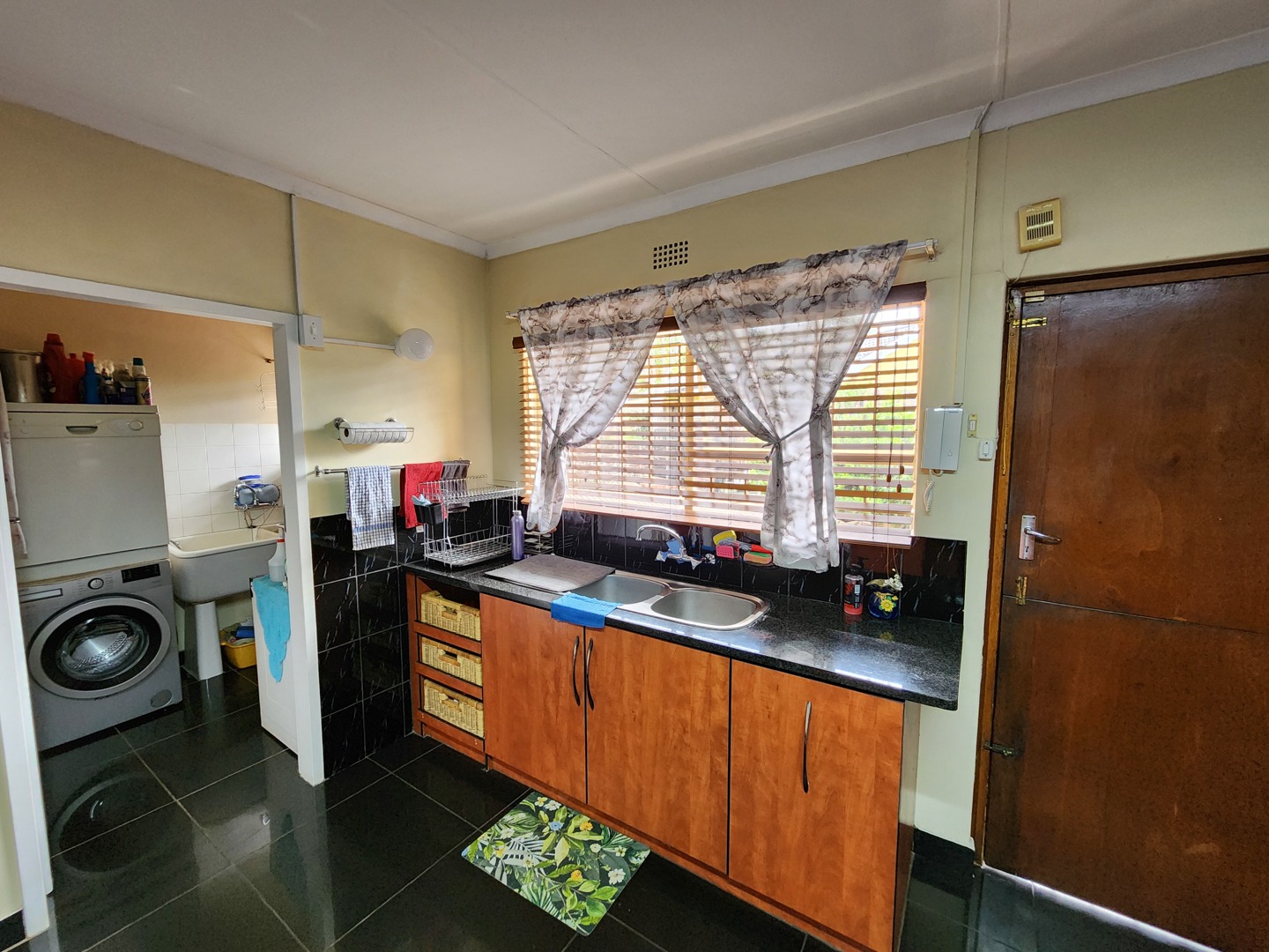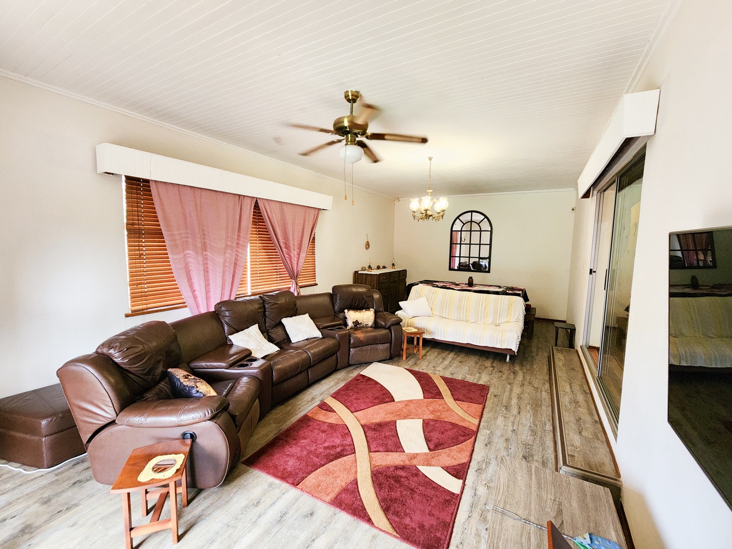 Additional features include an alarm system with beams, prepaid electricity for both the main residence and the flat, fibre connectivity, blinds fitted to most windows, laminated flooring in the passage and dining room, and a large safe included in the sale.