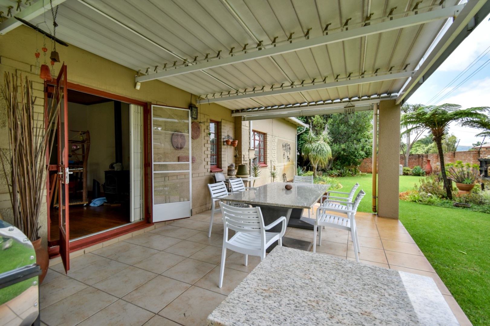 The charming stoep is perfect for family gatherings, relaxed afternoons, and year-round entertainment.