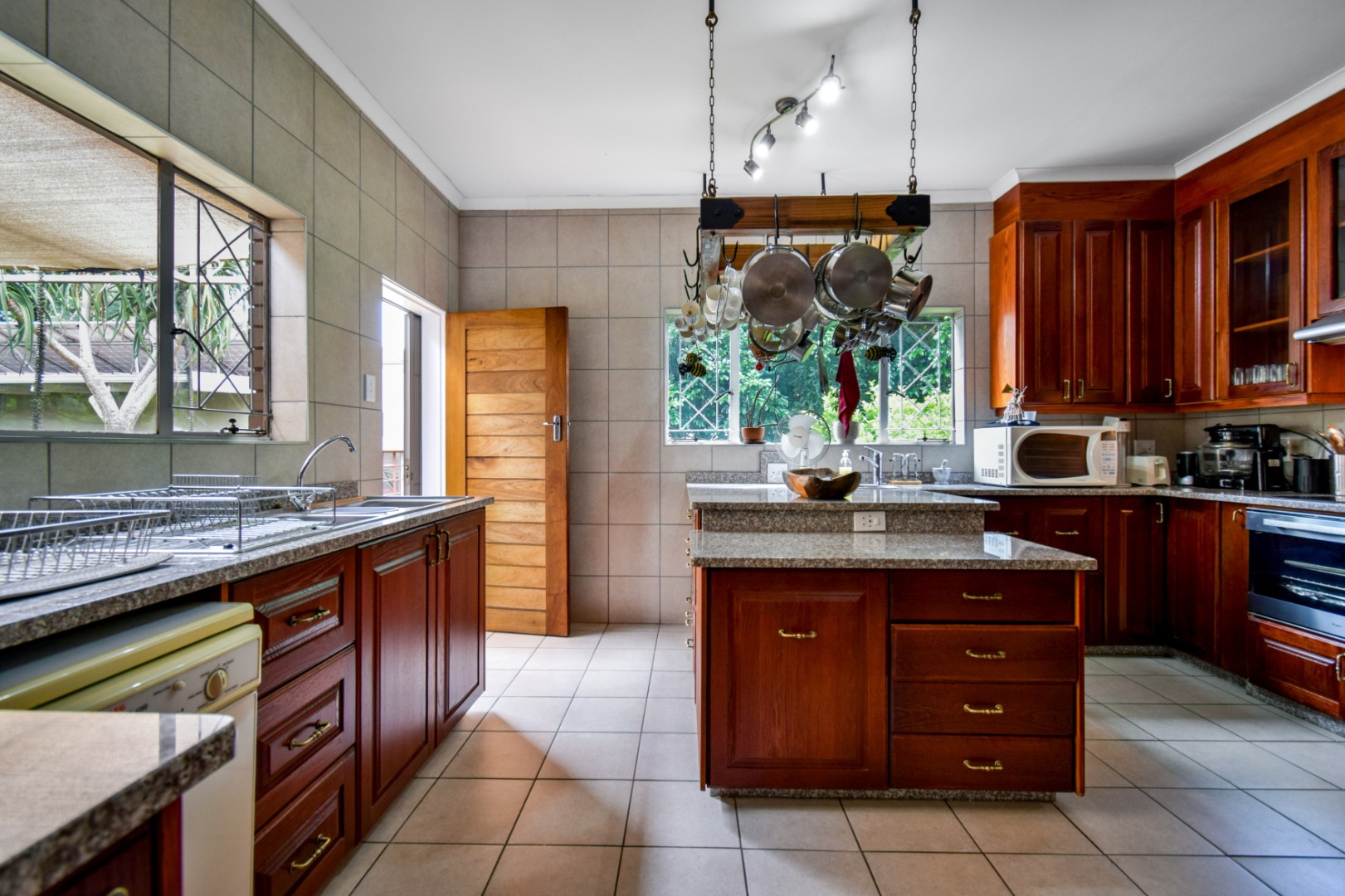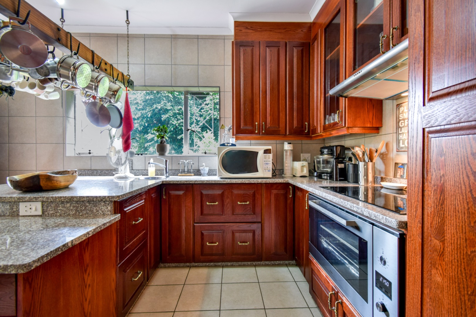 The heart of the home is the generous kitchen, fitted with lovely granite countertops, a pantry, and an abundance of cupboards and working space—perfect for any cooking enthusiast.