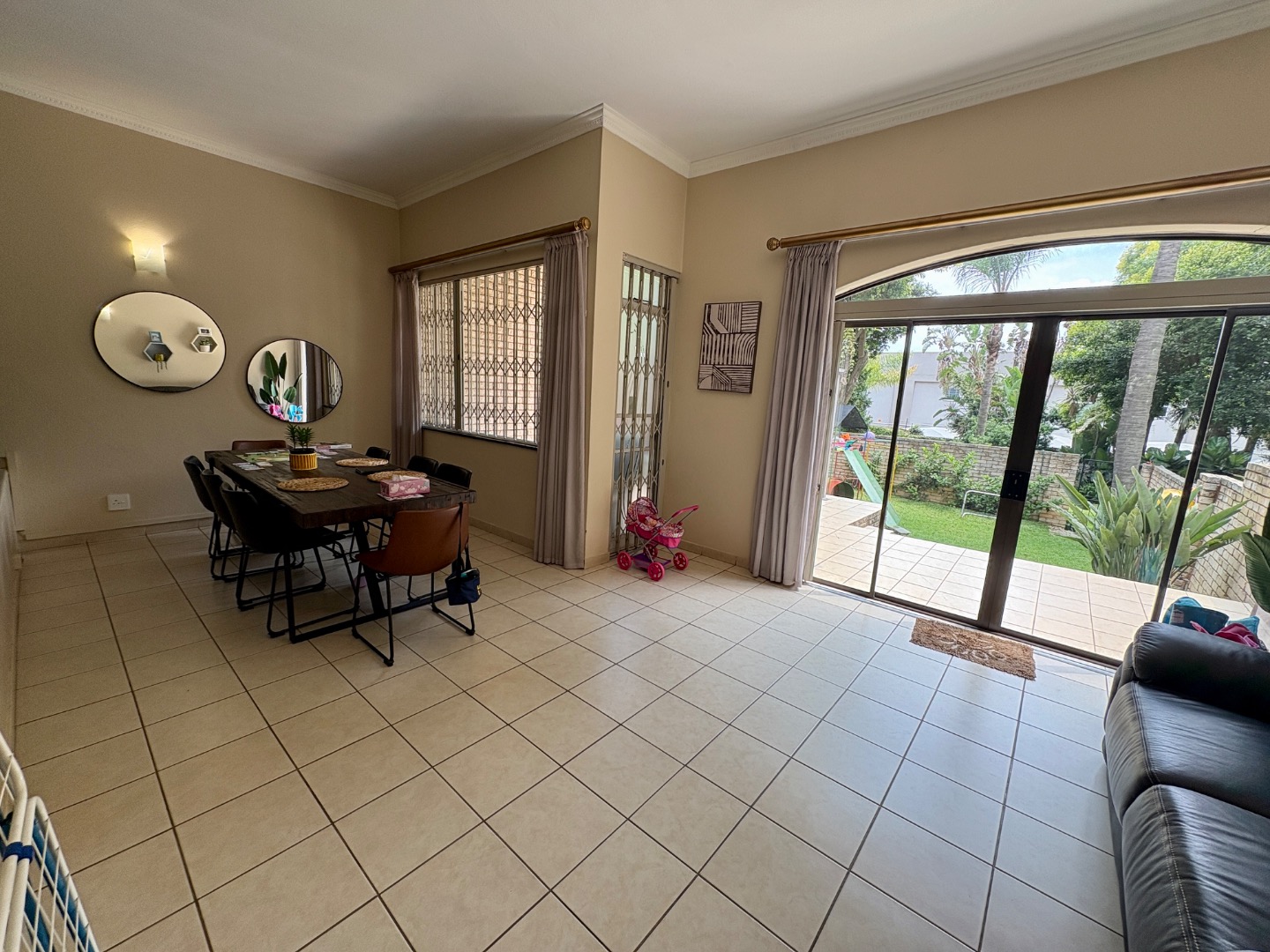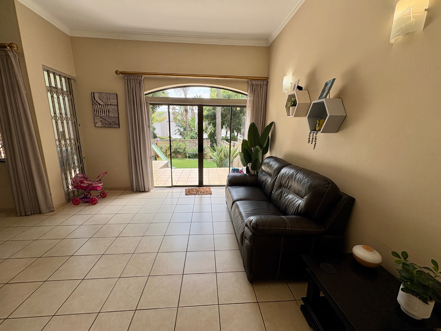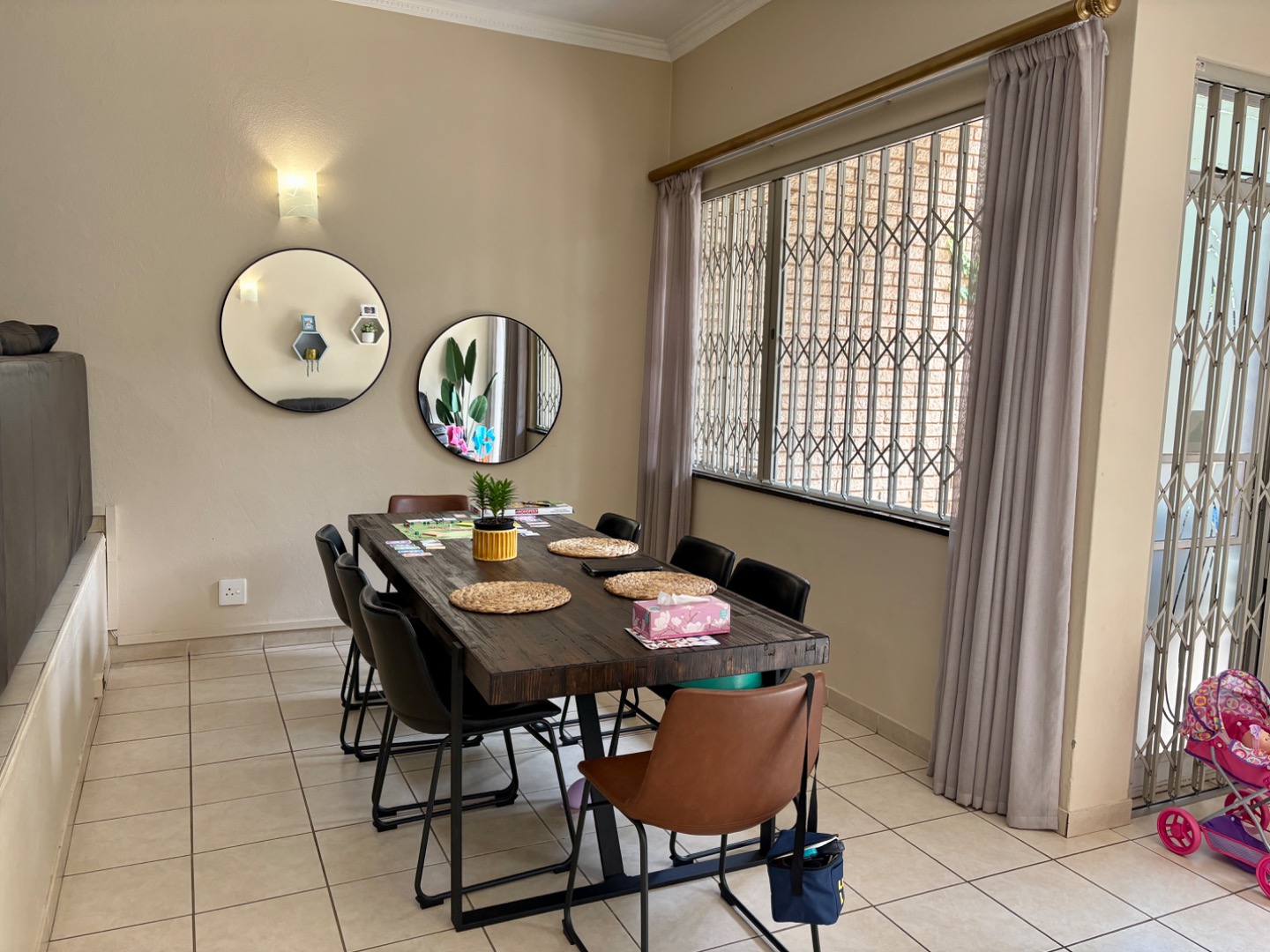 This distinguished two-story modern townhouse, nestled within a well-established complex in Waterkloof Glen, Pretoria, presents an exceptional residential opportunity. The property's kerb appeal is enhanced by its classic brick facade, private garden, and a welcoming covered patio, offering an immediate sense of outdoor living potential and a charming first impression.