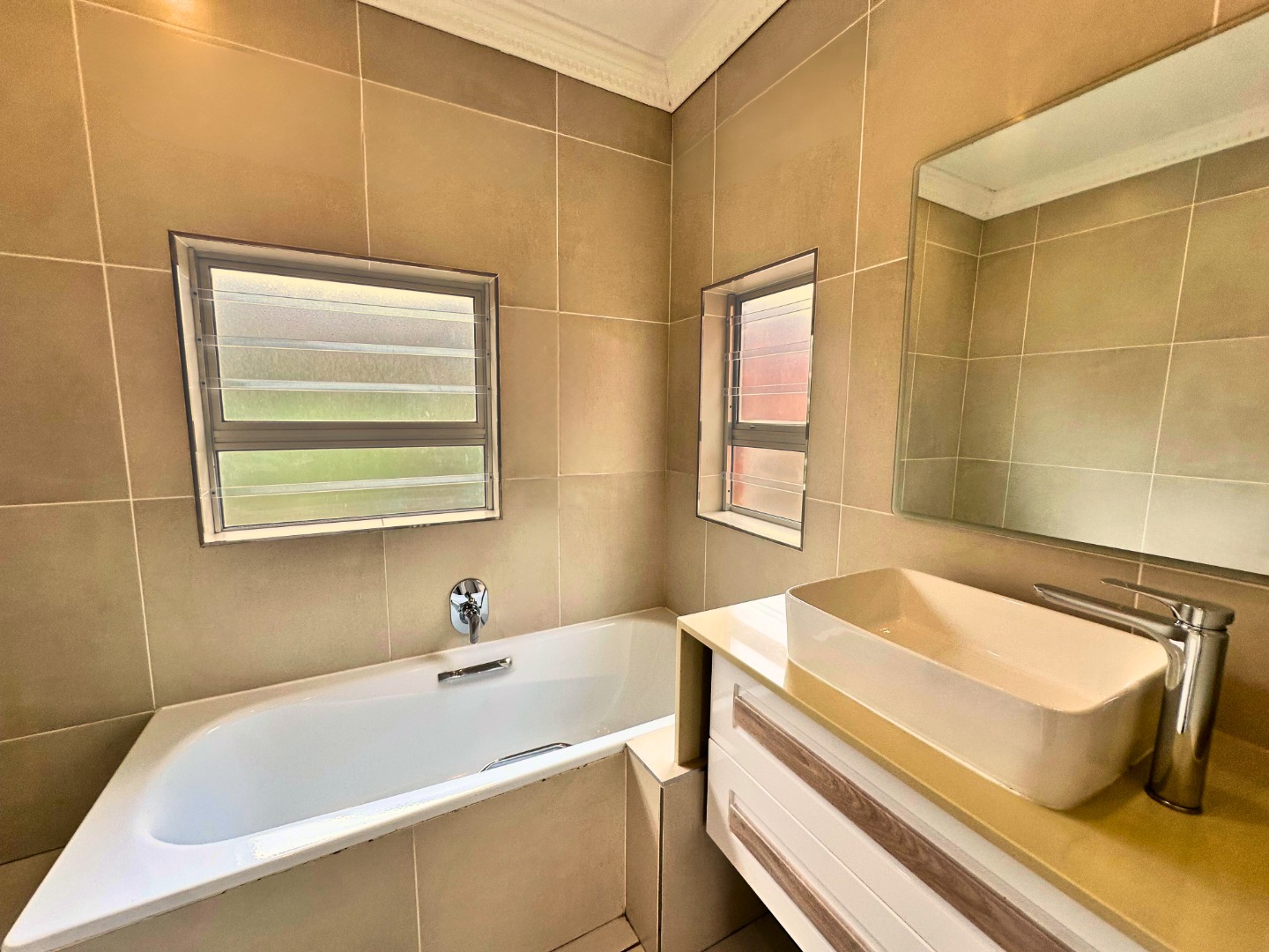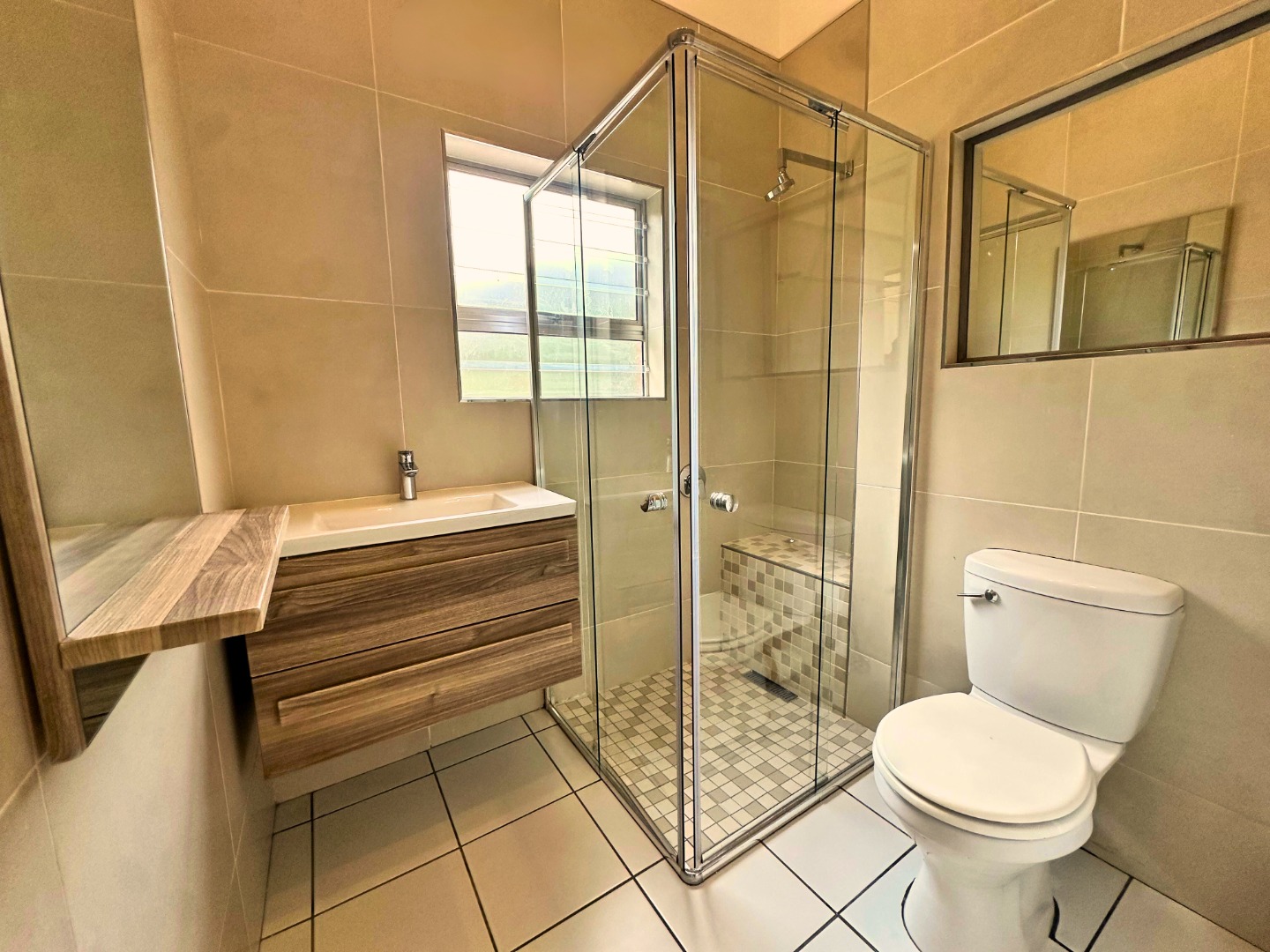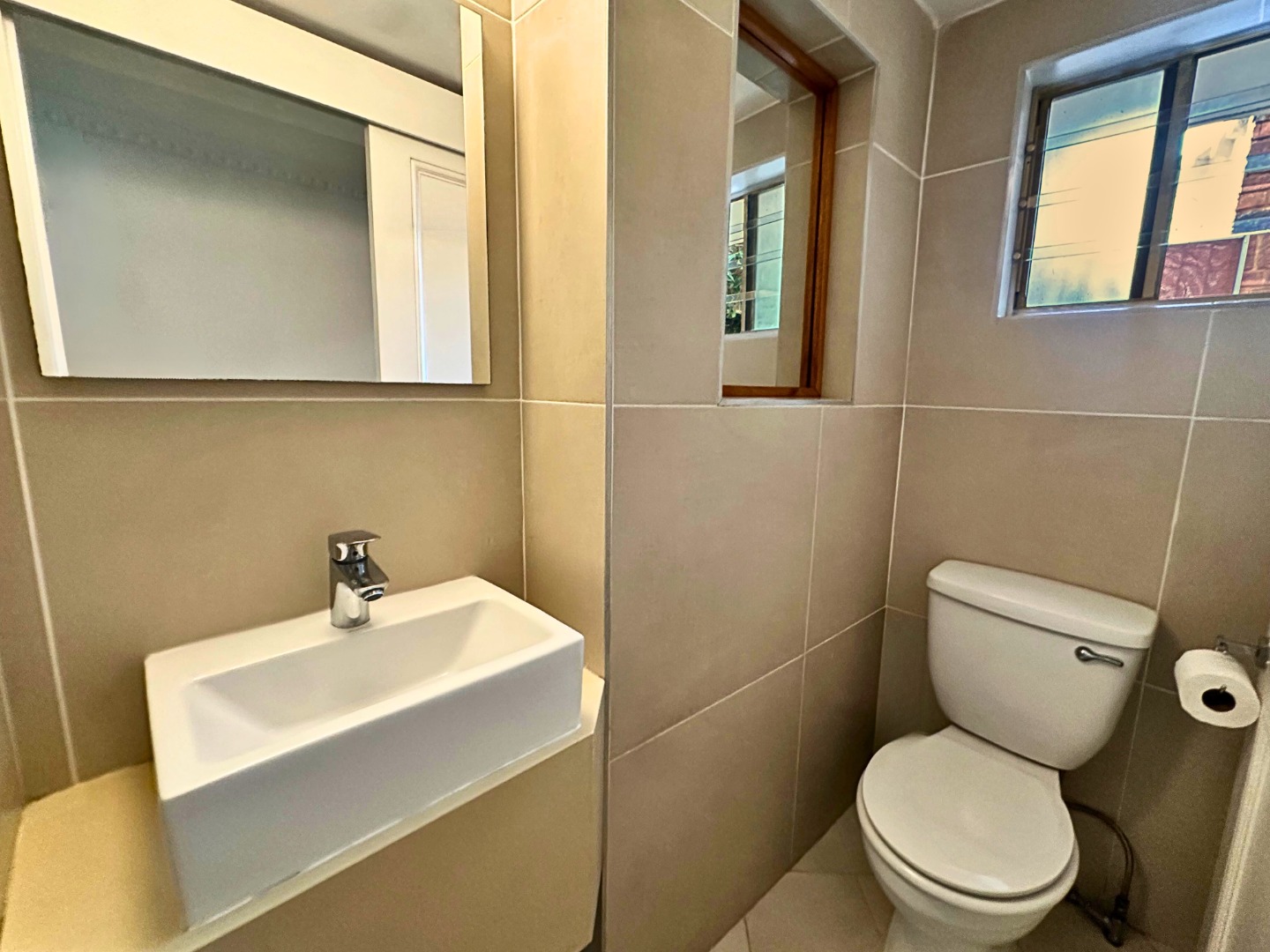 Discover this inviting multi-level residence located in the esteemed suburb of Waterkloof, Pretoria. This property presents a solid brick construction with a welcoming paved entrance and a modern glass-railed balcony, offering a blend of durability and contemporary appeal. The interior boasts an open-plan design, seamlessly connecting the living spaces, including two comfortable lounges and a dedicated dining area, perfect for both relaxation and entertaining. The home features three well-appointed bedrooms and three bathrooms, including a convenient guest toilet and an ensuite. The bathrooms showcase modern floating vanities, sleek vessel sinks, and clean tiled finishes, with some offering walk-in showers with built-in benches for added comfort. Each bedroom benefits from ample natural light and practical built-in wardrobes, with some featuring modern laminate or wood-look tiled flooring and air conditioning units for year-round comfort. A dedicated workspace with a built-in desk is also available. Outdoor living is enhanced by a private balcony and patio, complemented by paved areas around the property. This pet-friendly residence is equipped with essential security features, including an access gate, alarm system, electric fencing, and security gates, further reinforced by burglar bars on windows and doors for peace of mind. Embracing modern living, the property is fitted with solar panels and a battery inverter, ensuring energy efficiency and backup power. High-speed fibre internet connectivity is also available, catering to contemporary digital needs. This Waterkloof home offers a harmonious blend of comfort, security, and modern conveniences. Key Features: * 3 Bedrooms, 3 Bathrooms (1 Ensuite, 1 Guest Toilet) * 2 Lounges, 1 Dining Room, 1 Kitchen * Modern Floating Vanities & Tiled Bathrooms * Built-in Wardrobes & Air Conditioning * Balcony & Patio * Solar Panels & Battery Inverter * Fibre Internet Connectivity * Alarm System, Electric Fencing & Security Gates * Pet-Friendly