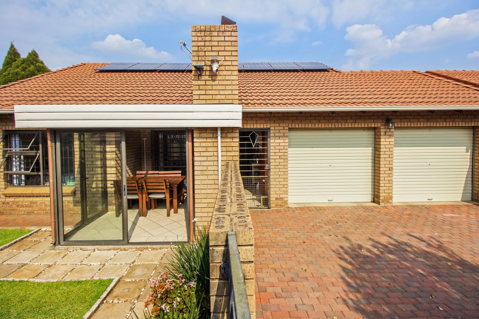 Nestled within a sought-after security estate in Willow Park Manor, Pretoria, this charming 2 bedroom, 1 full bathroom residence offers a blend of comfort, security, and modern convenience. The property boasts a sturdy brick exterior, a classic tiled roof, and a welcoming paved driveway leading to two garages and additional parking for four vehicles. Energy efficiency is a key feature, with solar panels installed to reduce utility costs.