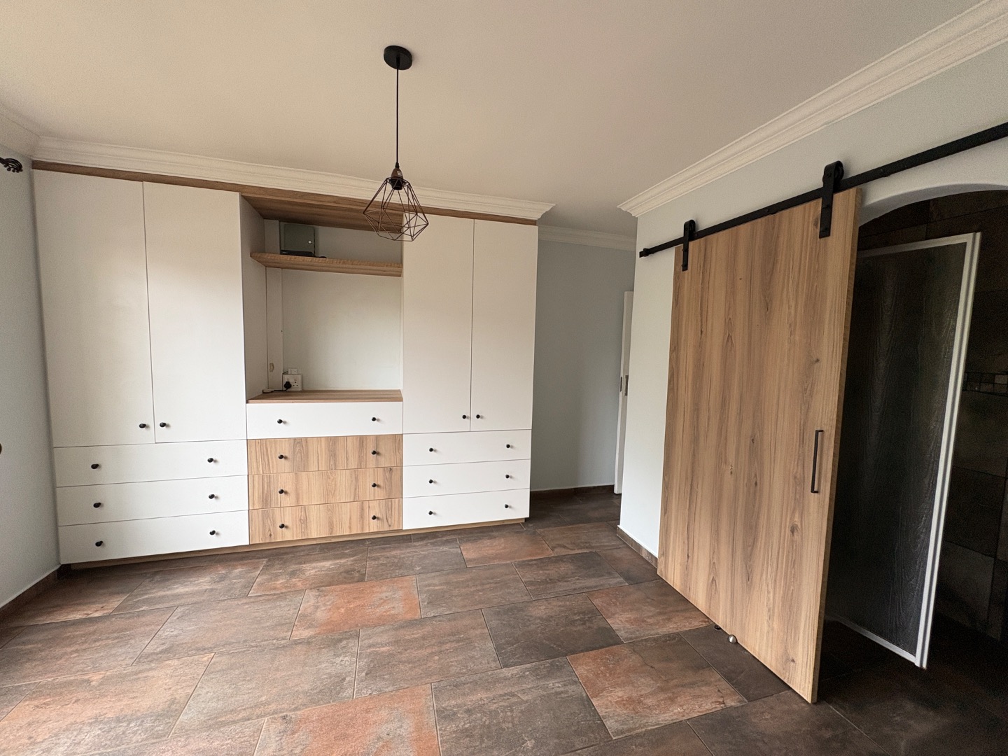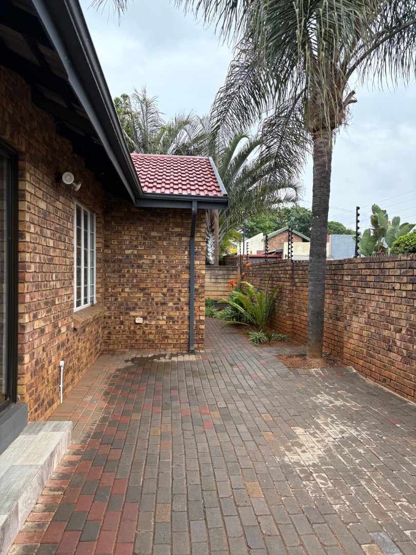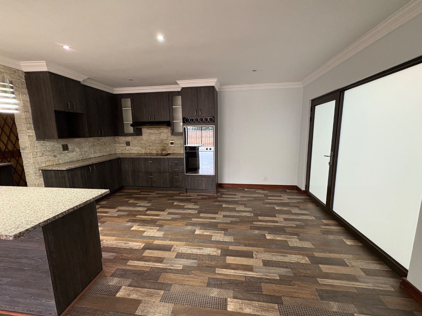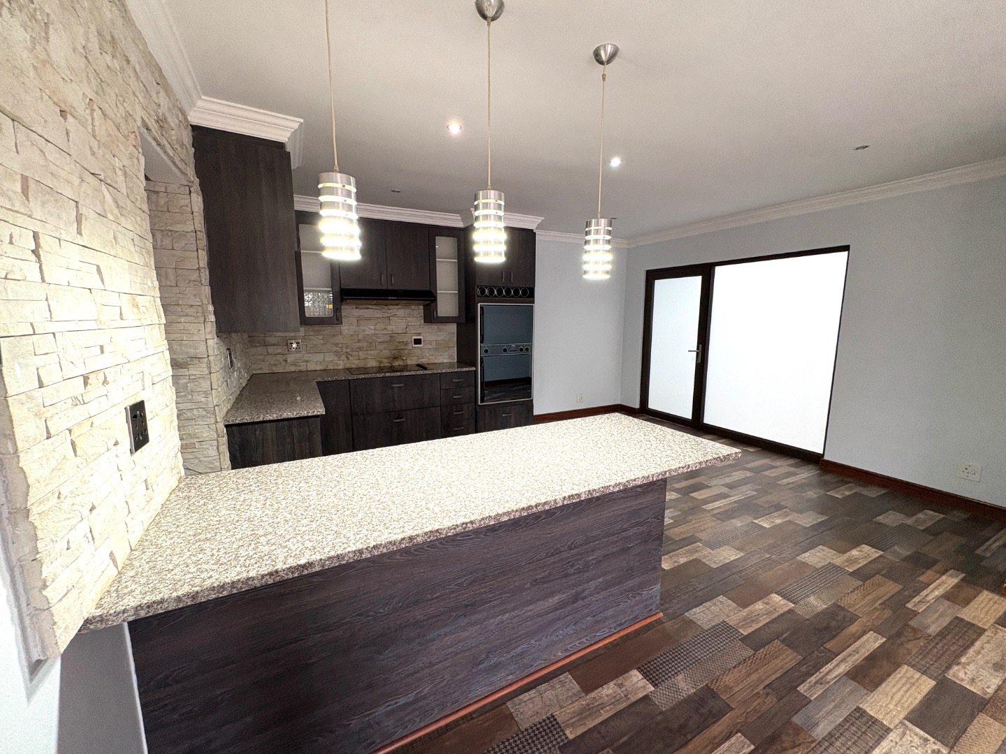 This lovely 3-bedroom, 2-bathroom home in Ninapark, Akasia, is ready for you to move in and make it your own. Step inside and you'll find a modern, open-plan living area with stylish patterned flooring, crown molding, and recessed lighting, perfect for relaxing or entertaining. The kitchen is a real highlight, boasting dark wood-grain cabinetry, sleek granite countertops, a trendy stone-look backsplash, and integrated appliances like an oven, hob, and extractor fan, plus a handy built-in wine rack. There's also a dedicated dining room for family meals. The bedrooms are comfy spaces, and the two bathrooms are well-appointed. One features a modern vanity and a bathtub with an integrated shower, while another has a shower accessible via a cool barn door, adding a touch of contemporary style. With 2 garages and 2 additional parking spaces, there's plenty of room for your vehicles. This unfurnished home is pet-friendly, so your furry friends are welcome too! Outside, you'll love the private swimming pool, complete with a thatched lapa – ideal for those sunny South African braais and gatherings. There's also a nice garden to enjoy. For your peace of mind, the property comes with an alarm system, electric fencing, security grilles on windows, and security gates on sliding doors. You'll also find a CCTV camera and access control panel, plus air conditioning for those hot days and fibre connectivity for all your internet needs. Plus, there are domestic rooms for added convenience. Ninapark offers a great suburban lifestyle in Akasia, South Africa, providing a comfortable and convenient place to call home. It's a well-established area with easy access to local amenities. Key Features: * 3 Bedrooms, 2 Bathrooms * Modern Open-Plan Kitchen & Living * Private Swimming Pool with Lapa * 2 Garages & 2 Parking Spaces * Pet-Friendly Home * Alarm System & Electric Fencing * Fibre Ready * Air Conditioning * Domestic Rooms