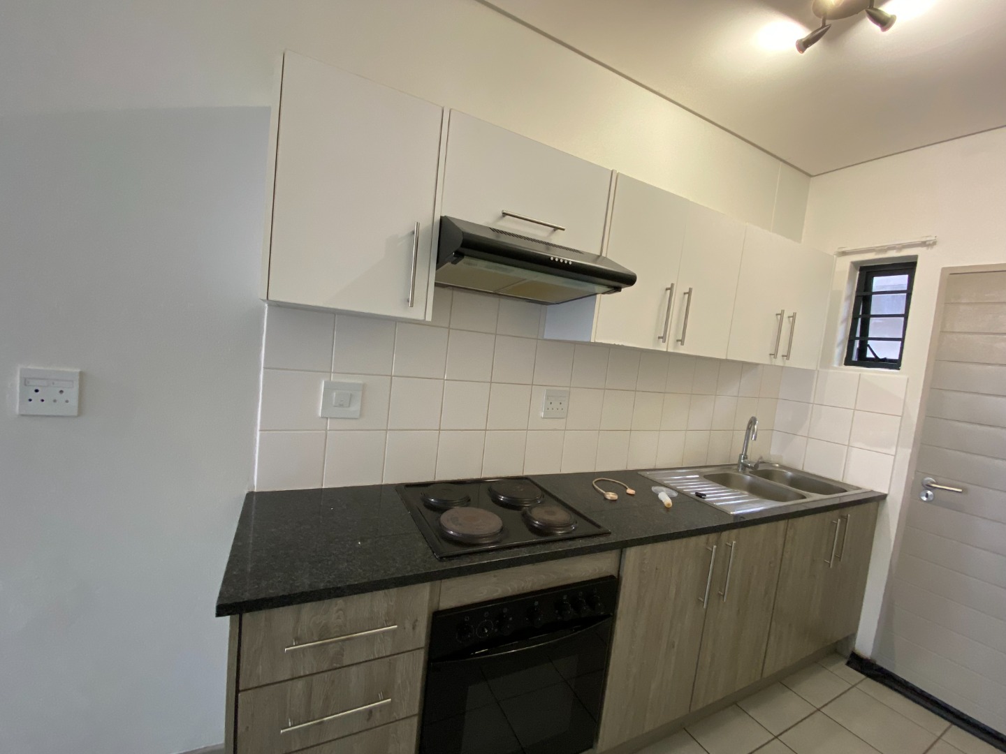 The contemporary kitchen is fitted with sleek built-in cupboards, providing ample storage space. It features an electric stove and oven with an extractor fan, making it both functional and elegant. The unit operates on prepaid water and electricity, offering convenience and easy utility management. Additionally, the apartment is fibre-ready, ensuring fast and reliable internet connectivity and there's solar geyser .