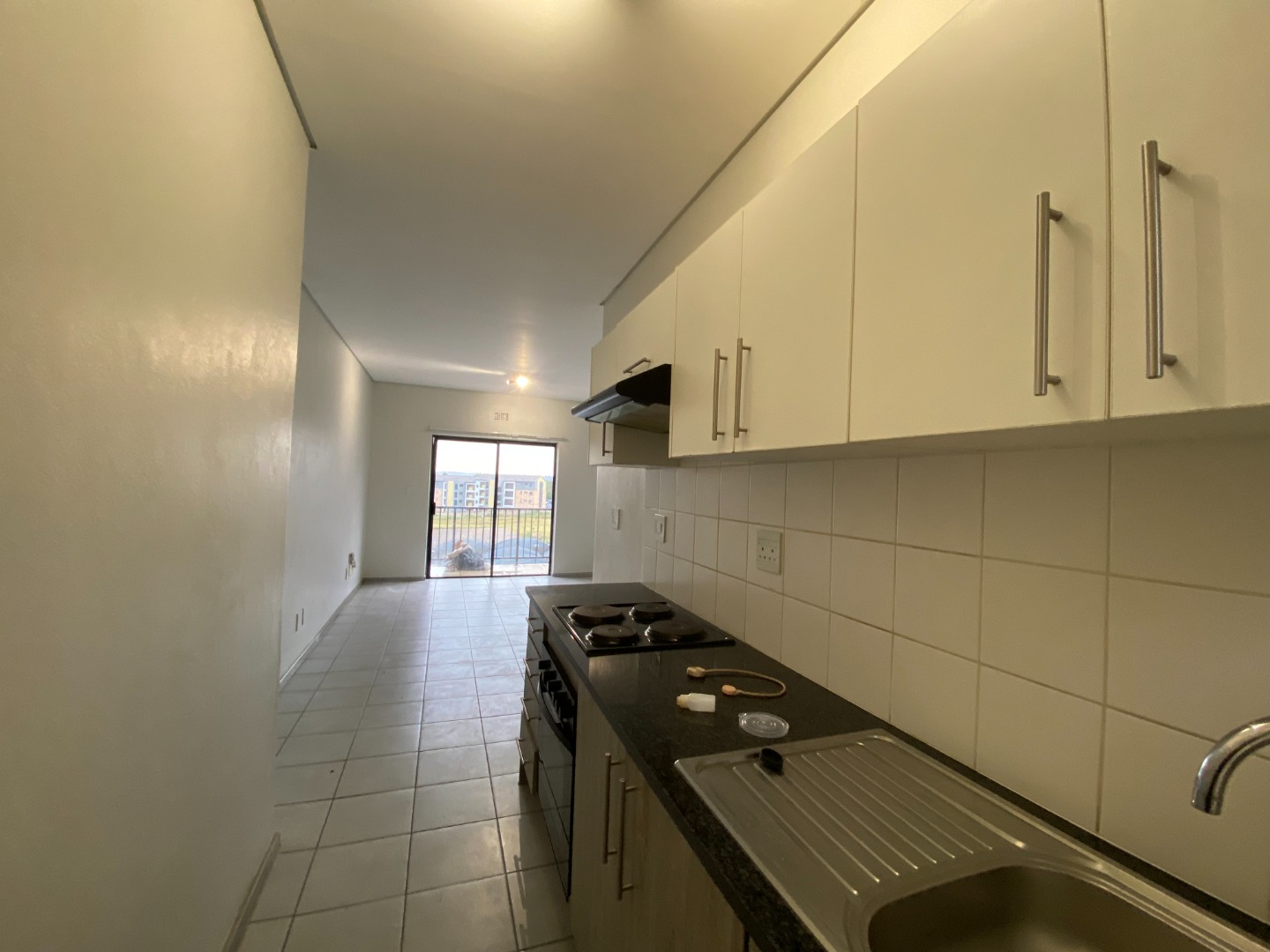 The contemporary kitchen is fitted with sleek built-in cupboards, providing ample storage space. It features an electric stove and oven with an extractor fan, making it both functional and elegant. The unit operates on prepaid water and electricity, offering convenience and easy utility management. Additionally, the apartment is fibre-ready, ensuring fast and reliable internet connectivity and there's solar geyser .