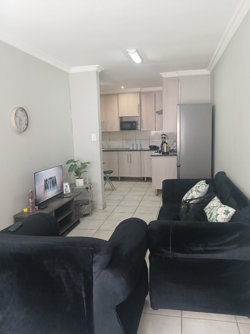 The unit features an open-plan lounge and kitchen with ample cupboards, 2 bedrooms with built-in wardrobes and a shower only bathroom. There is secure, open parking for 1 vehicle with prepaid electricity and water fixed at R300 per month.