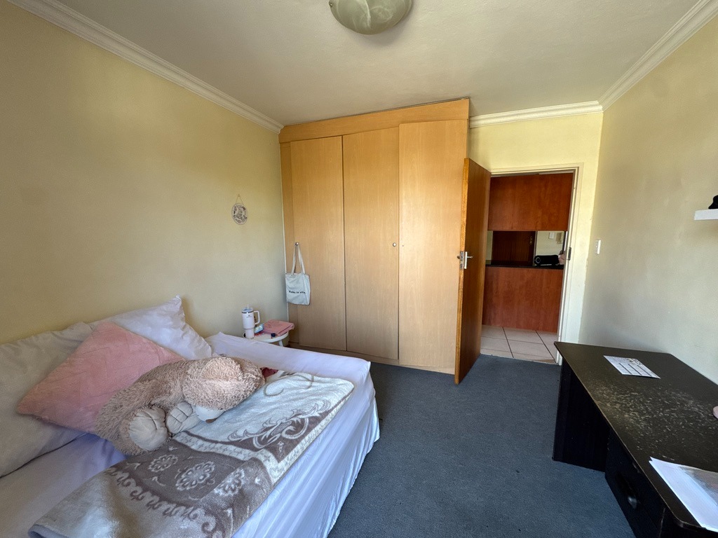 Discover this inviting 2-bedroom, 1-bathroom apartment situated in a well-maintained complex in Hillcrest, Pretoria. The residence features an open-plan living and dining area, seamlessly connecting to a functional kitchen. The kitchen is equipped with wooden cabinetry, black countertops, and a freestanding stove. Tiled flooring extends throughout the main living spaces, ensuring easy maintenance, while the bedrooms offer comfortable carpeting. Each bedroom benefits from ample natural light and direct access to a private balcony, providing a pleasant outdoor retreat. A dedicated covered parking bay is also included.