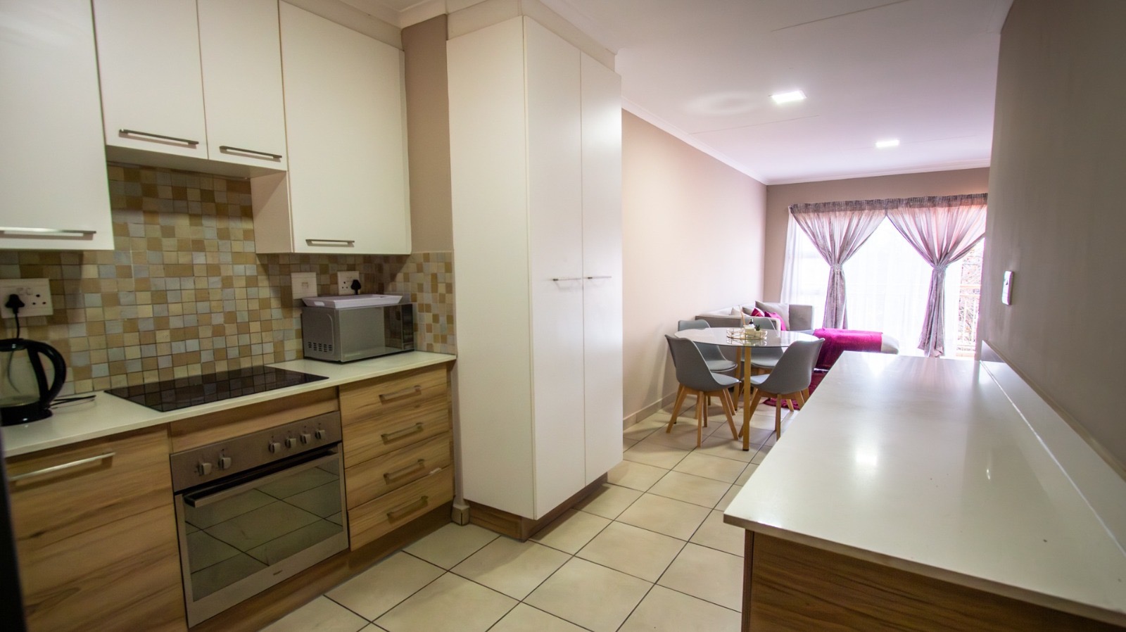 This contemporary 2-bedroom, 1-bathroom apartment offers a comfortable and stylish living experience within a secure complex in Montana, Pretoria. Spanning 94 square meters, the residence features an inviting open-plan layout that seamlessly integrates the lounge, dining area, and a modern kitchen. The interior boasts neutral-toned walls, consistent tiled flooring throughout, and recessed lighting, creating a bright and cohesive aesthetic. The well-appointed kitchen is equipped with modern cabinetry, a built-in oven, an induction hob, and a large refrigerator, providing both functionality and style. A private balcony extends the living space, perfect for relaxation. Designed for convenience and modern living, this apartment is ideal for professionals, small families, or couples seeking a lock-up-and-go lifestyle. The compact yet efficient design ensures every square meter is utilised effectively, offering a practical and easy-to-maintain home. The bright and airy bedrooms provide comfortable retreats, complemented by the modern bathroom. Security is a priority, with the property situated within a security complex featuring 24-hour security, an access gate, and burglar bars for peace of mind. Residents will also benefit from fibre-ready connectivity, ensuring high-speed internet access for work or entertainment. One dedicated parking space is included, adding to the convenience. Montana, a sought-after suburb in Pretoria, offers a blend of suburban tranquility and urban accessibility. It provides easy access to essential amenities, shopping centres, schools, and major transport routes, making it a desirable location for renters. Key Features: * Modern 2-bedroom, 1-bathroom apartment * Open-plan living, dining, and kitchen * Contemporary kitchen with built-in appliances * Private balcony * Secure complex with 24-hour security * Fibre-ready connectivity * Dedicated parking space * 94 sqm floor size