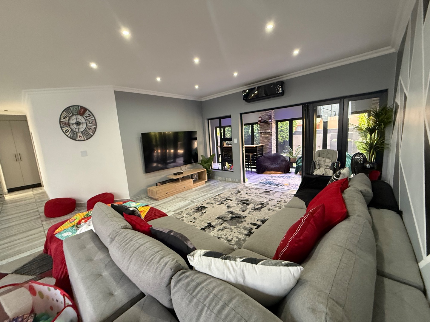 This exceptional residential rental property offers a spacious and modern living experience within the secure Rose Acres Estate in Pretoria North. Boasting a generous floor size of 320 sqm, this home features four well appointed bedrooms and three and a half bathrooms, including two en-suite facilities and a convenient guest toilet. The interior layout is designed for comfort and functionality, comprising an inviting entrance hall, a dedicated lounge, a dining room perfect for family meals. The well equipped kitchen includes a practical pantry, while a separate laundry area adds to the home's convenience. Enjoy year round comfort with air conditioning and entertain guests effortlessly with a built in bar and sliding doors that enhance the flow of living spaces.