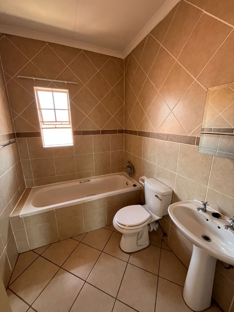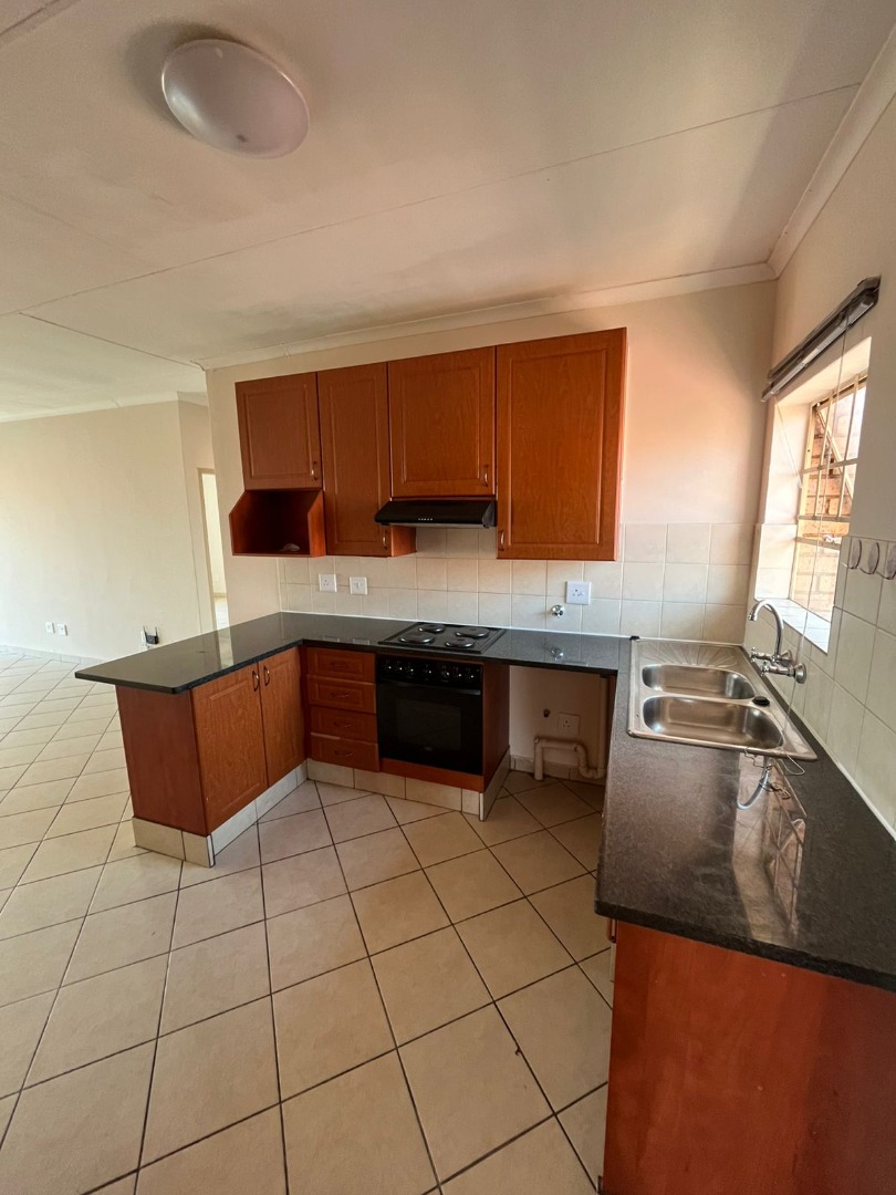 This apartment in Silver Lakes offers a comfortable and secure living experience, featuring 2 bedrooms and 2 bathrooms, including one en-suite. The interior boasts an open-plan layout, seamlessly connecting the living area to a functional U-shaped kitchen. The kitchen is equipped with wooden cabinetry, dark countertops, a double sink, and integrated hob and oven. Tiled flooring extends throughout the entire unit, complemented by neutral wall colours, providing a clean and adaptable canvas for your personal style. Both bathrooms are fully tiled, with one offering a bathtub and the other a walk-in shower.