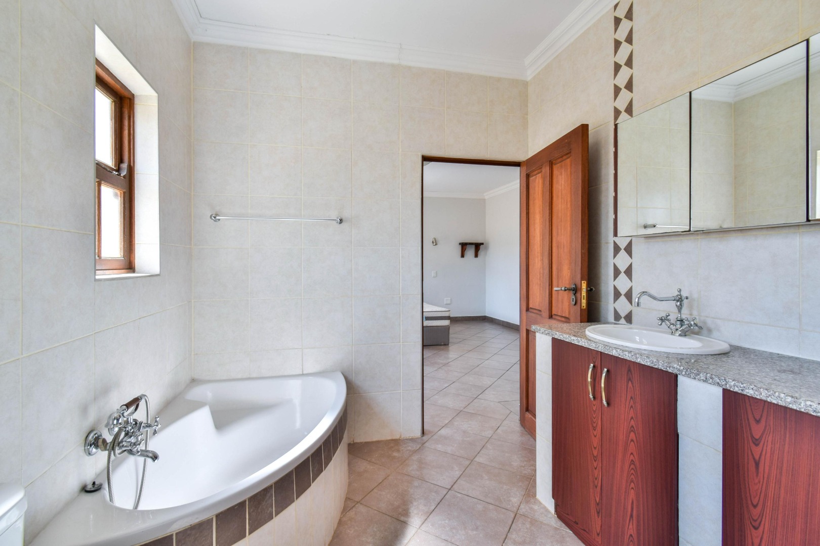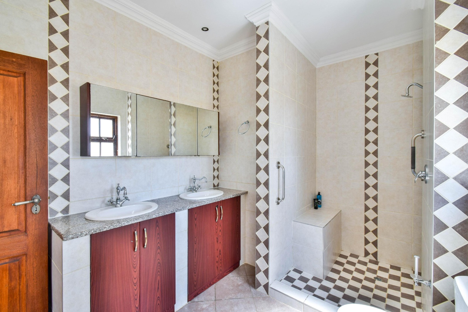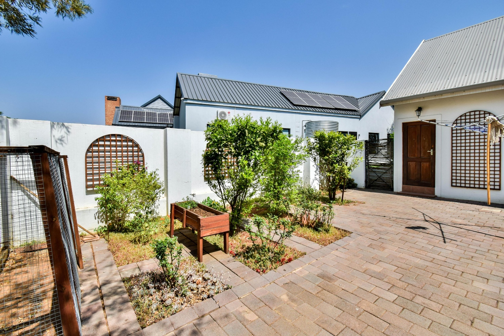 The home offers three spacious bedrooms all with en-suite bathrooms, large open-plan living areas, a big farm style kitchen fitted with a huge laundry and scullery area, an automated double garage with extra storage space, ample outside parking spaces, an enclosed courtyard with a vegetable garden, a Jojo tank and an inverter with solar panels and an outside toilet and shower area.