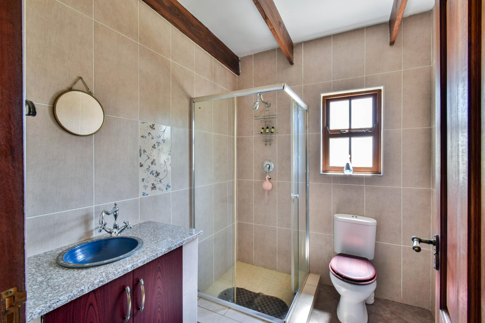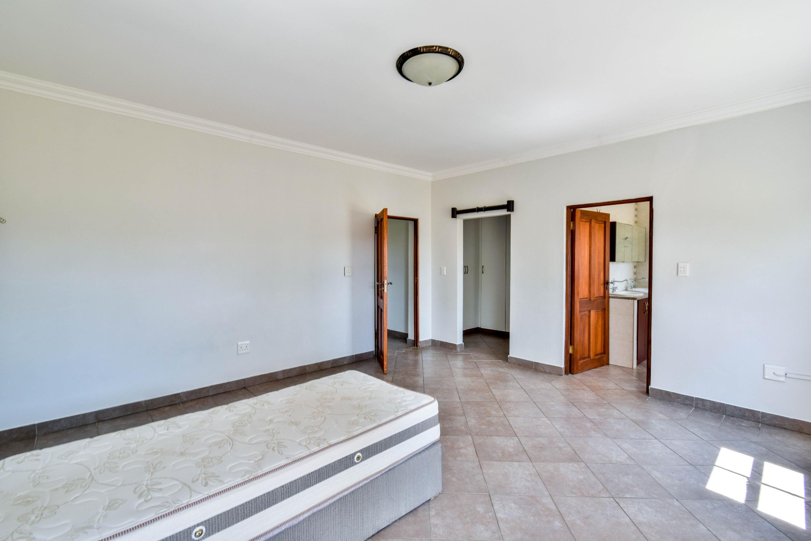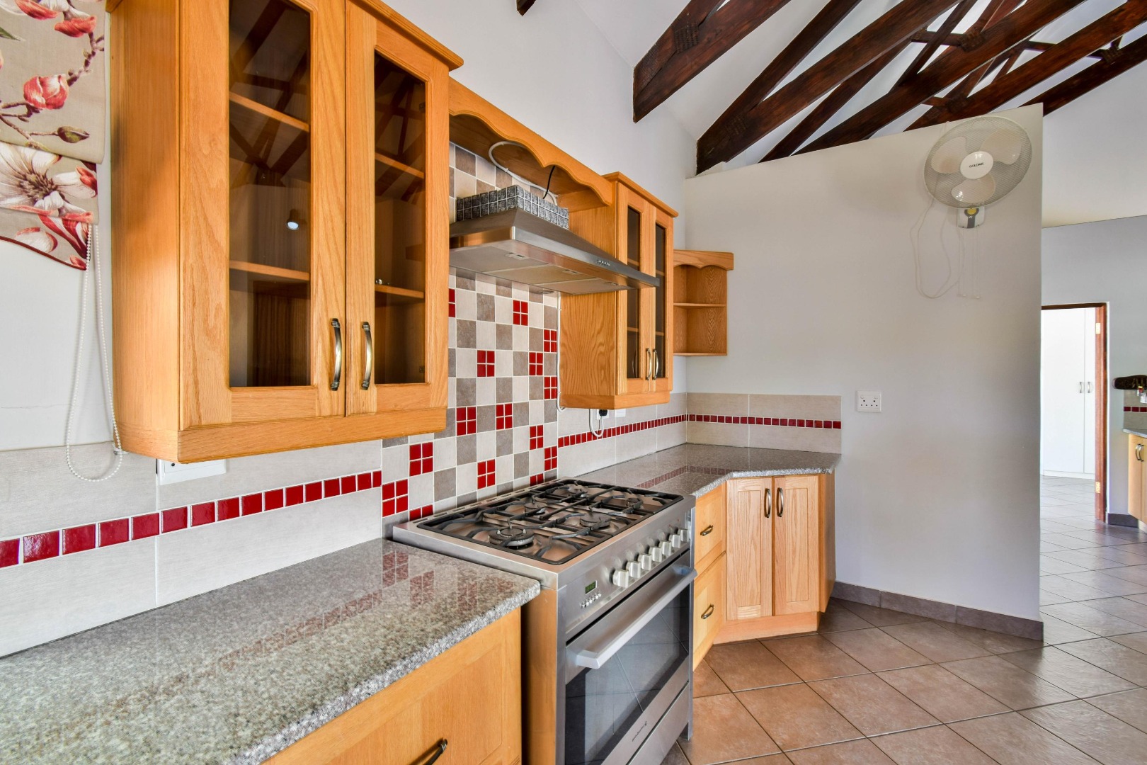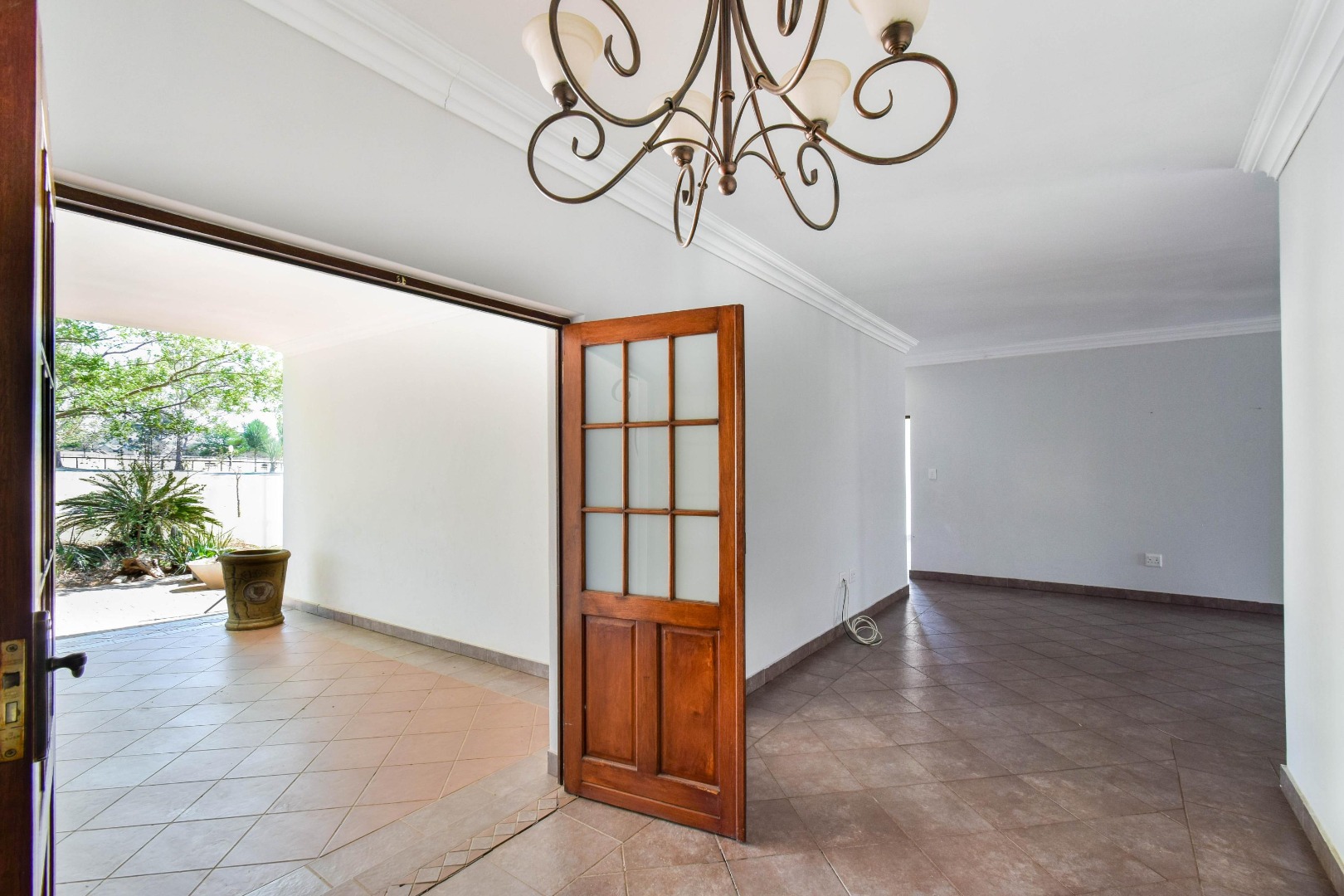 The home offers three spacious bedrooms all with en-suite bathrooms, large open-plan living areas, a big farm style kitchen fitted with a huge laundry and scullery area, an automated double garage with extra storage space, ample outside parking spaces, an enclosed courtyard with a vegetable garden, a Jojo tank and an inverter with solar panels and an outside toilet and shower area.