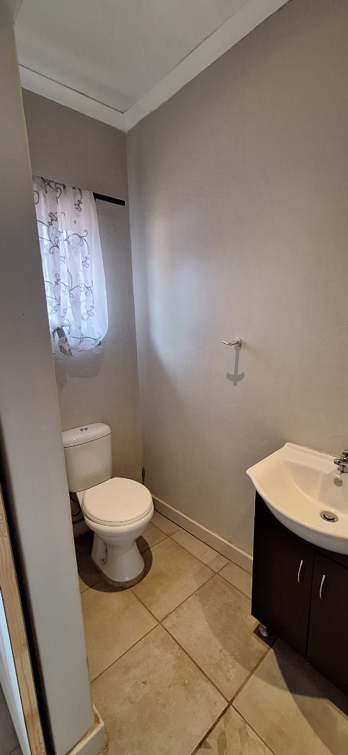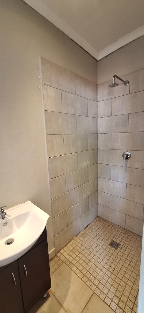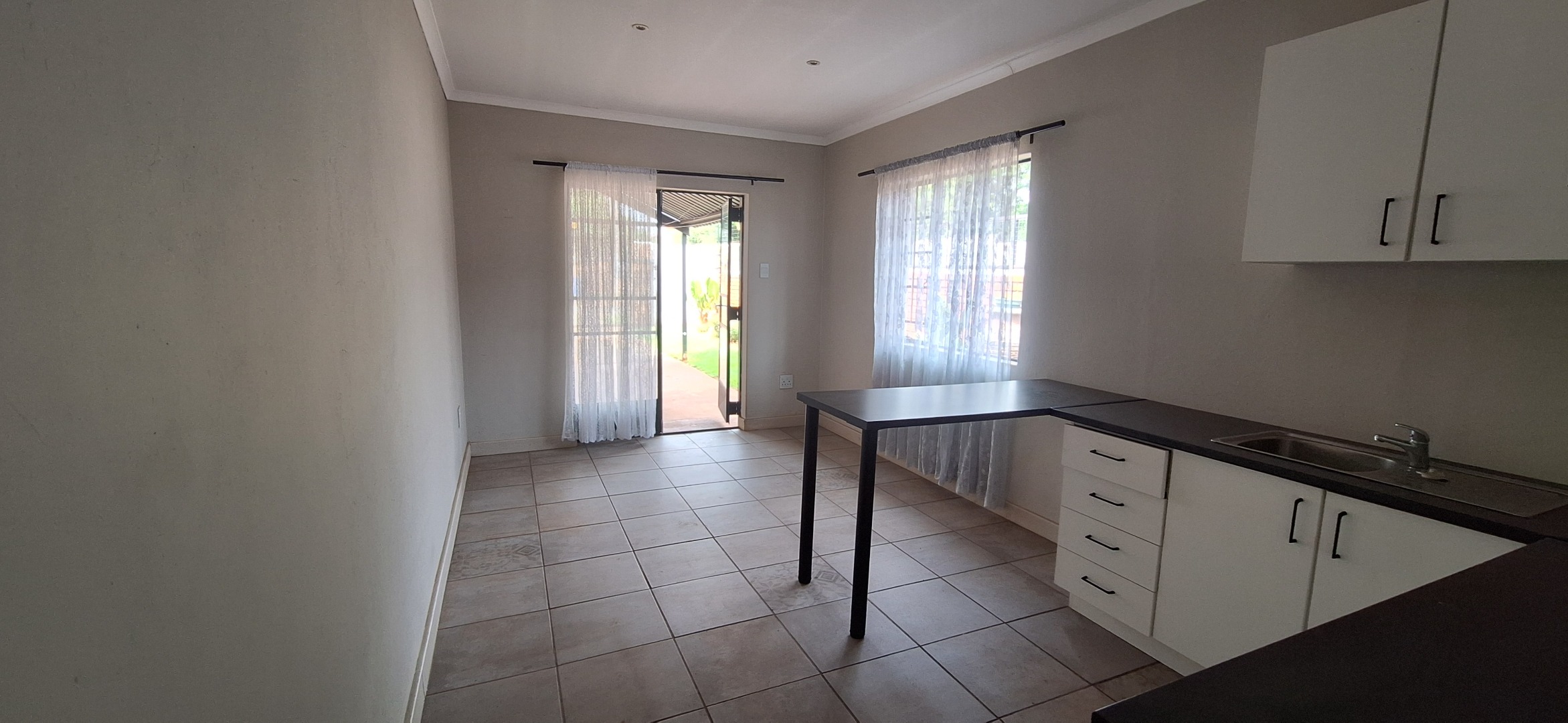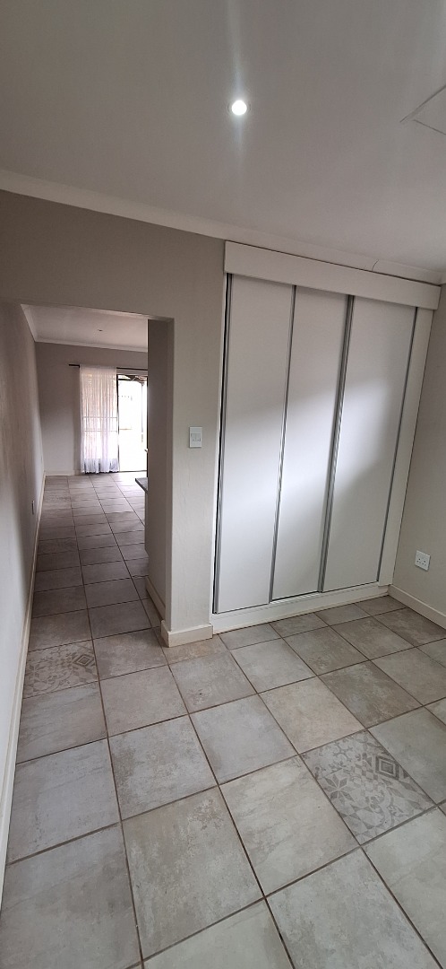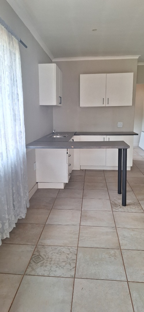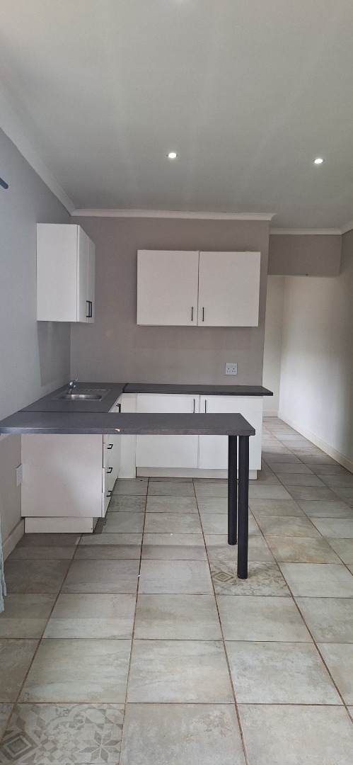 This modern 1-bedroom, 1-bathroom rental unit in Waverley, Pretoria, offers a comfortable and secure living space. The open-plan layout seamlessly integrates the lounge and a compact, functional kitchen. The kitchen features contemporary white cabinetry, dark countertops, an integrated sink, and a convenient breakfast bar, ideal for dining or a workspace. Tiled flooring throughout ensures easy maintenance, while large windows and a sliding door provide natural light and direct access to a private outdoor area. The bedroom is complemented by an ensuite bathroom, fitted with modern fixtures, a vanity sink, and a tiled shower.