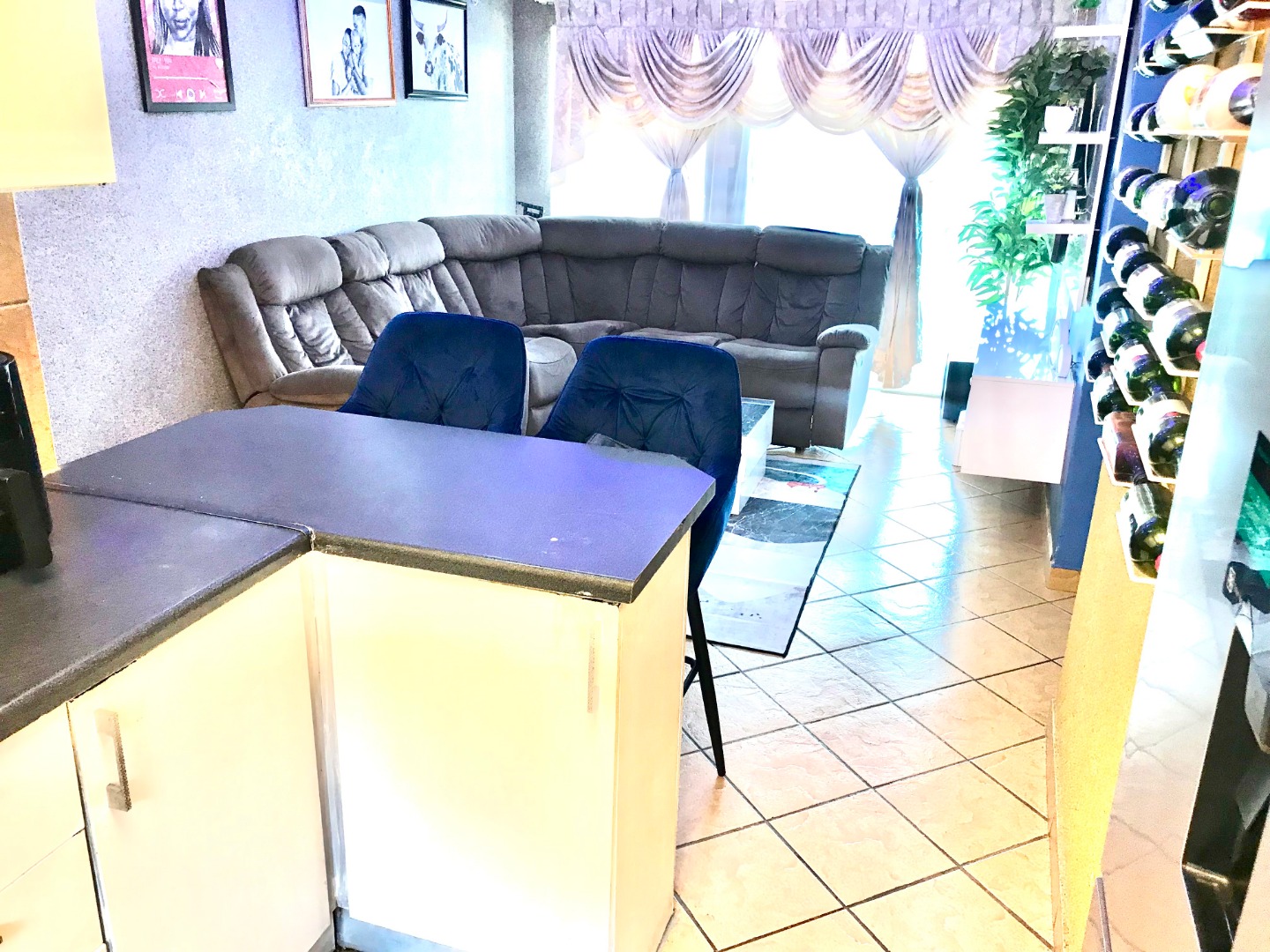 Open plan kitchen,Fitted with modern cupboards ,Lounge with exclusive finishing ,New Cealing