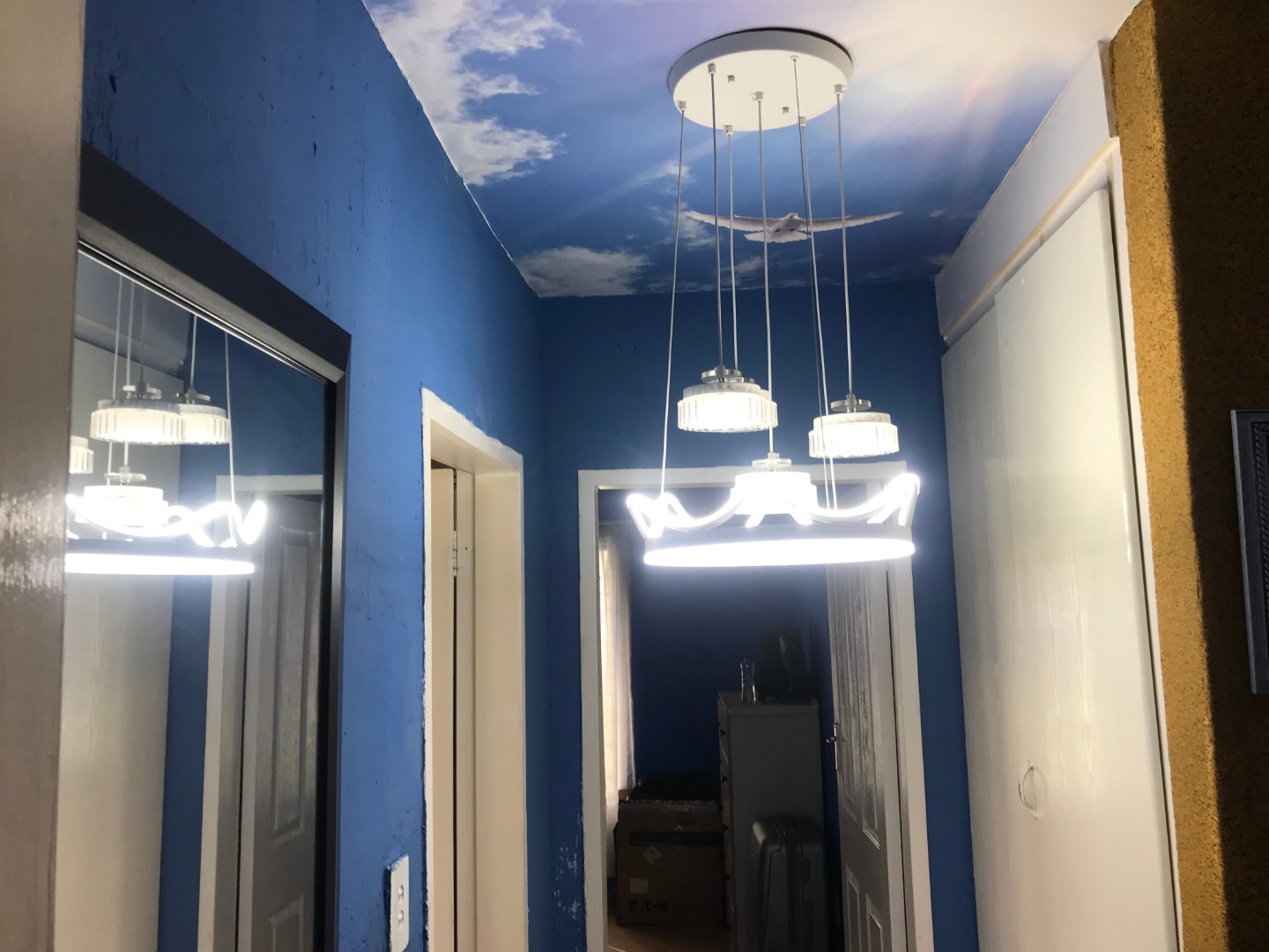 and walls designed and modern Lights to compliments all the renovations , Full bathroom with