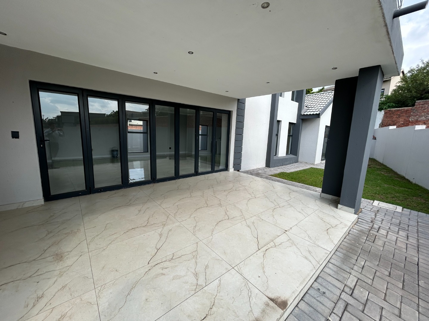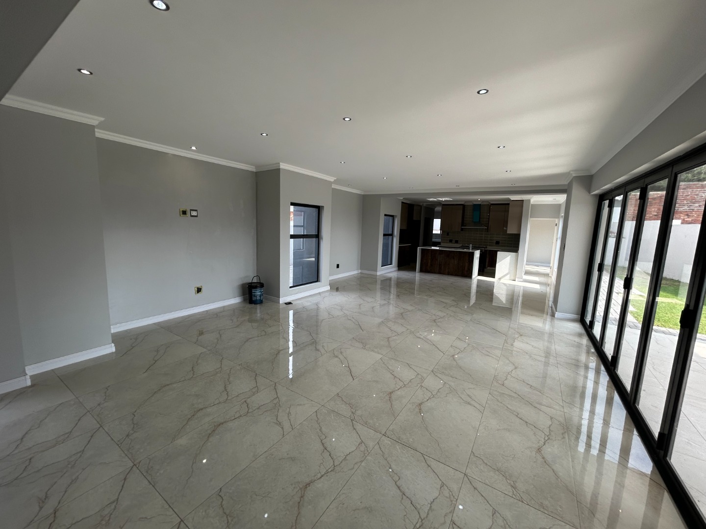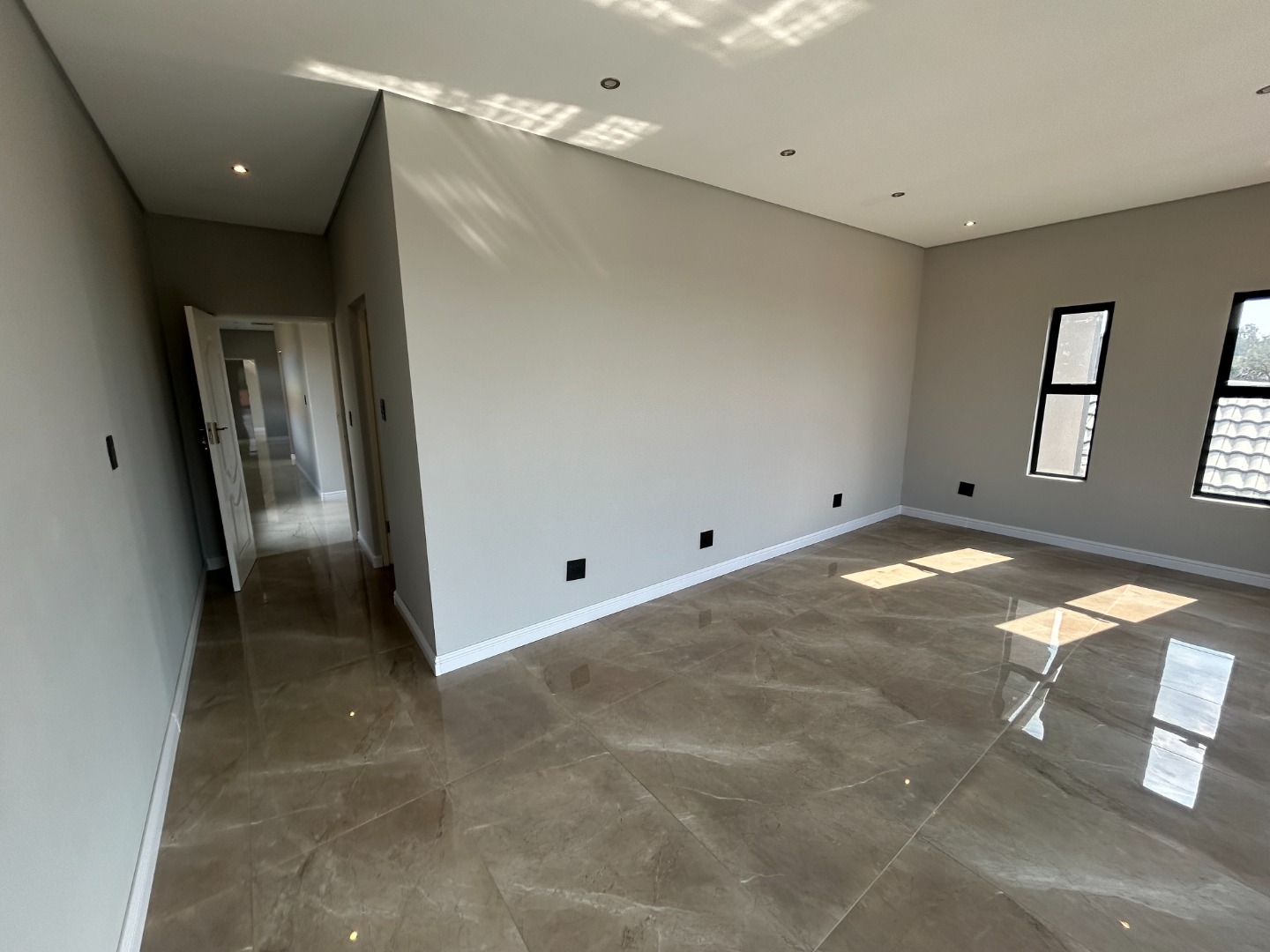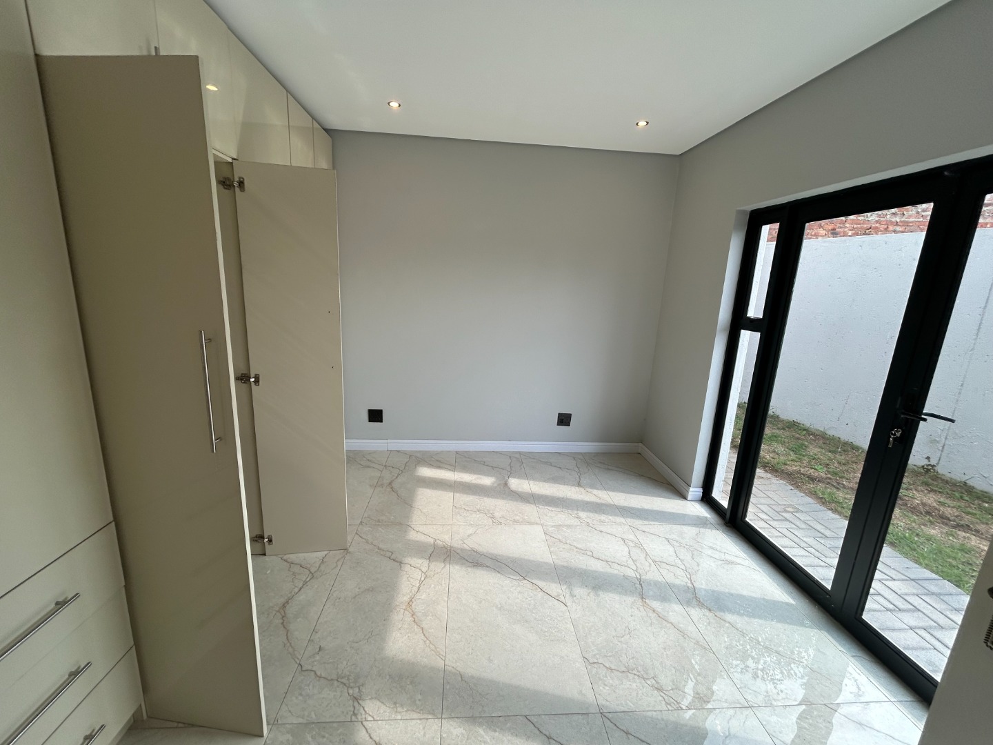 The modern kitchen serves as the heart of the home, featuring sleek finishes and seamless flow into the open-plan living spaces. A built-in braai extends the entertainment lifestyle, allowing for both indoor and outdoor gatherings. Adding to its unique appeal, the home also includes a dedicated prayer or study room, creating a quiet sanctuary for reflection or productivity.