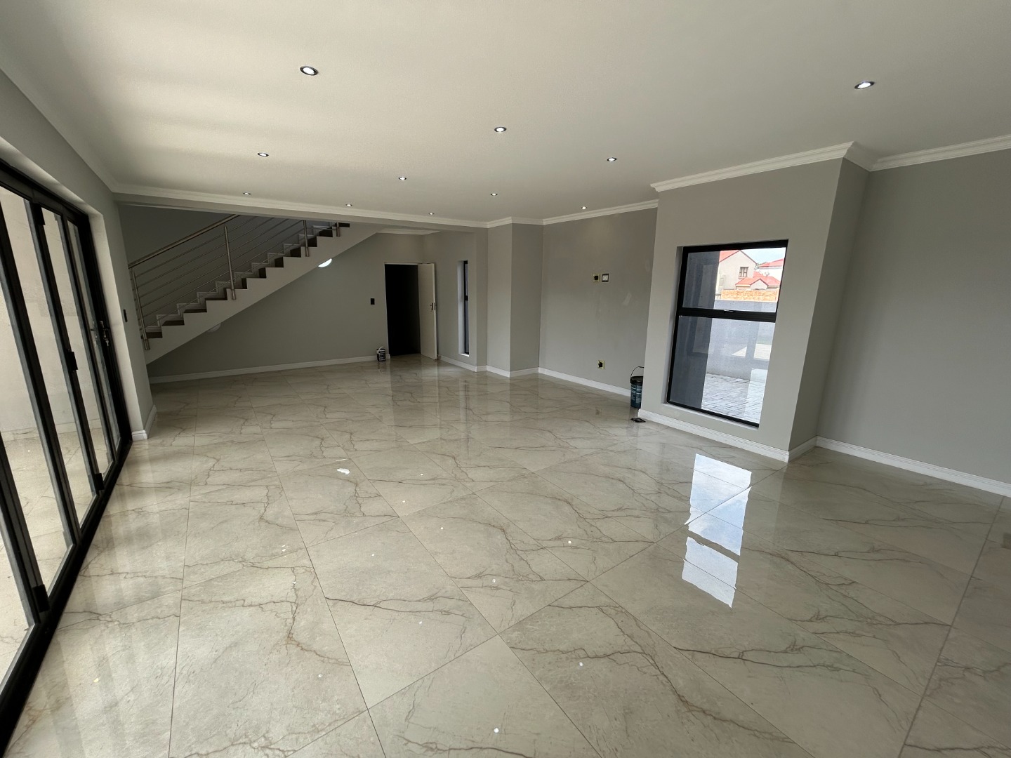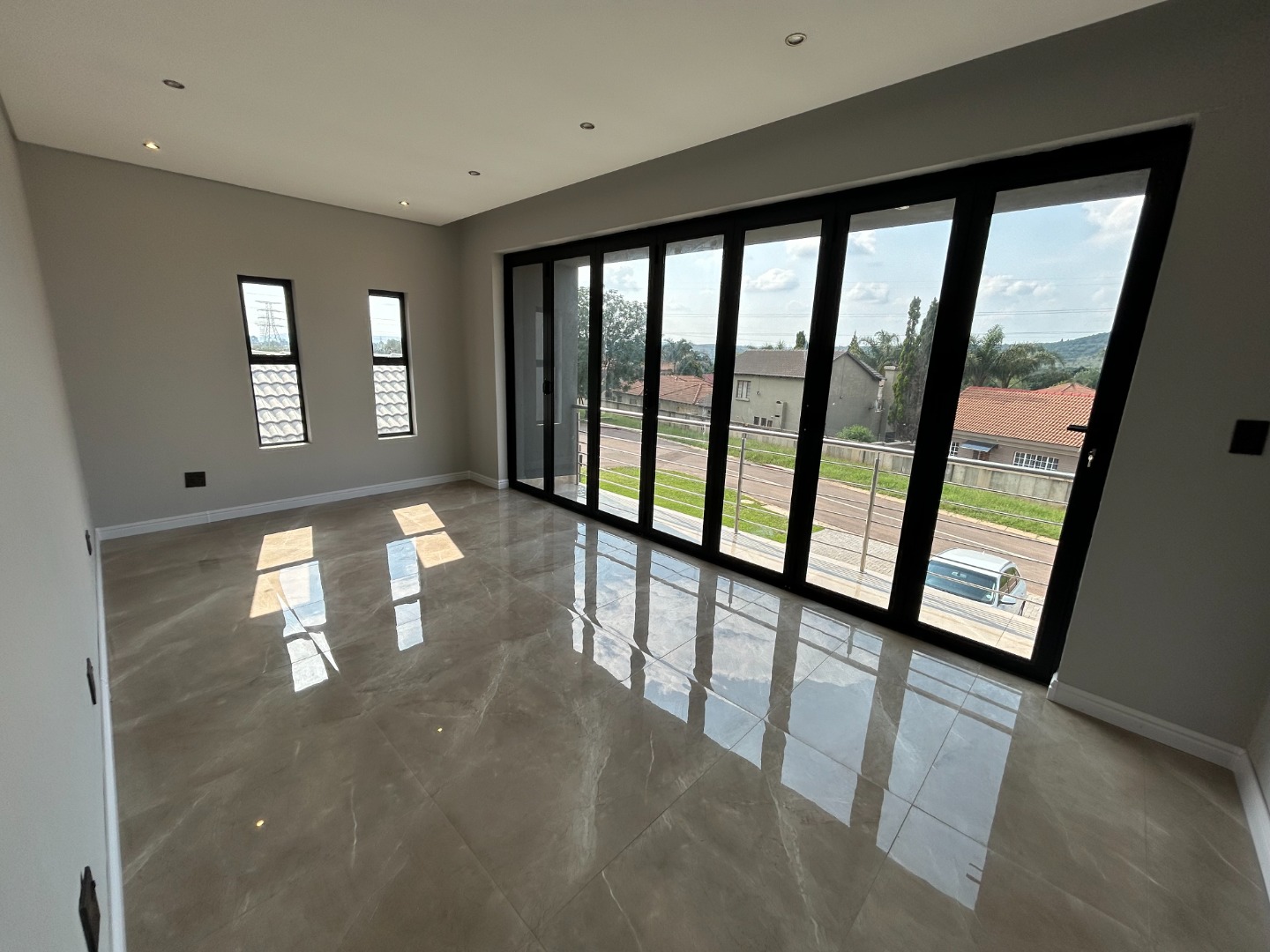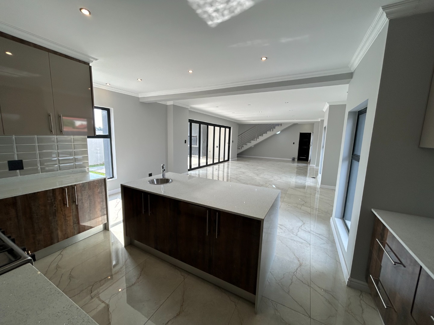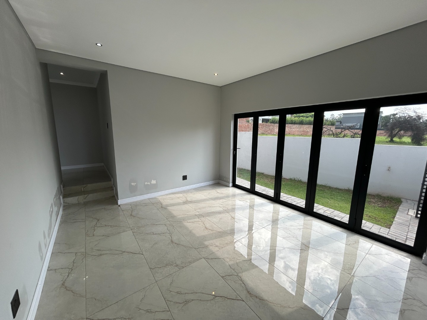 The modern kitchen serves as the heart of the home, featuring sleek finishes and seamless flow into the open-plan living spaces. A built-in braai extends the entertainment lifestyle, allowing for both indoor and outdoor gatherings. Adding to its unique appeal, the home also includes a dedicated prayer or study room, creating a quiet sanctuary for reflection or productivity.