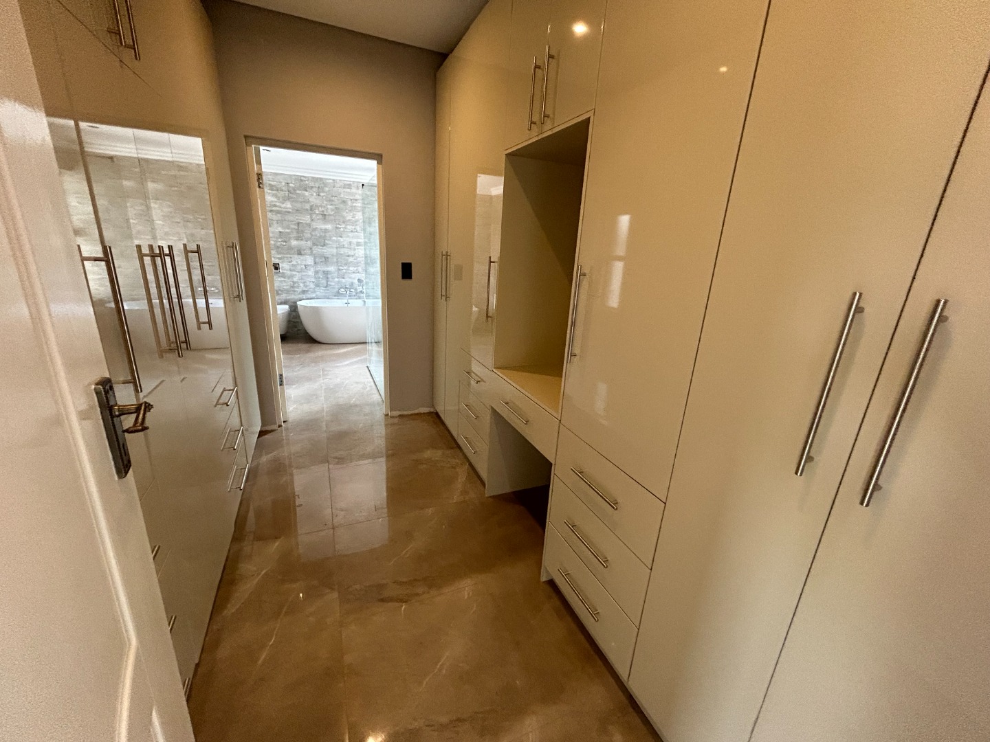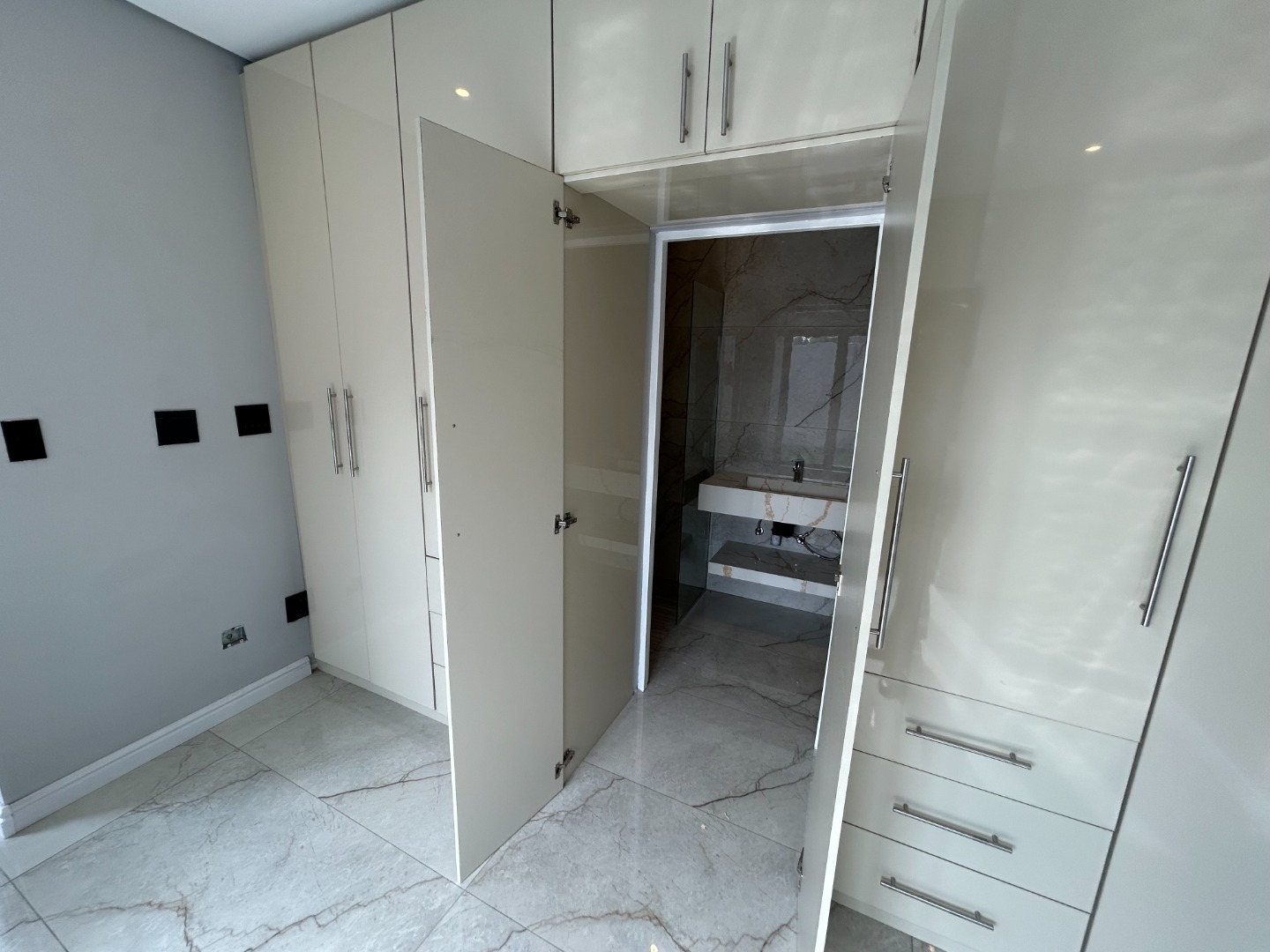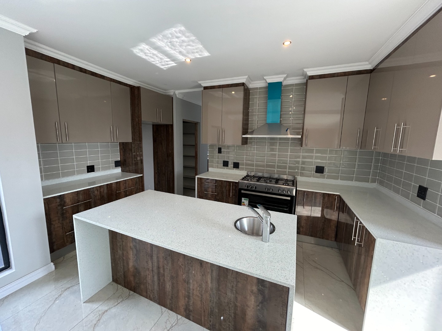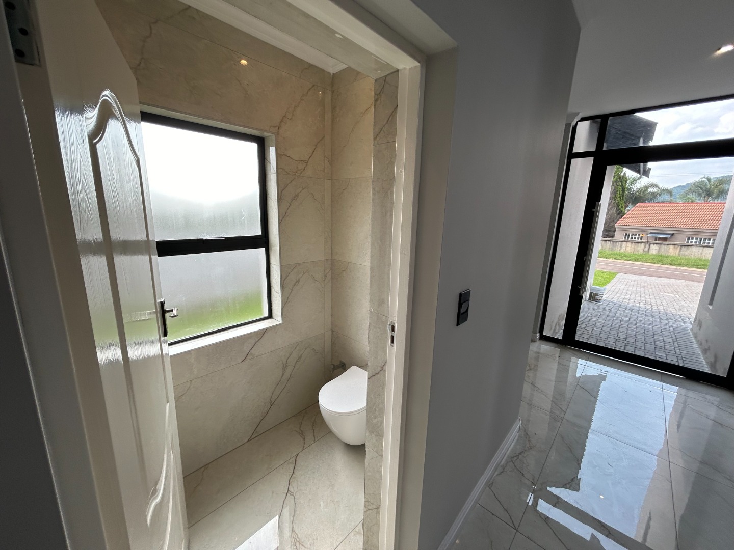 The modern kitchen serves as the heart of the home, featuring sleek finishes and seamless flow into the open-plan living spaces. A built-in braai extends the entertainment lifestyle, allowing for both indoor and outdoor gatherings. Adding to its unique appeal, the home also includes a dedicated prayer or study room, creating a quiet sanctuary for reflection or productivity.