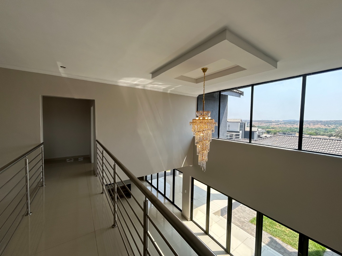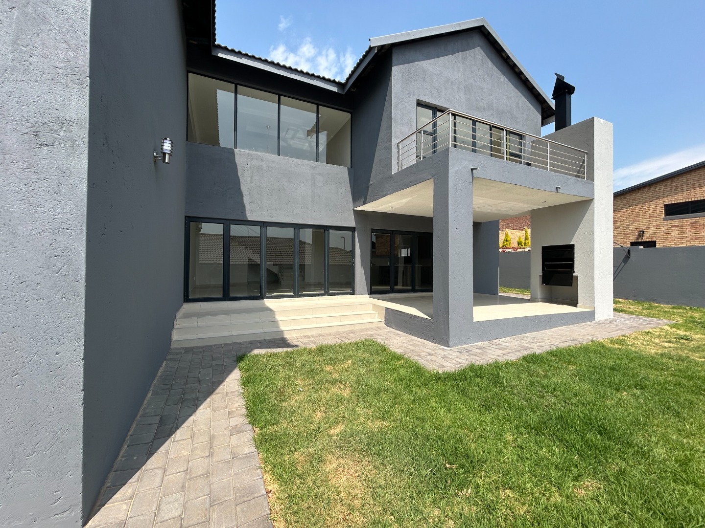 The property boasts multiple balconies, ideal for enjoying fresh air and estate views, while a built-in braai sets the tone for effortless entertainment. Three garages provide ample parking and storage, and the inclusion of a domestic room adds to the home’s functionality.