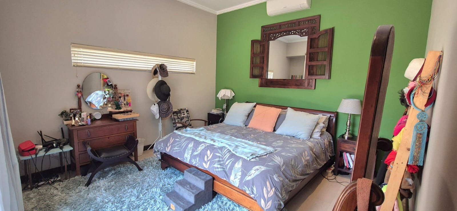 Down the hallway, you will find the guest bathroom, which also serves the guest bedroom. The spacious main bedroom is privately positioned and connects to the en-suite bathroom via a dressing room. Two additional bedrooms share a third full bathroom.