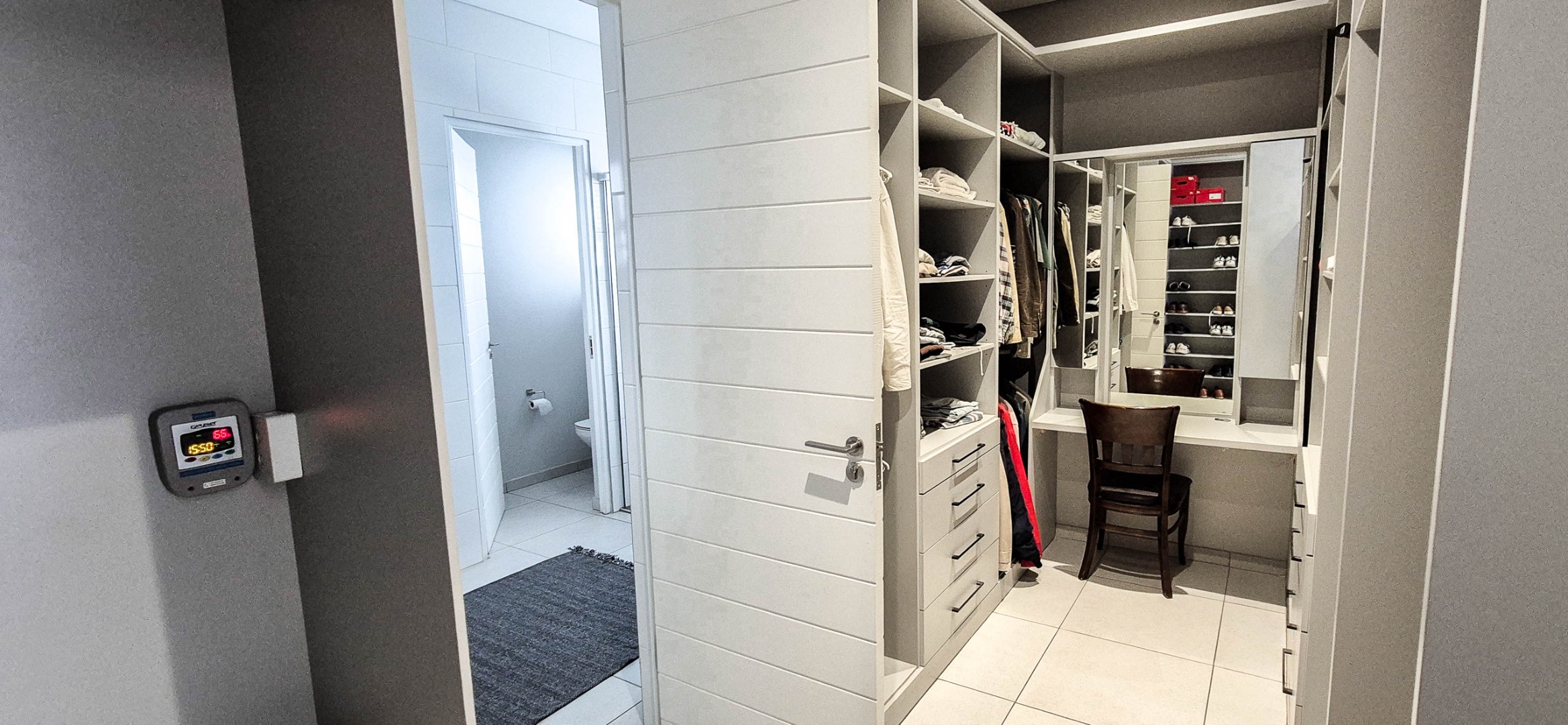 Upon entering, you’re welcomed by a stylish yet cosy interior. To the left, a guest bathroom with shower; to the right, a separate lounge leading to two generously sized bedrooms and a full bathroom.