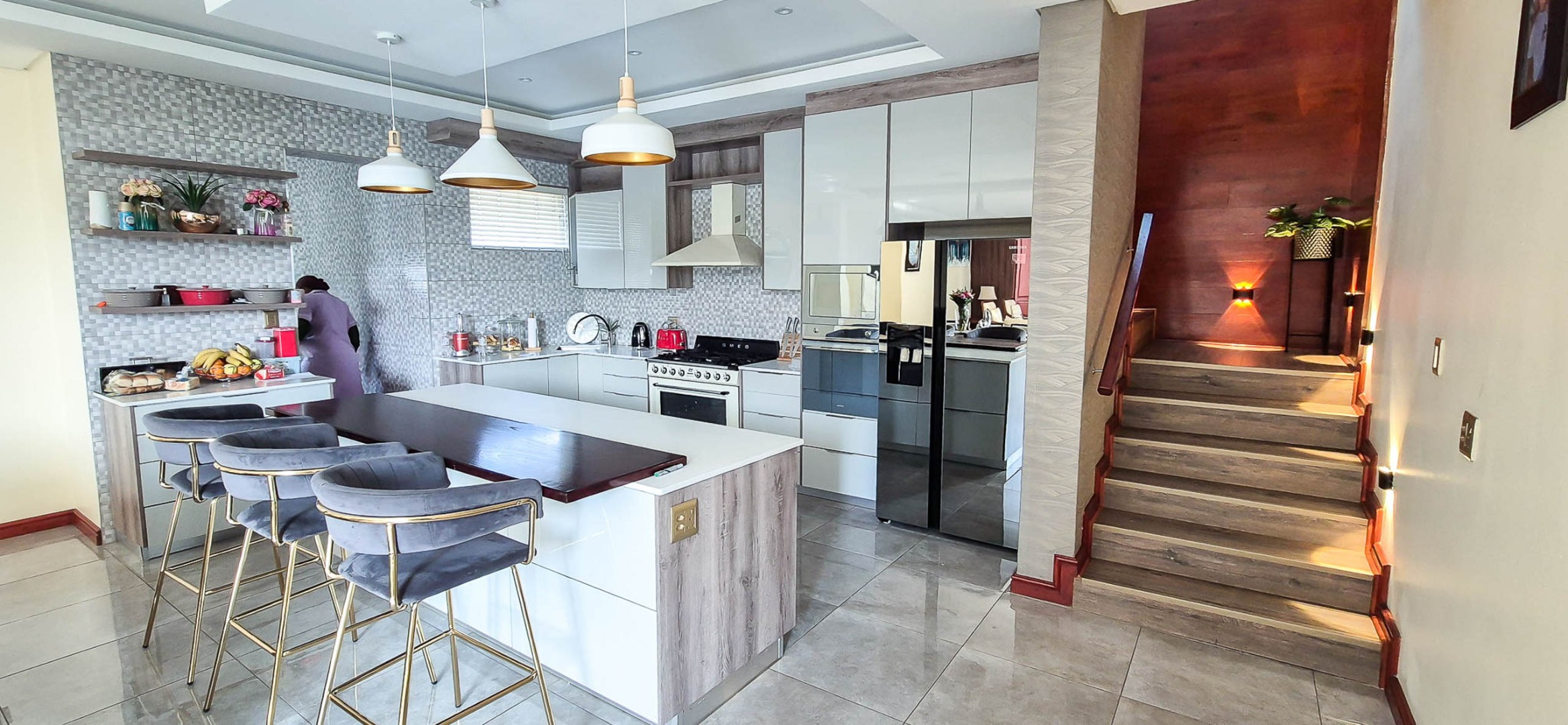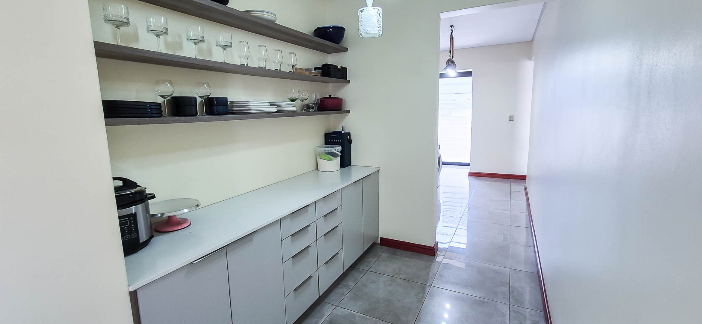 To your right, a stylish study and another inviting living space connect to the modern kitchen, where family moments unfold. The scullery of dreams offers a dedicated dishwashing area and a separate laundry room for effortless organisation.