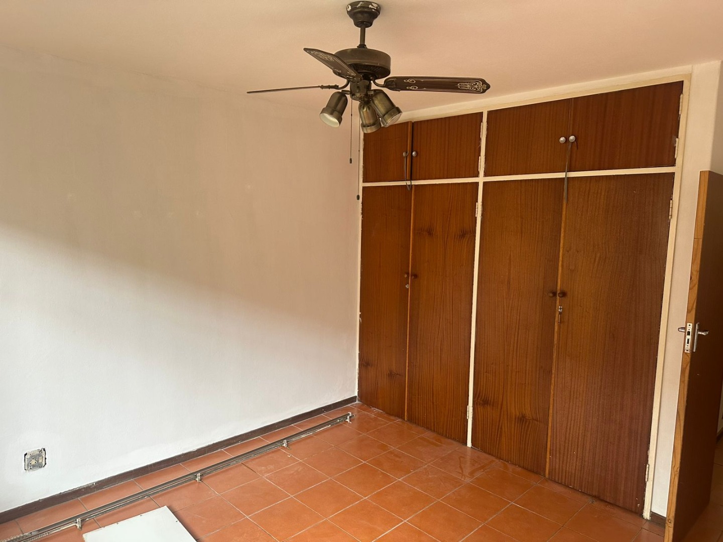 The main bedroom overlooks the garden and has a whole wall full of cupboard space.