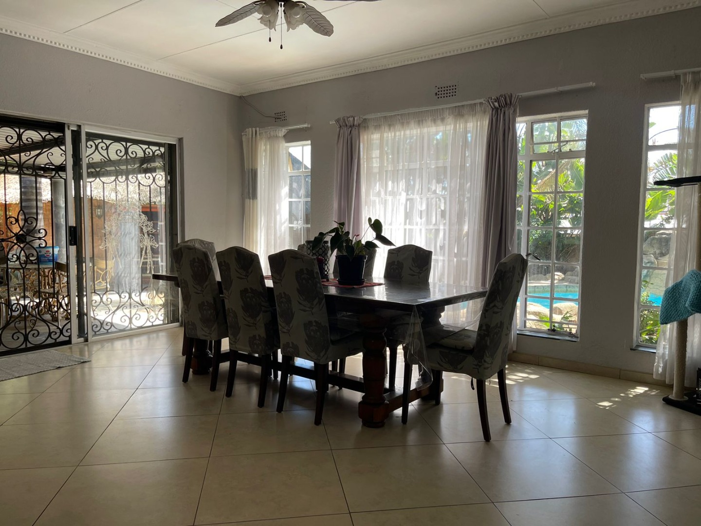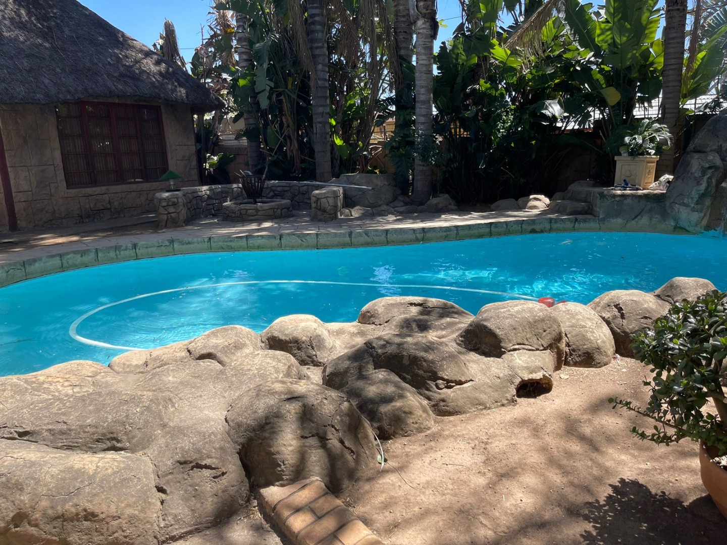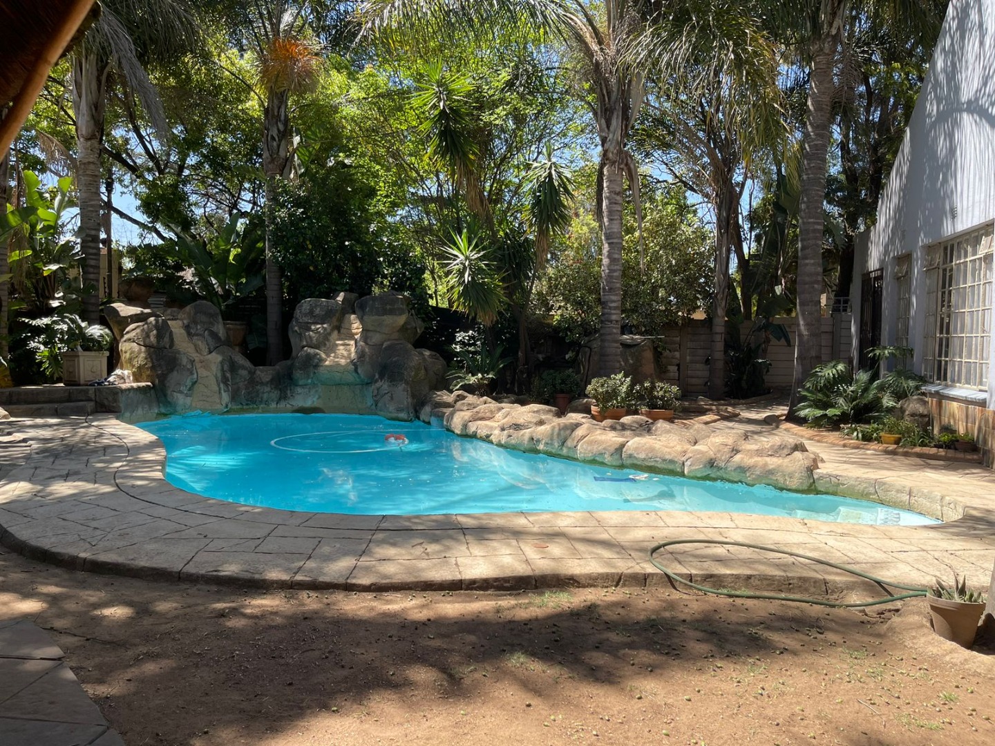 Welcome to this inviting home in Glen Marais, Kempton Park! You'll love the fantastic curb appeal, featuring a spacious paved driveway, mature trees, and attractive stone-clad walls. With a double garage and multiple carports, there's ample covered parking for everyone. Plus, with an access gate, security gate, and 24-hour security in this gated community, you can enjoy true peace of mind. Step inside to a comfortable, open-plan layout. The home boasts an entrance hall, a cozy lounge, a separate dining room, and a well-equipped kitchen with a pantry and laundry area. A dedicated family TV room and a study provide versatile spaces. With four bedrooms and two bathrooms, including a private en-suite, there's room for the whole family. Air conditioning ensures year-round comfort. The outdoor area is a real gem, perfect for entertaining or just chilling out. Dive into the large swimming pool with its cool rock features and waterfall, or host a braai under the thatch-roofed lapa with a fire pit. The covered patio is ideal for unwinding, and the lush, pet-friendly garden even has a Wendy house. A separate flatlet offers versatile extra space for guests or a home office! Located in the family-friendly suburb of Glen Marais, Kempton Park, this home offers convenient access to amenities. Enjoy modern living with fibre connectivity and wheelchair-friendly access throughout. Key Features: * 4 Bedrooms, 2 Bathrooms (1 en-suite) * Double Garage & Multiple Carports * Large Swimming Pool with Rock Features * Thatch-roofed Lapa & Fire Pit * Covered Patio & Pet-Friendly Garden * Separate Flatlet * Study & Family TV Room * Open-Plan Living with Aircon * 24-Hour Security in Gated Community * Fibre Ready & Wheelchair Friendly