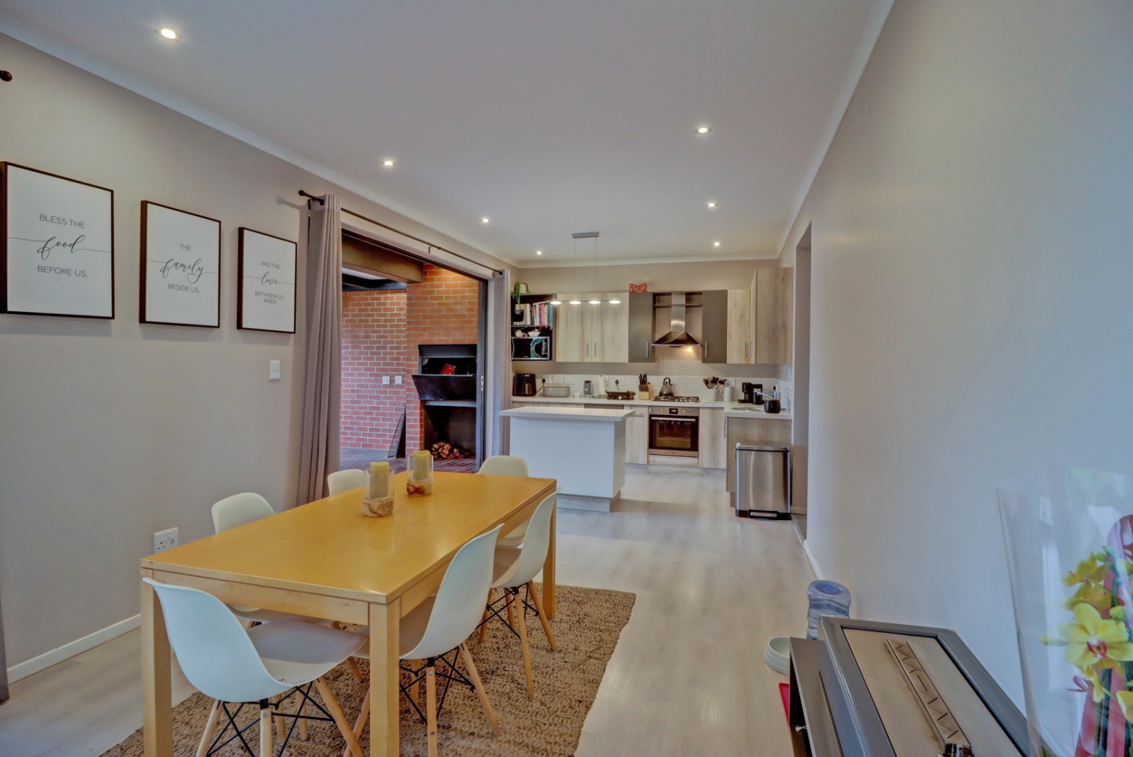 Large stacking and sliding doors lead to a generous under-roof veranda with a built-in braai, creating a perfect setting for both indoor and outdoor entertainment.