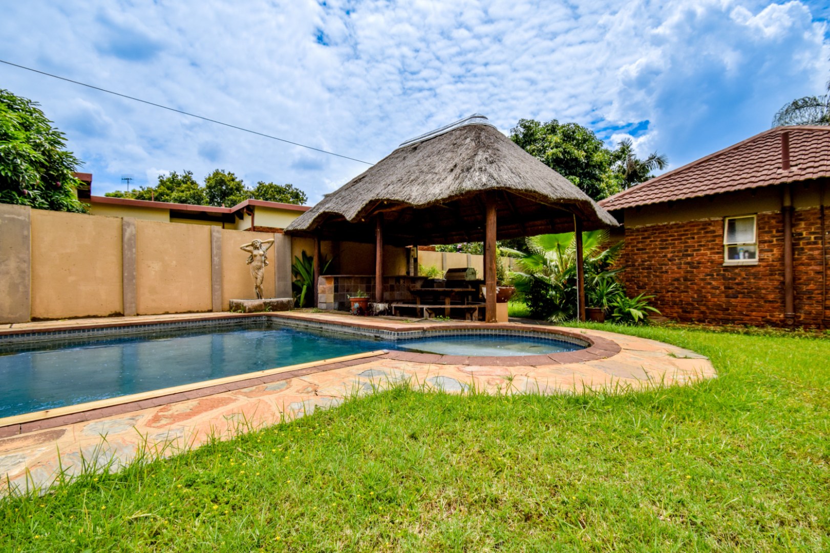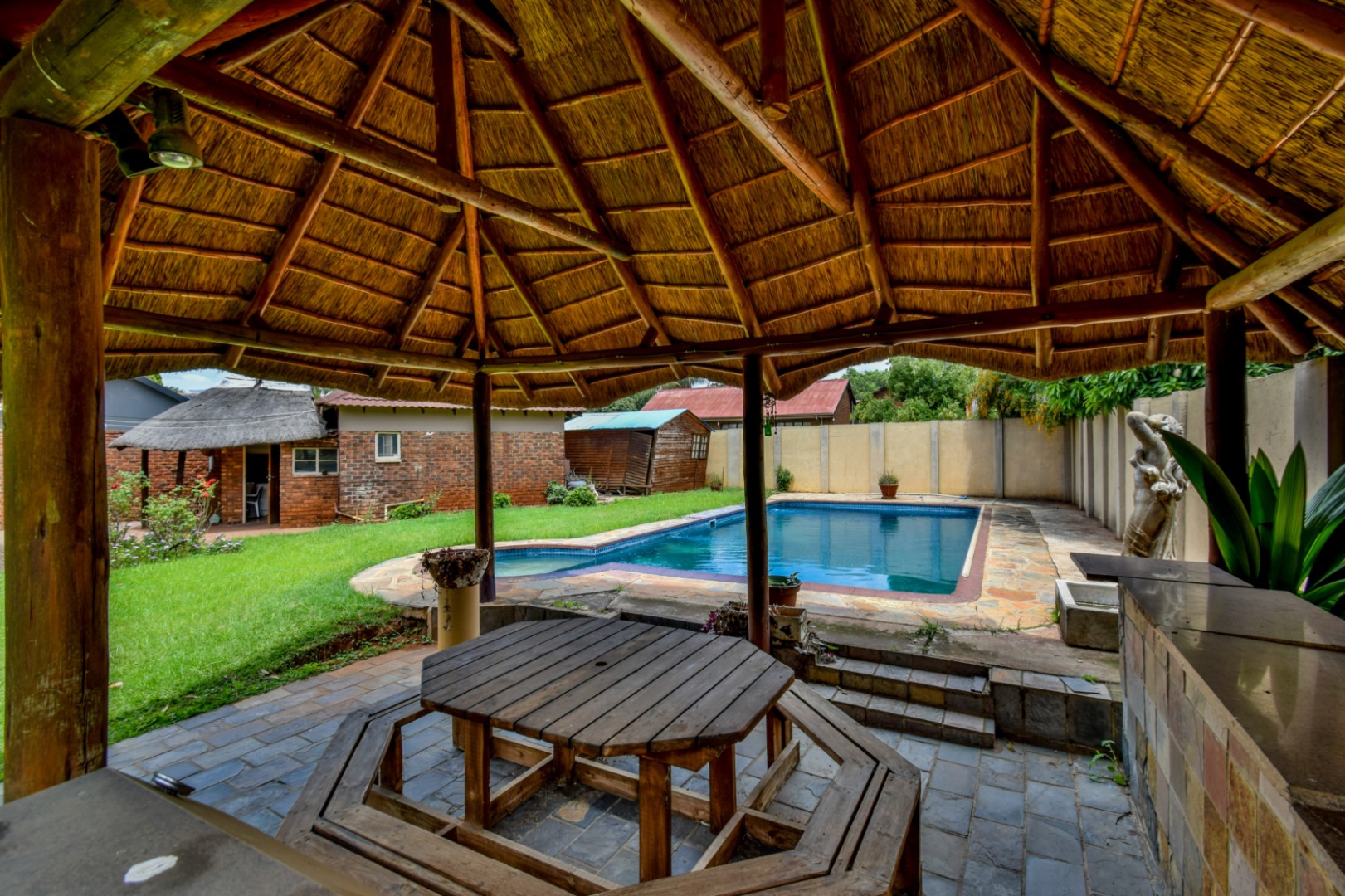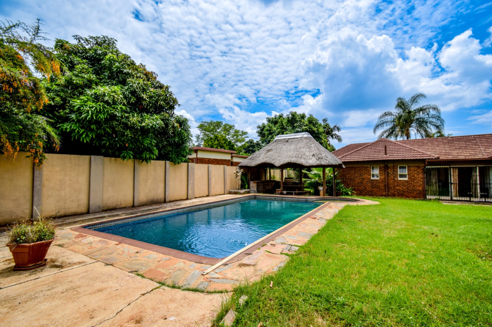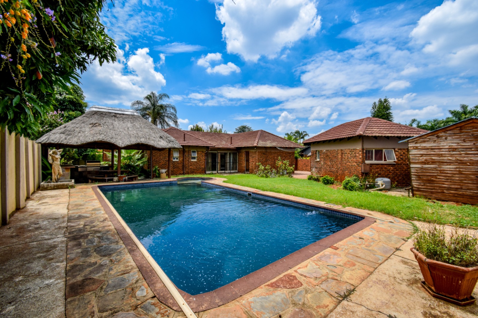 The heart of the home flows effortlessly into spacious living areas designed for family gatherings and entertaining. Outside, a huge swimming pool creates the perfect setting for summer relaxation, weekend braais, and children’s activities, while the expansive yard offers plenty of room for pets and outdoor enjoyment.
