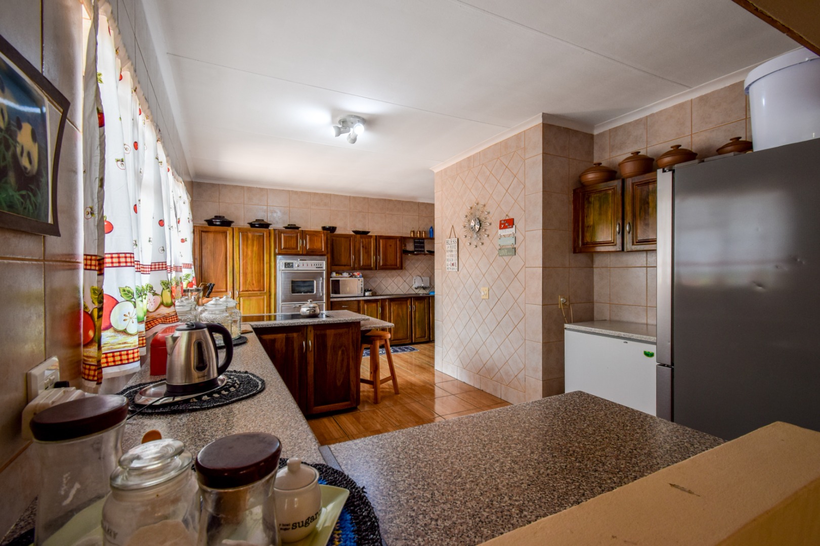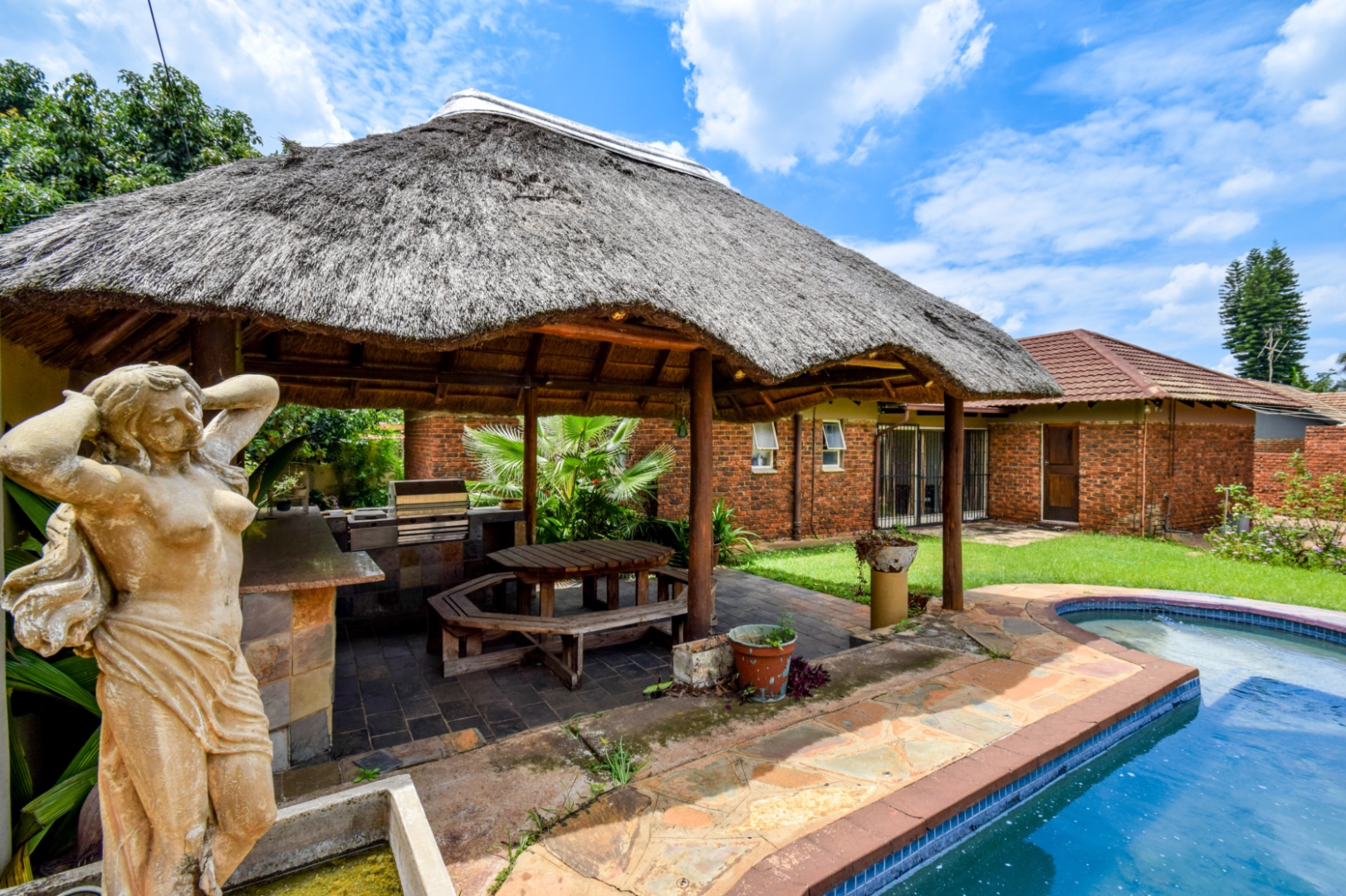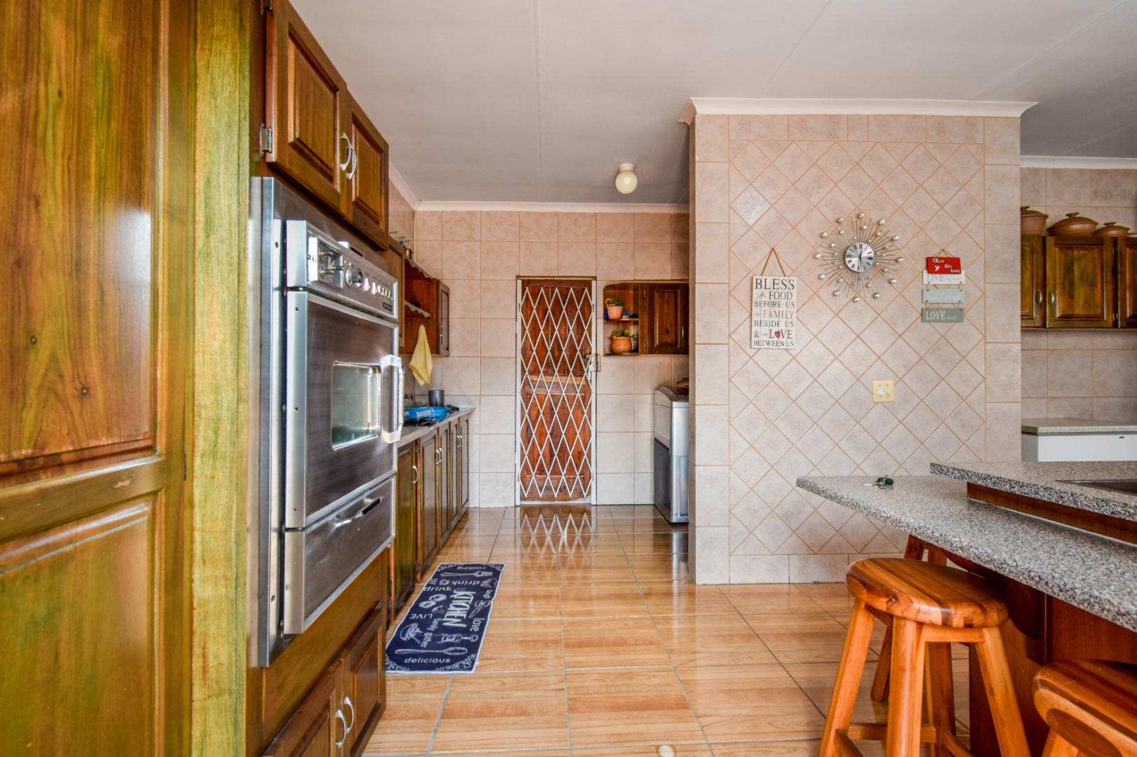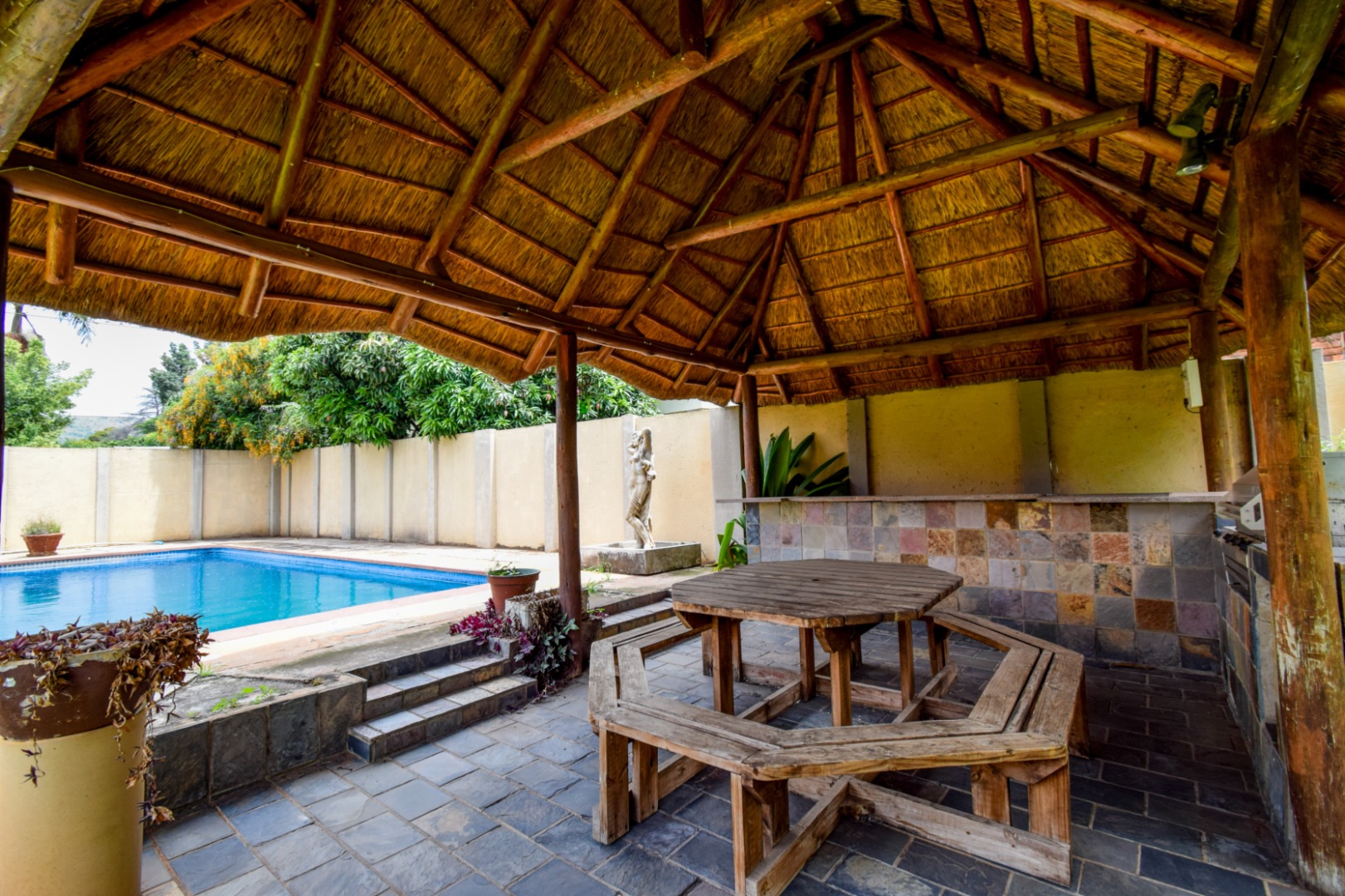 The heart of the home flows effortlessly into spacious living areas designed for family gatherings and entertaining. Outside, a huge swimming pool creates the perfect setting for summer relaxation, weekend braais, and children’s activities, while the expansive yard offers plenty of room for pets and outdoor enjoyment.