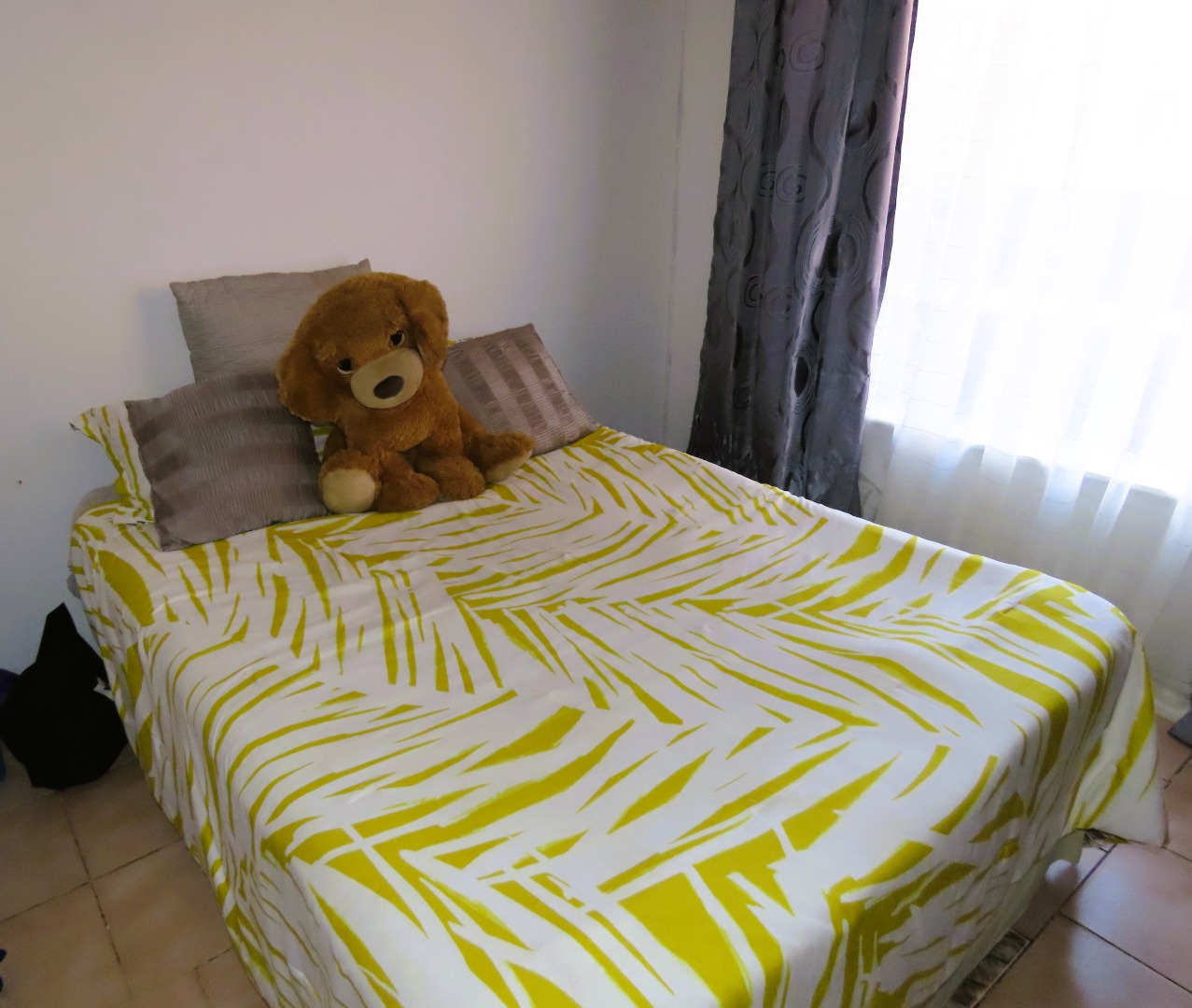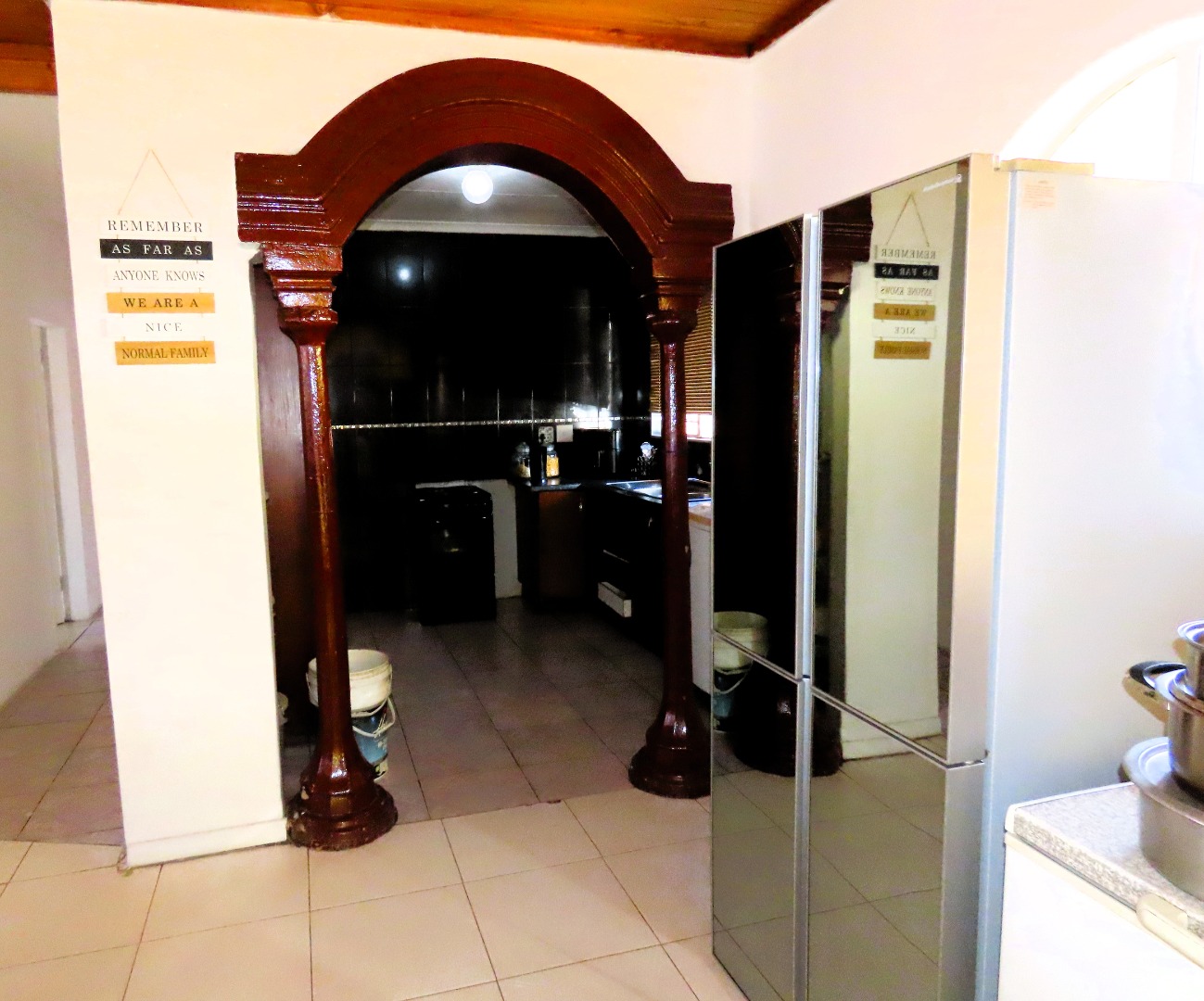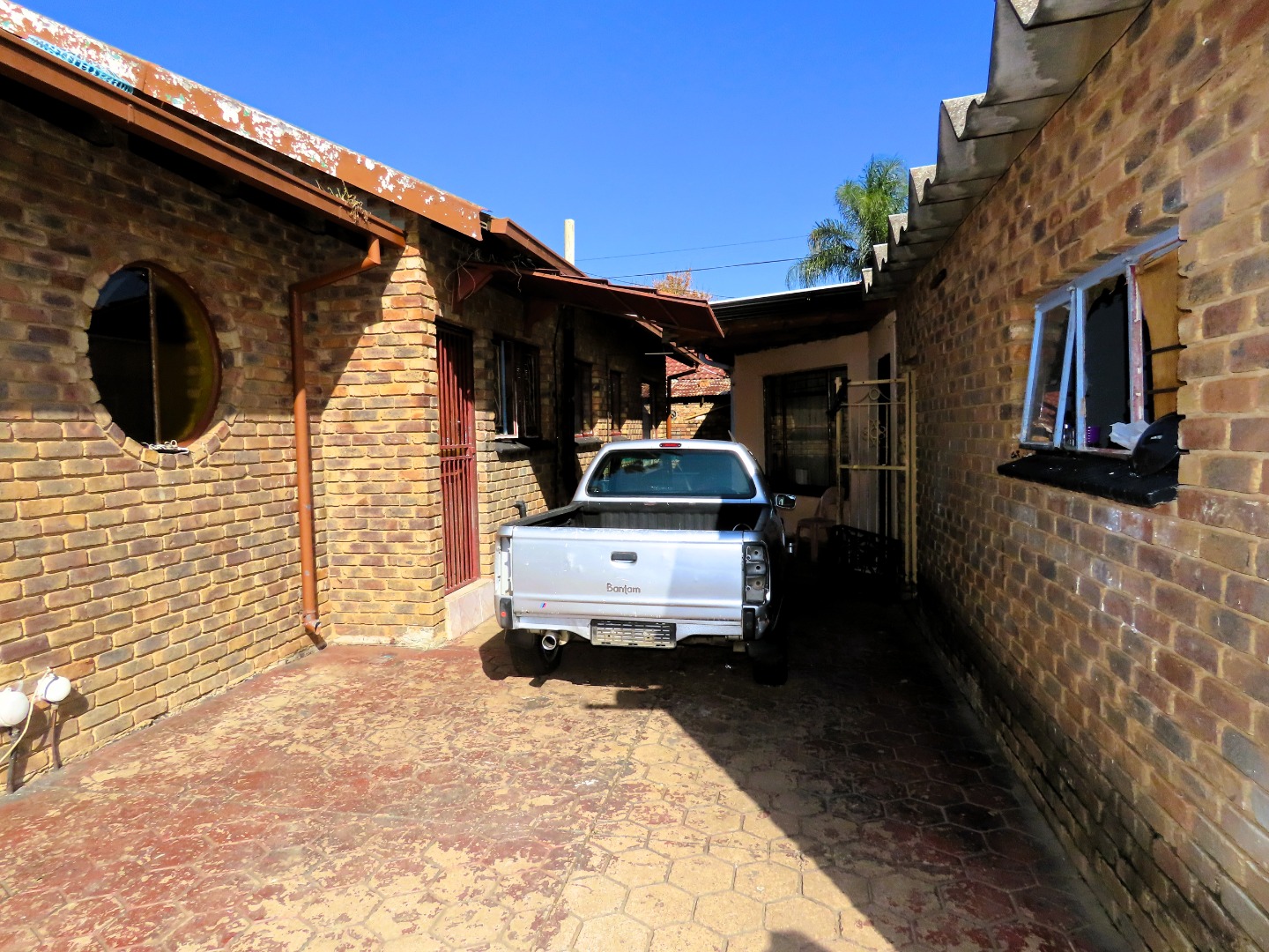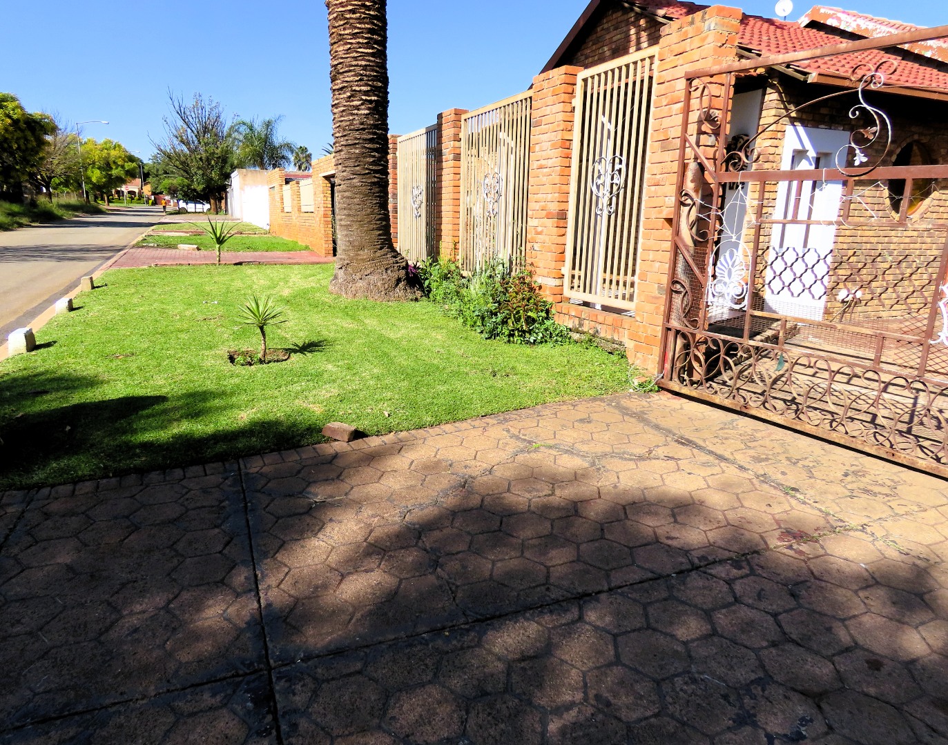Externally, the property boasts strong kerb appeal with a well-maintained front lawn, established landscaping, and a mature palm tree. Security is a key feature, with high perimeter walls, security gates, and window burglar bars providing peace of mind. A paved driveway leads to a single garage, complemented by two additional parking spaces. The property is pet-friendly and fully walled, enhancing privacy and security.