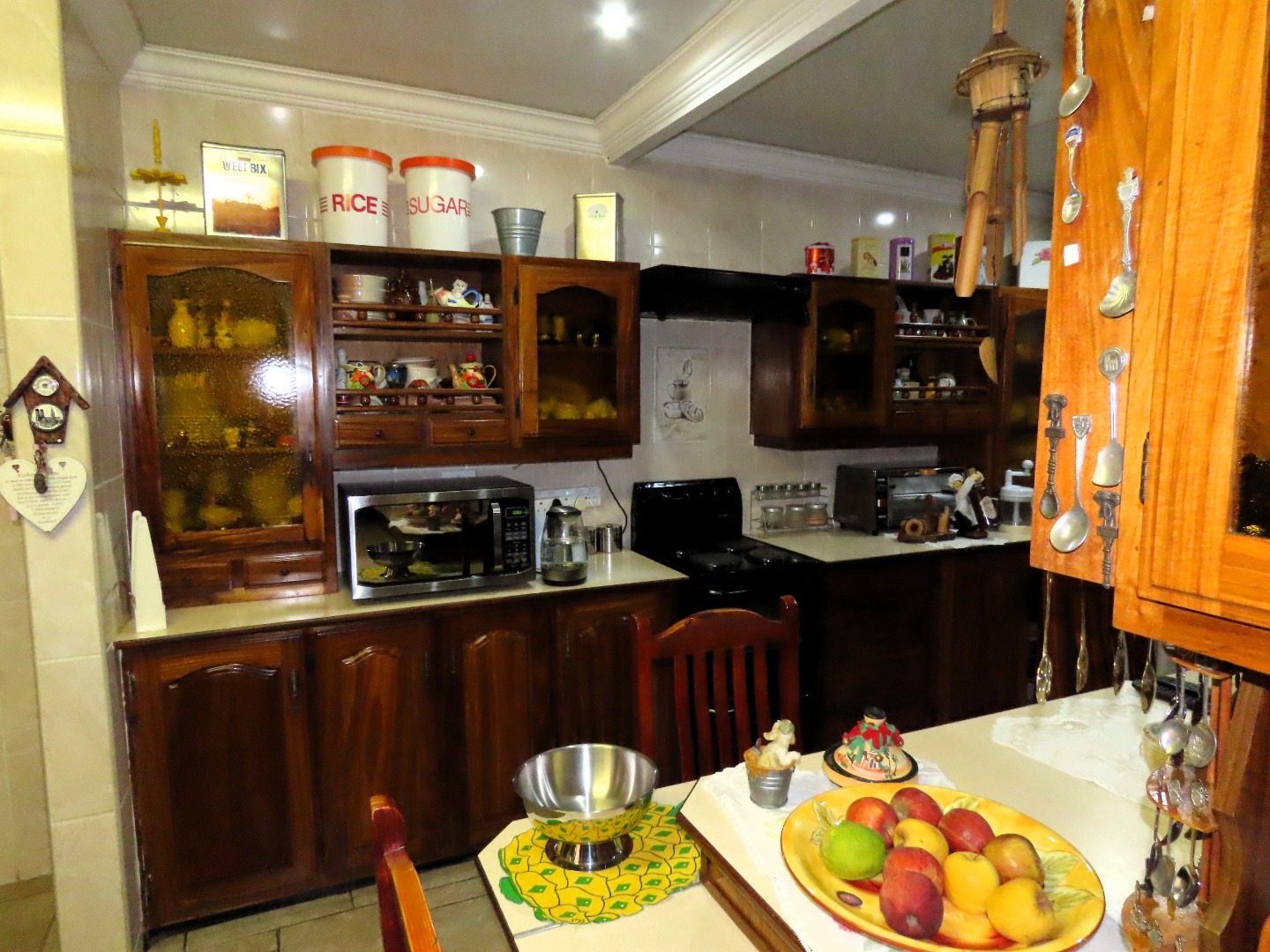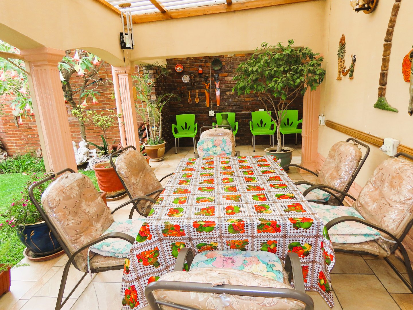 Outdoors, the property features a private garden, a patio for outdoor enjoyment, and a paved driveway leading to two garages, as well as a covered carport with a garage door entrance, providing secure parking. The entire property is totally walled for enhanced privacy and includes a sprinkler system for garden maintenance. A valuable addition is the presence of staff quaters with an outside toilet, There is also a wendy for storage purposes. Pets are allowed, making this a welcoming home for animal lovers.