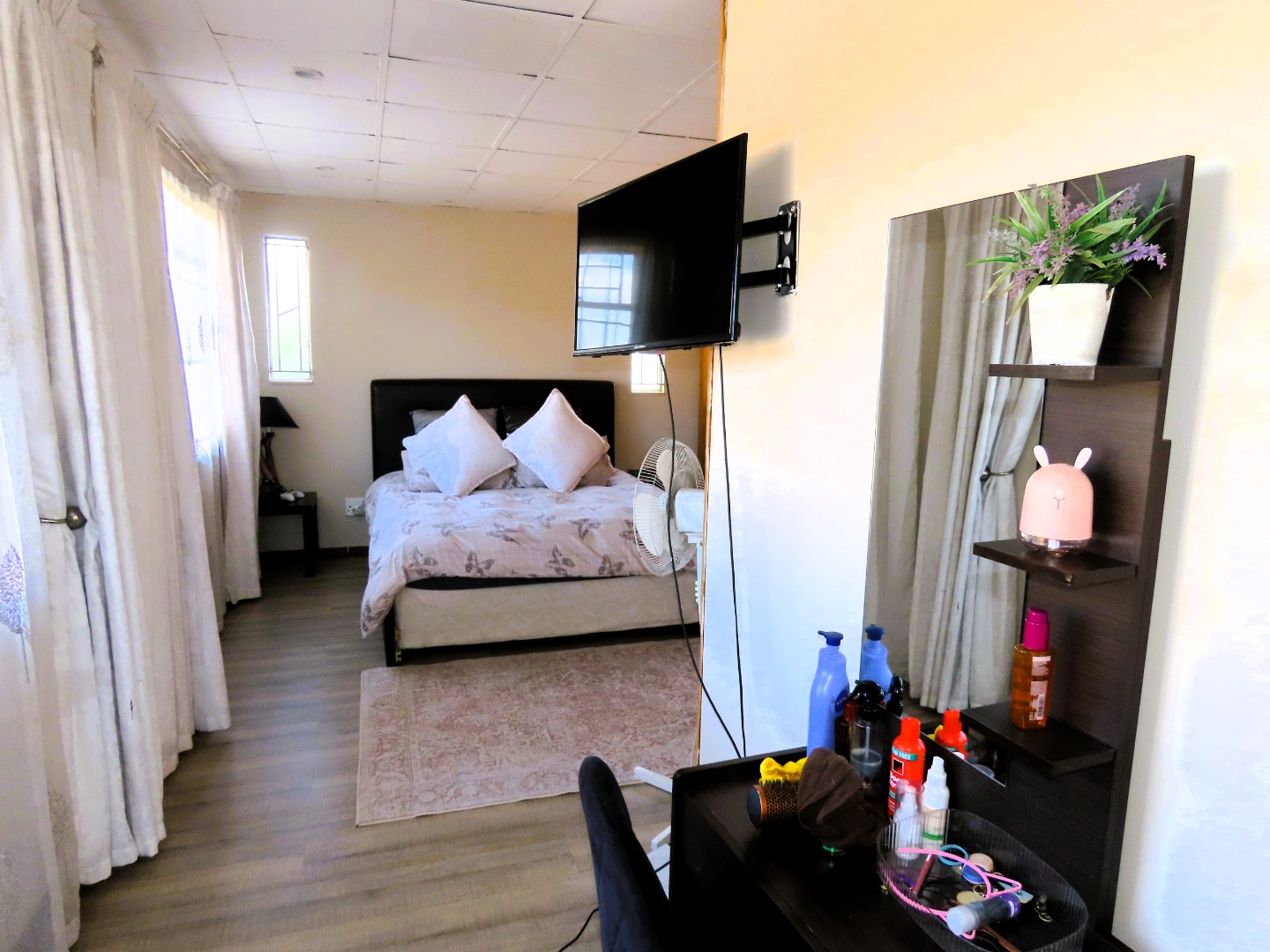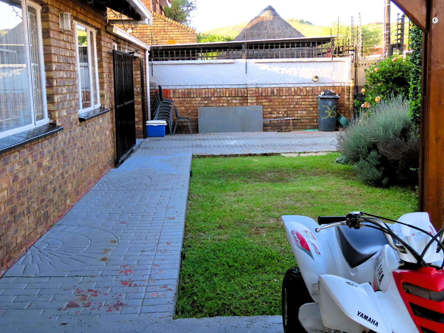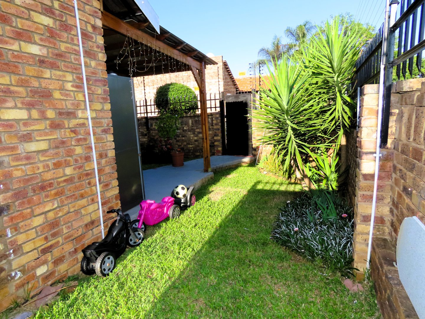 The residence comprises three well-proportioned bedrooms, ensuring privacy and comfort for all occupants. There are two bathrooms, with one being en-suite, offering practical convenience. The property's outdoor features enhance its appeal, including a private garden equipped with an irrigation system and sprinkler system, perfect for maintaining lush greenery. Enjoy outdoor entertaining with a built-in braai. Pets are welcome, making this an ideal home for animal lovers.