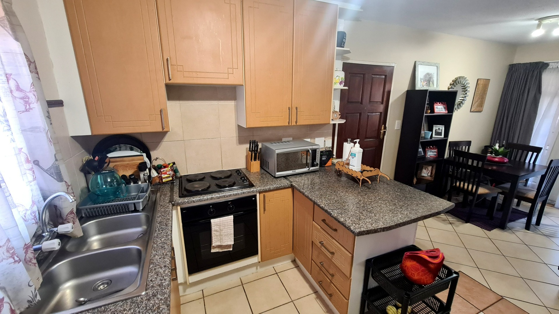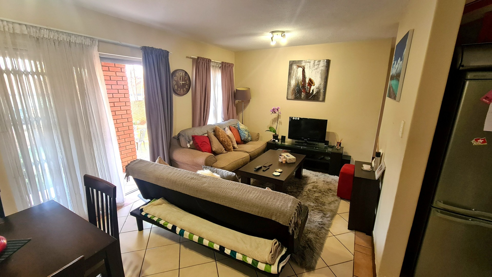 This open-plan lounge and kitchen area creates a welcoming and spacious atmosphere, perfect for both relaxation and entertaining. The kitchen is functional and ready for your culinary endeavours, seamlessly connecting with the living space. Sliding doors enhance the flow, inviting natural light and fresh air into the home.