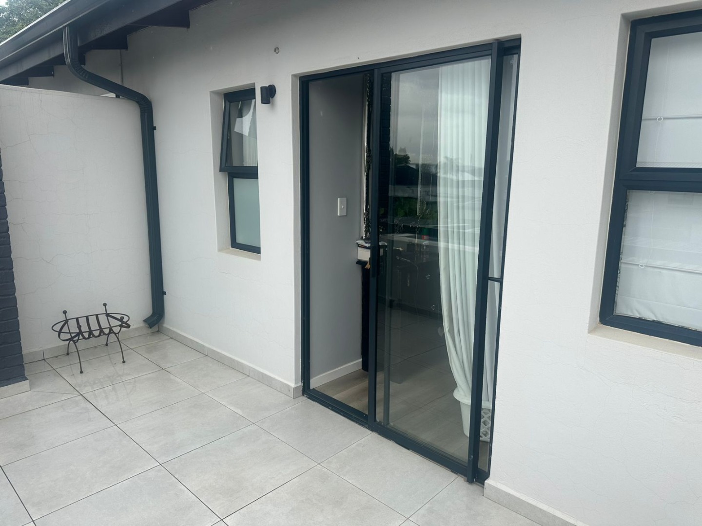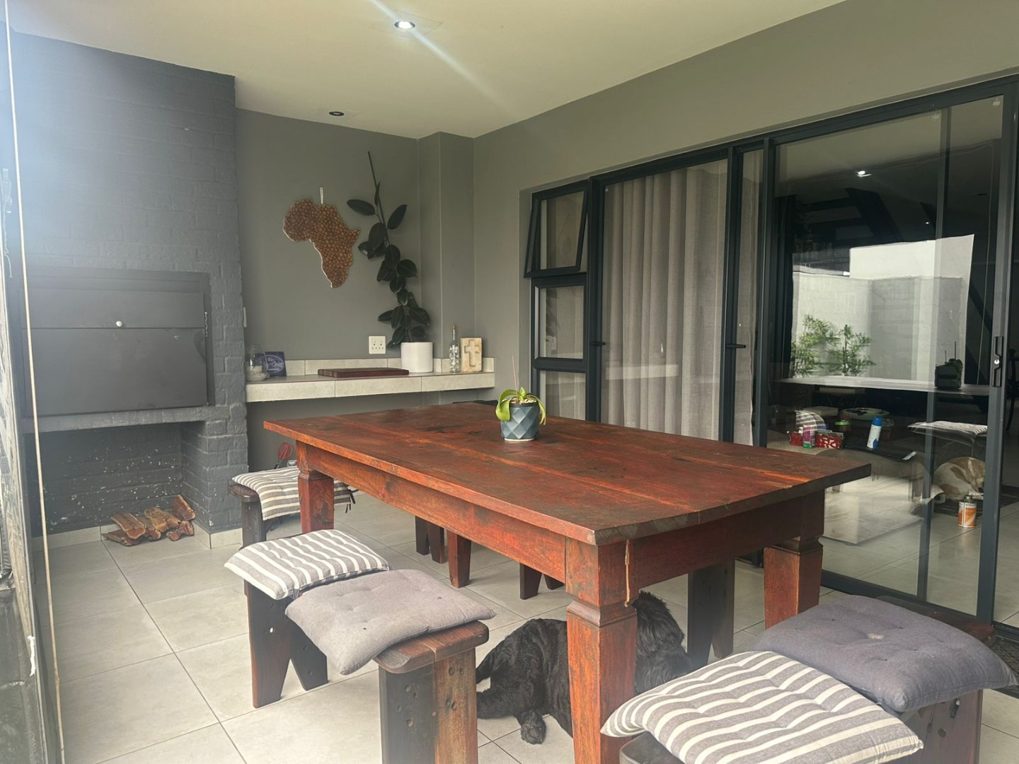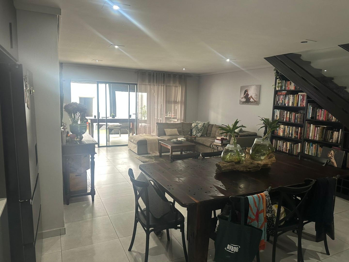 Lovely 3-Bedroom Home in Equestria - This beautiful and well-maintained 3-bedroom home offers comfortable living with great features for modern family life. Downstairs you will find a small, easy-to-maintain garden and a covered patio with canvas enclosures and a built-in braai — perfect for entertaining year-round. Inside, the home features a spacious open-plan living and dining area, a well-appointed kitchen with a separate scullery, a guest toilet, and a built-in bookshelf that adds charm and functionality. Upstairs offers three bedrooms. The main bedroom includes its own private patio, an en-suite bathroom, and plenty of cupboard space. Two additional bedrooms share a second bathroom. The home also offers double automated garages for secure and convenient parking. Extras include fibre internet, prepaid electricity, and custom-made blinds that were specifically designed for the home and will remain. The property is conveniently located close to excellent schools and Linton’s Corner Shopping Centre in Equestria.