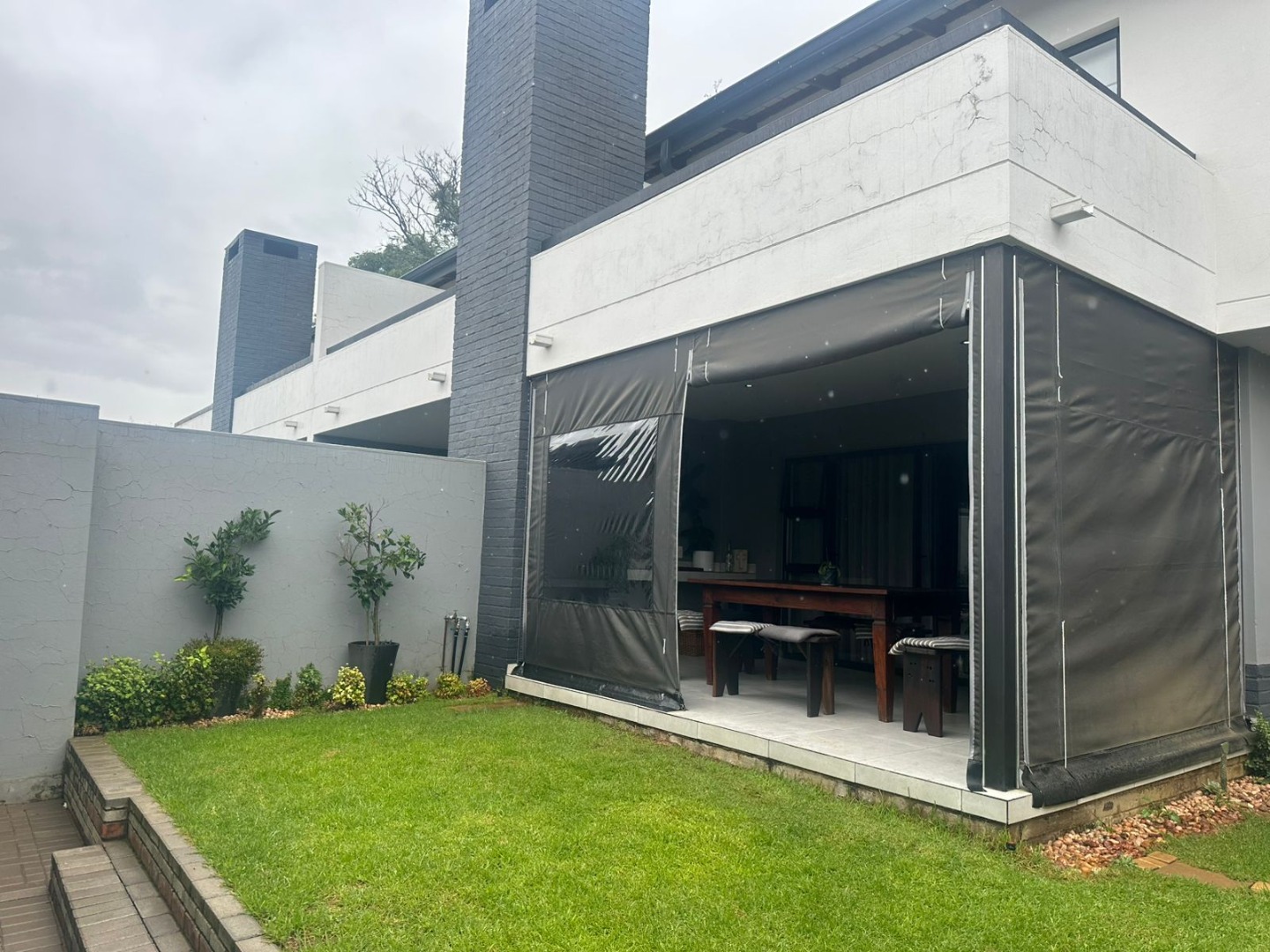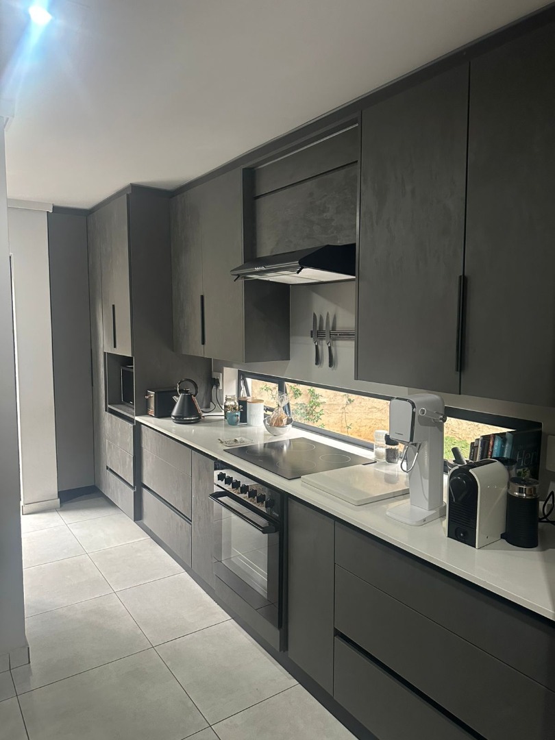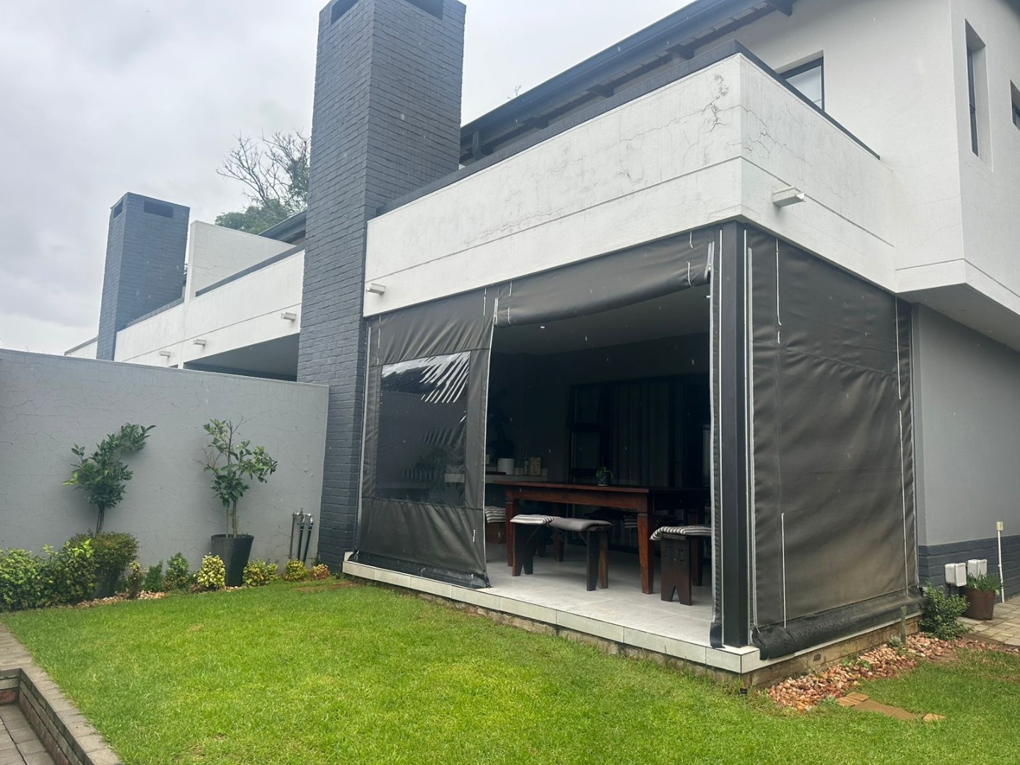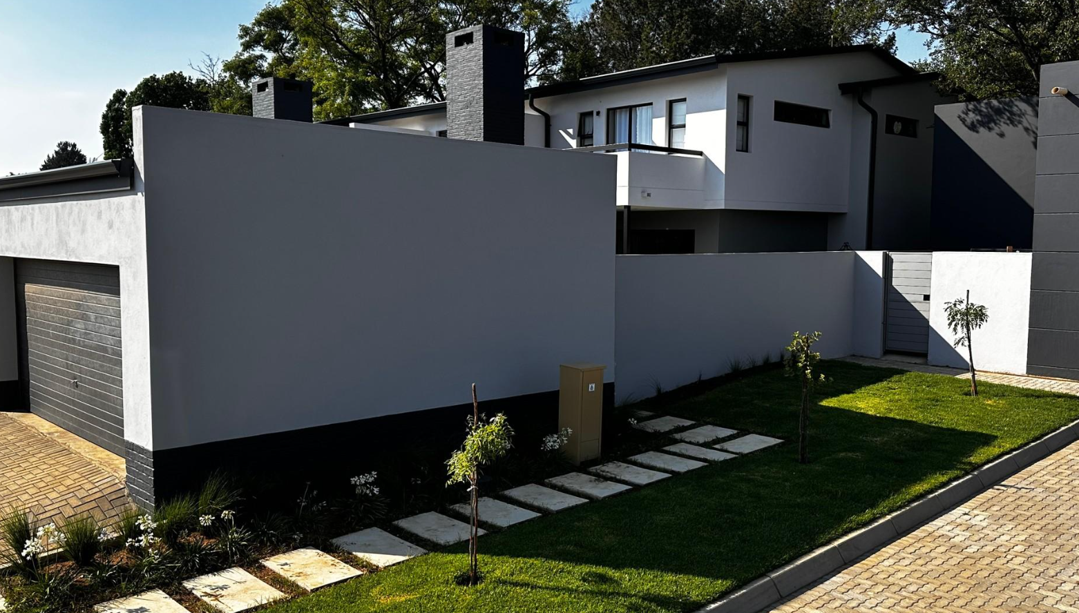 Lovely 3-Bedroom Home in Equestria - This beautiful and well-maintained 3-bedroom home offers comfortable living with great features for modern family life. Downstairs you will find a small, easy-to-maintain garden and a covered patio with canvas enclosures and a built-in braai — perfect for entertaining year-round. Inside, the home features a spacious open-plan living and dining area, a well-appointed kitchen with a separate scullery, a guest toilet, and a built-in bookshelf that adds charm and functionality. Upstairs offers three bedrooms. The main bedroom includes its own private patio, an en-suite bathroom, and plenty of cupboard space. Two additional bedrooms share a second bathroom. The home also offers double automated garages for secure and convenient parking. Extras include fibre internet, prepaid electricity, and custom-made blinds that were specifically designed for the home and will remain. The property is conveniently located close to excellent schools and Linton’s Corner Shopping Centre in Equestria.
