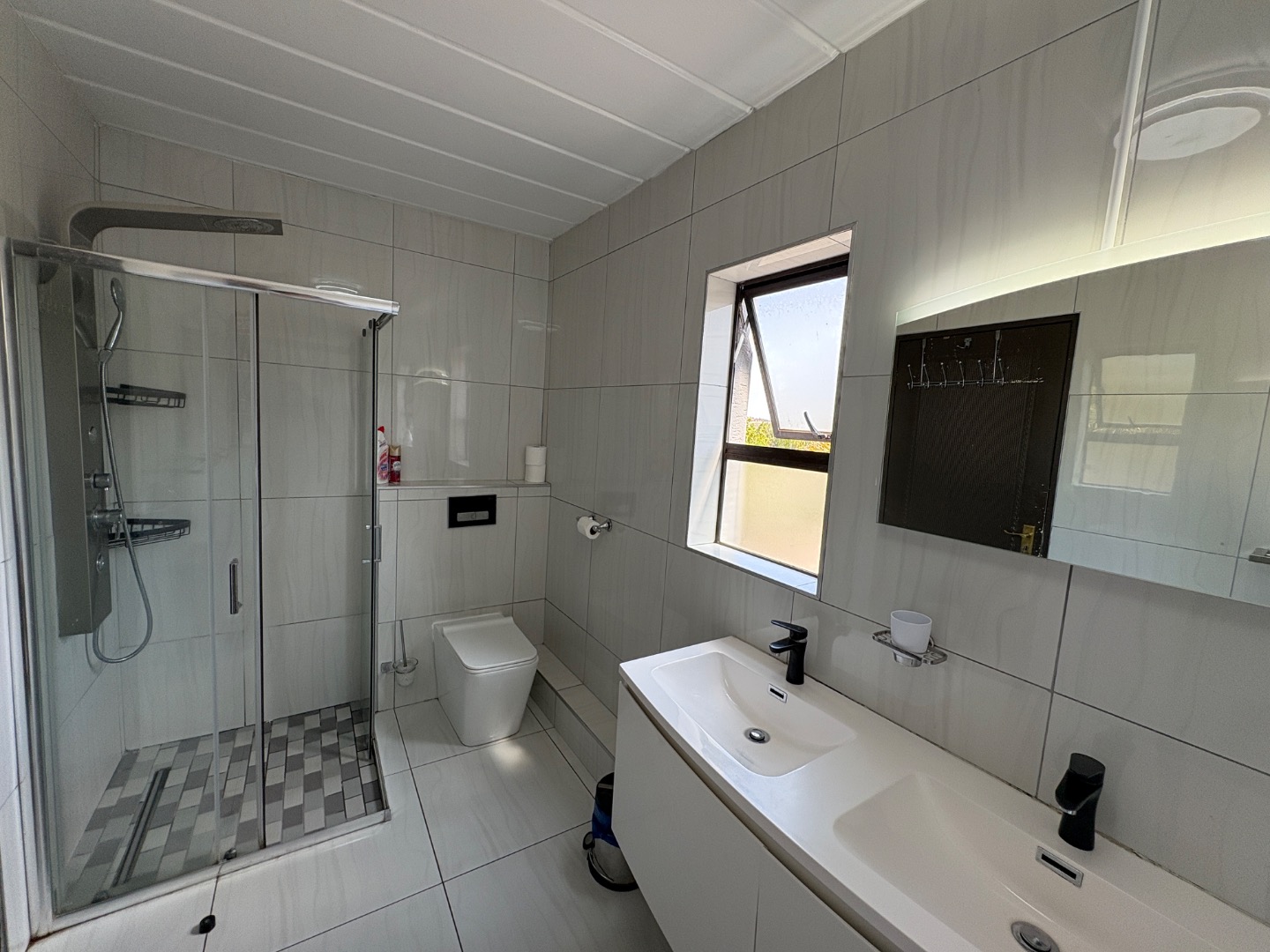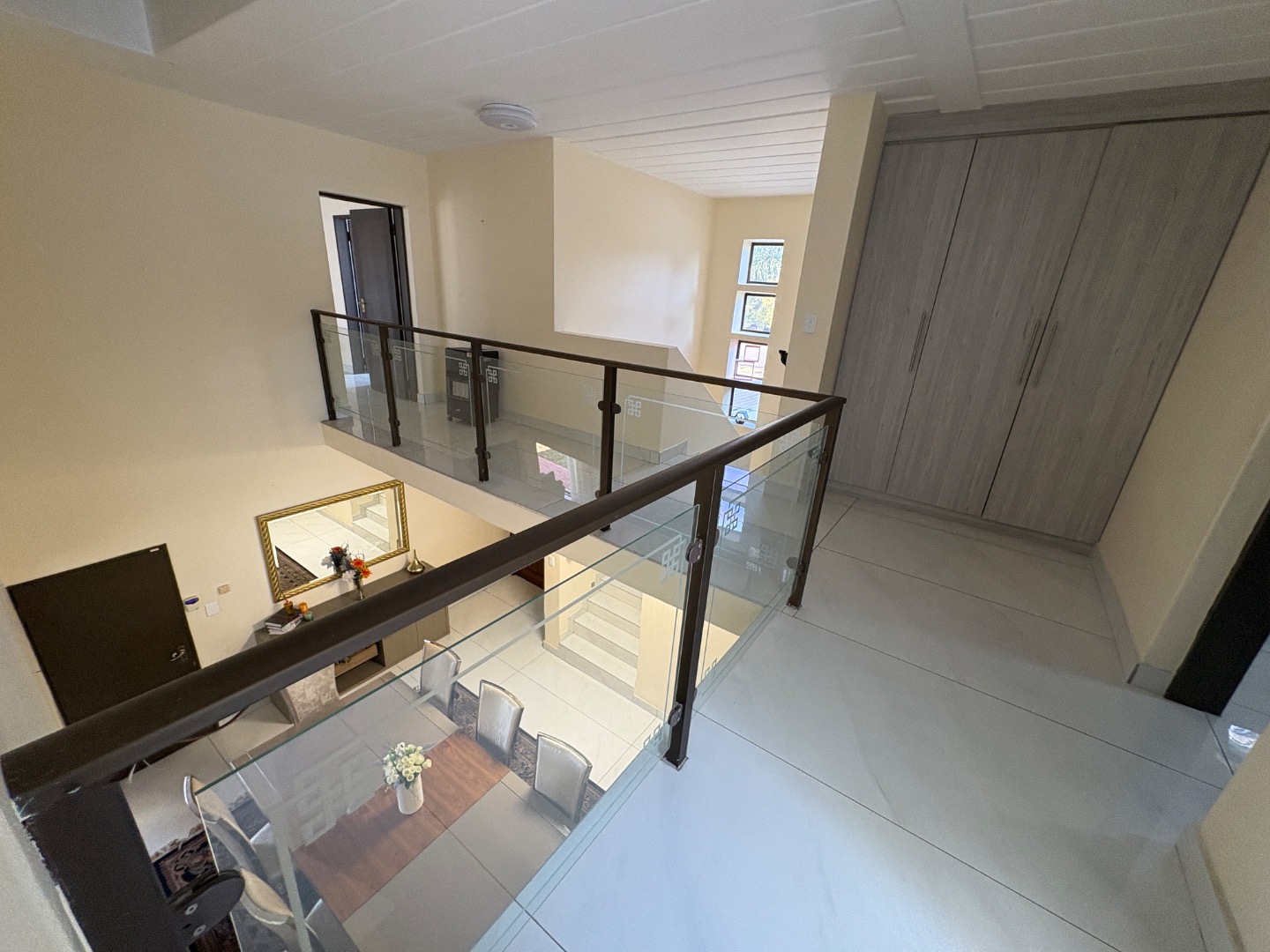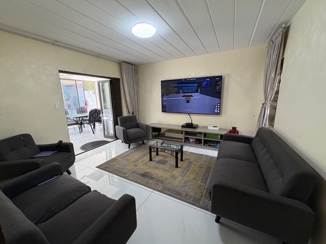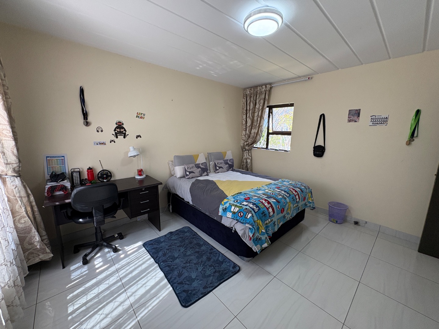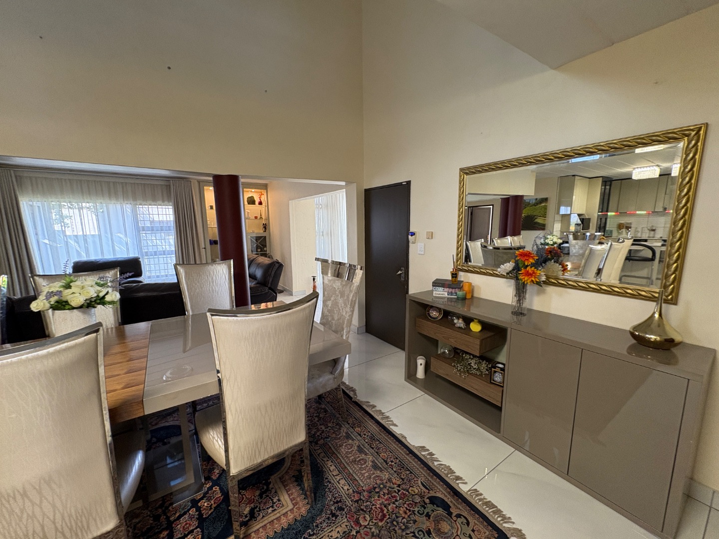 Security is paramount, with electric fencing, an alarm system, burglar bars, and security gates ensuring peace of mind. Furthermore, this residence is equipped with modern infrastructure, including fibre connectivity, a 3 batteries ,2 inverters, and 9 solar panels, promoting both efficiency and resilience. The property also offers a double automated garage and four additional parking spaces, catering to all vehicular requirements.Large water tank 2500L connected to the house system.