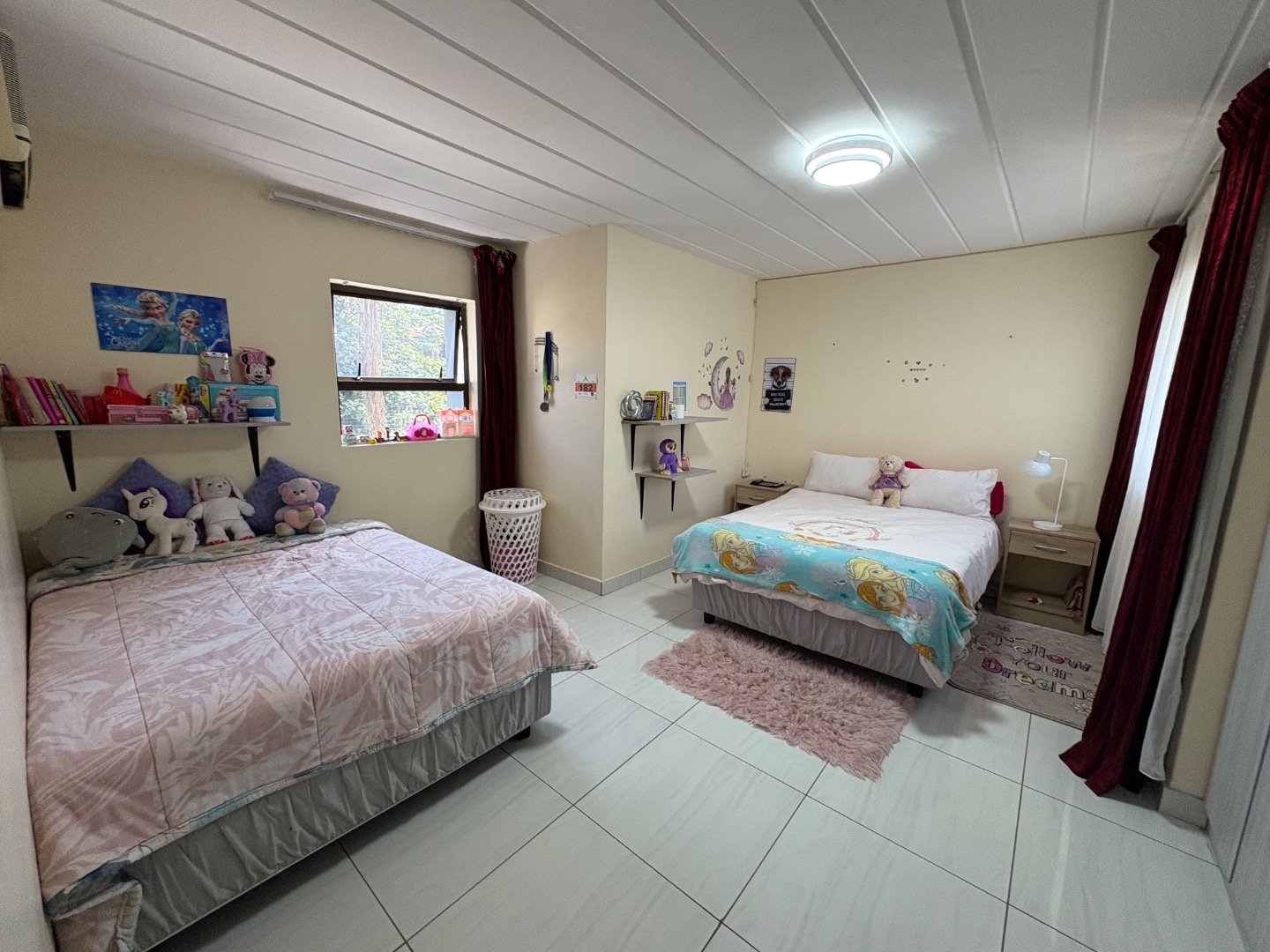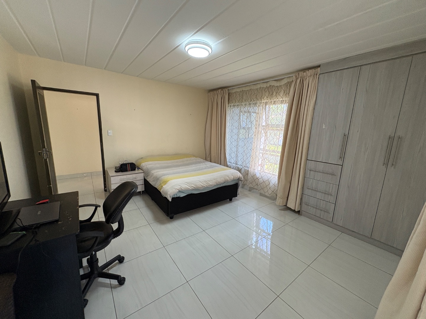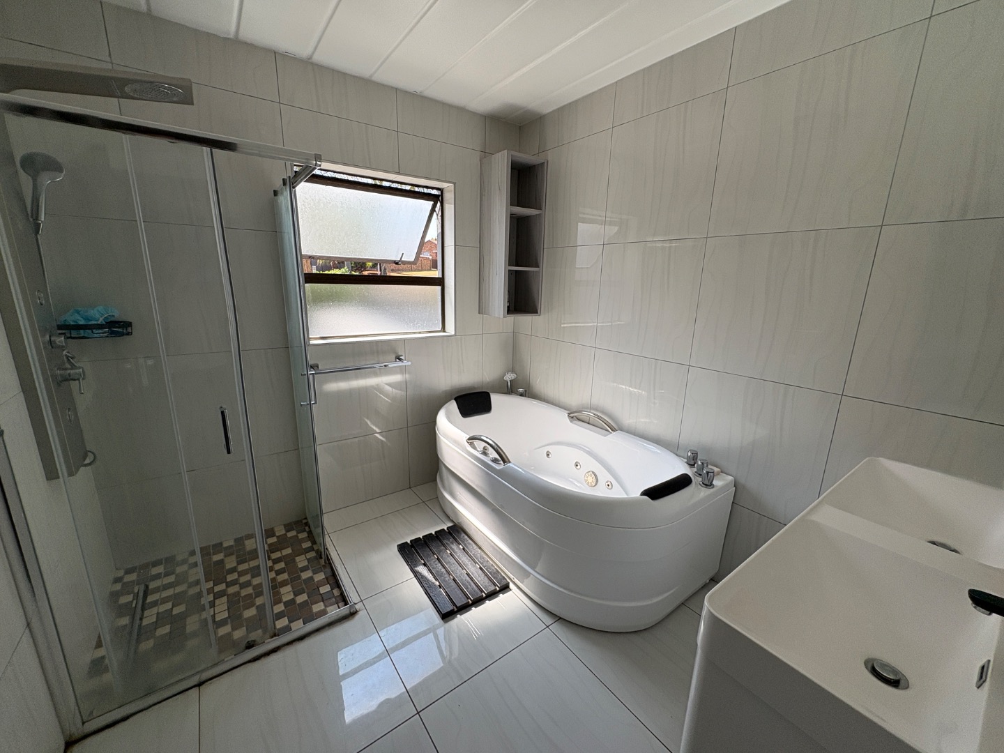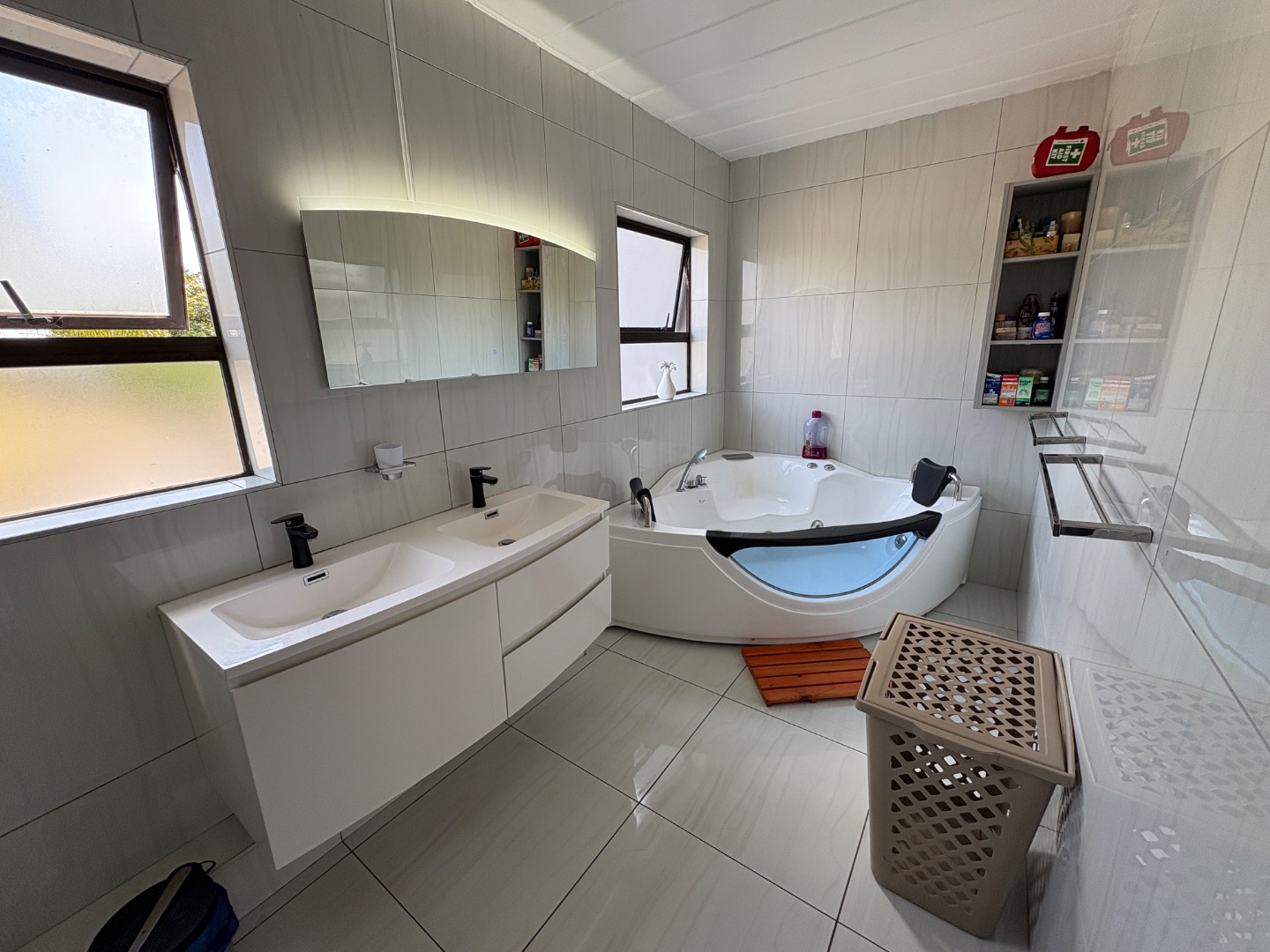 Security is paramount, with electric fencing, an alarm system, burglar bars, and security gates ensuring peace of mind. Furthermore, this residence is equipped with modern infrastructure, including fibre connectivity, a 3 batteries ,2 inverters, and 9 solar panels, promoting both efficiency and resilience. The property also offers a double automated garage and four additional parking spaces, catering to all vehicular requirements.Large water tank 2500L connected to the house system.
