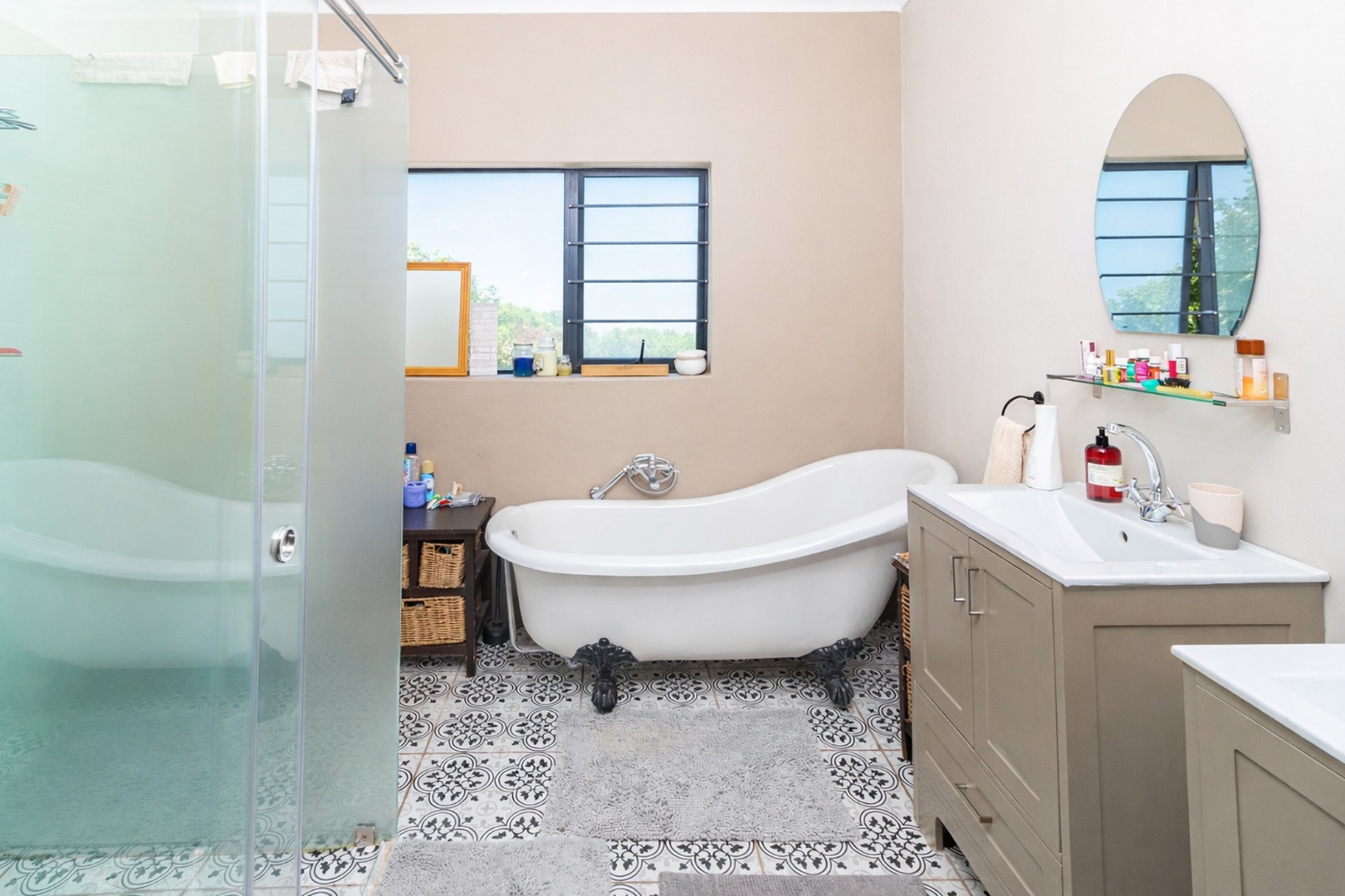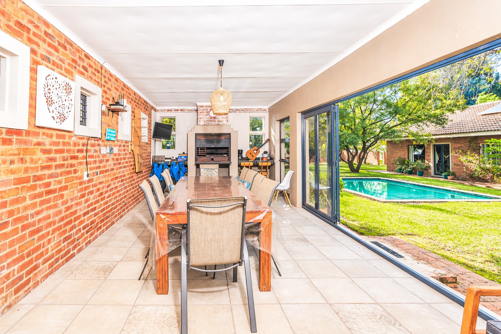 Away from the main house opposite the pool is the spindle of relaxation for this family. With space enough to easily seat 12 people and it's own basin and barbecue area, with stack doors that let the outside in on South African summer day. The adjoining bathroom will keep the wet costumes out of the house.