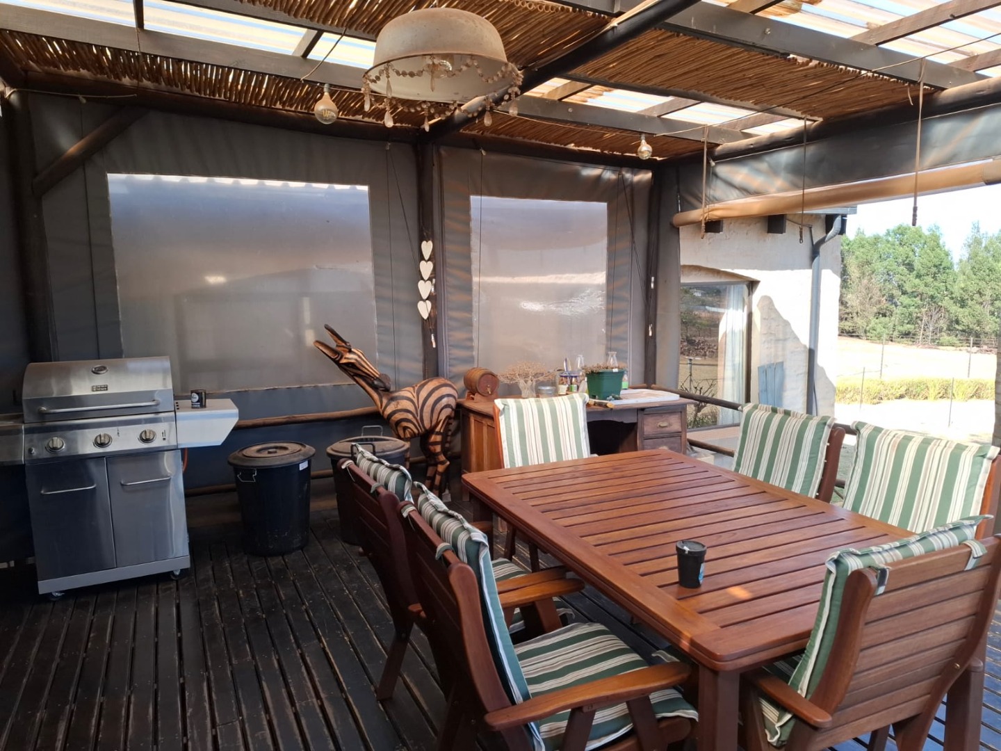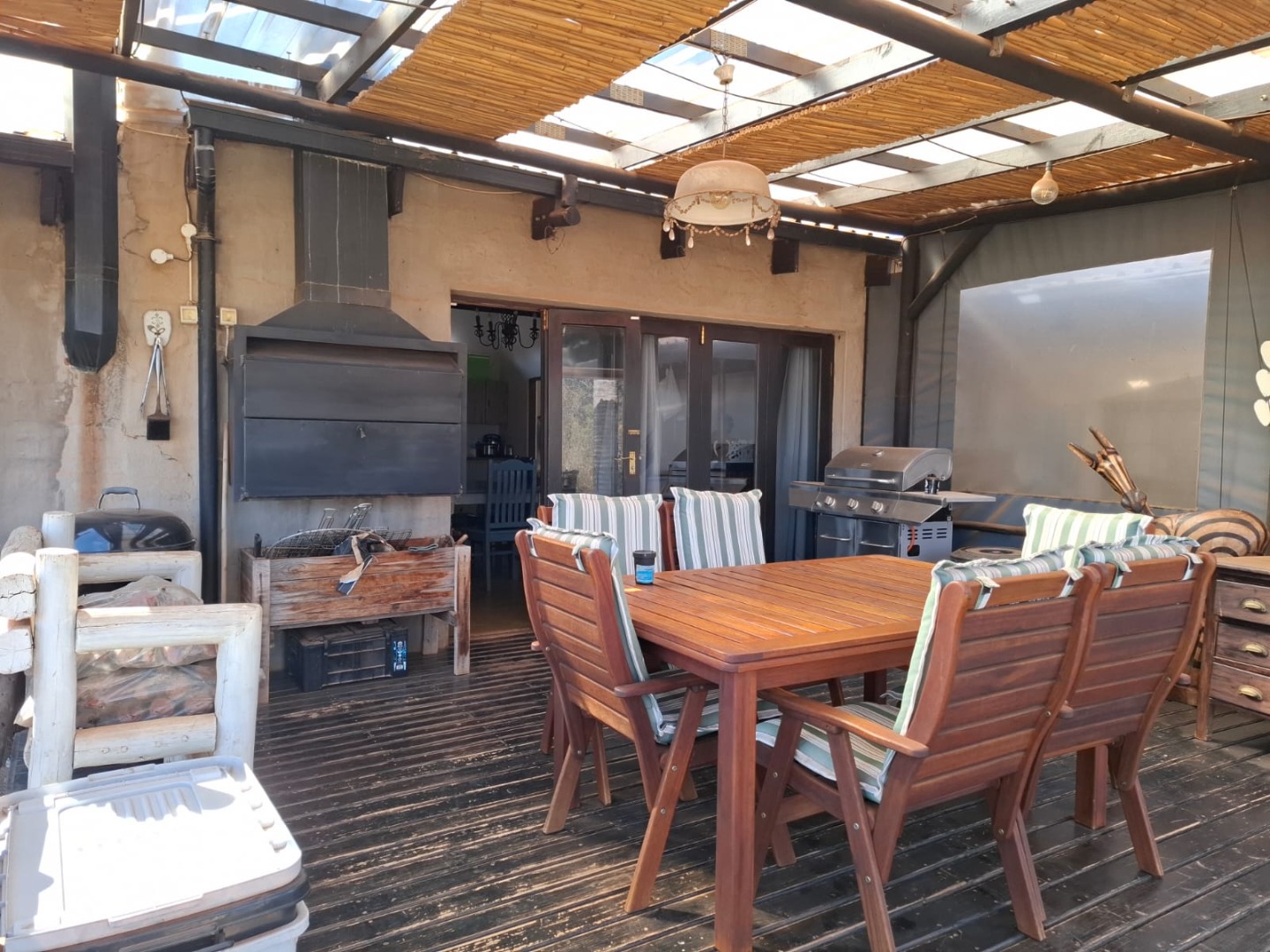 with Built-In Braai: Enjoy meals and entertaining on the expansive deck, complete with a built-in braai for year-round grilling.